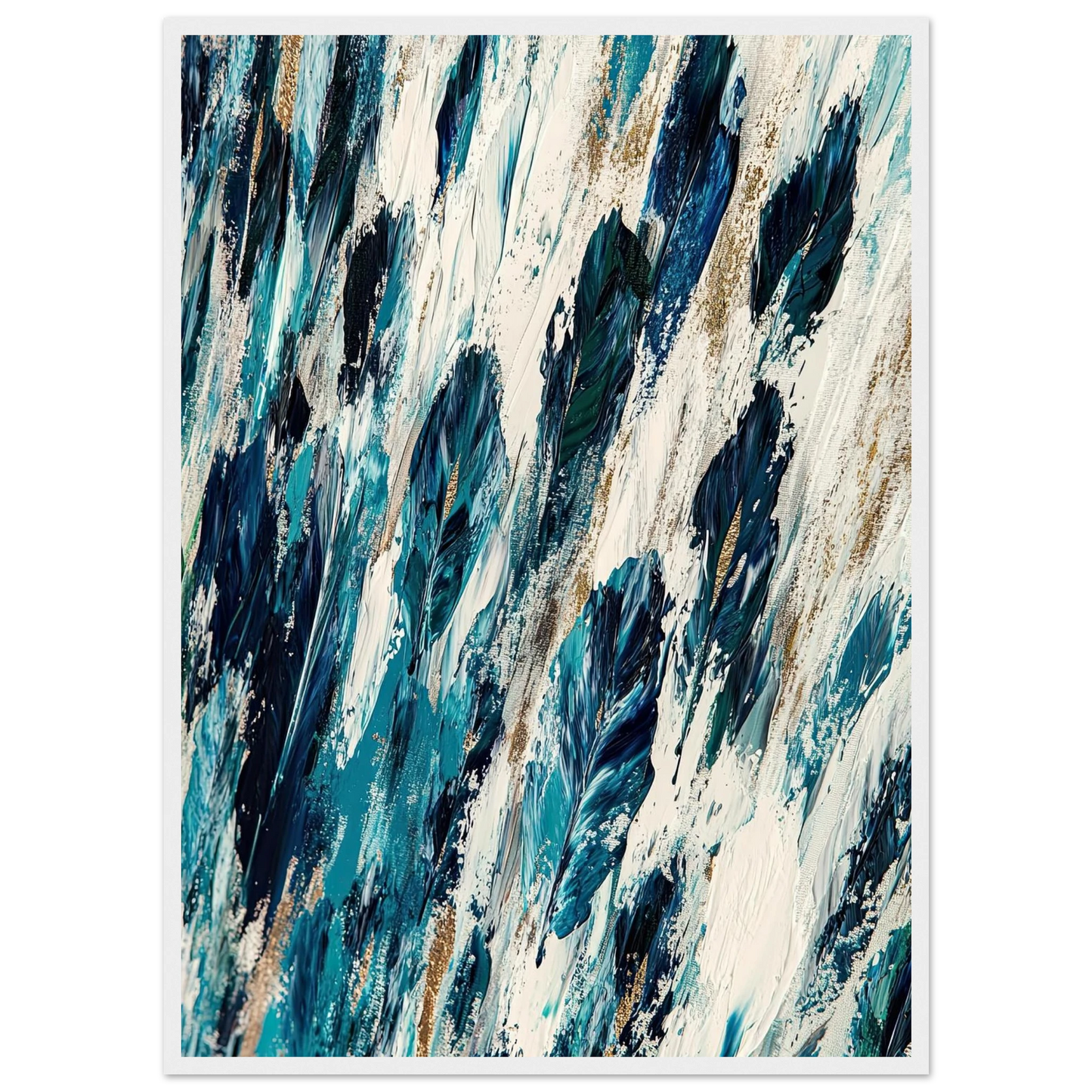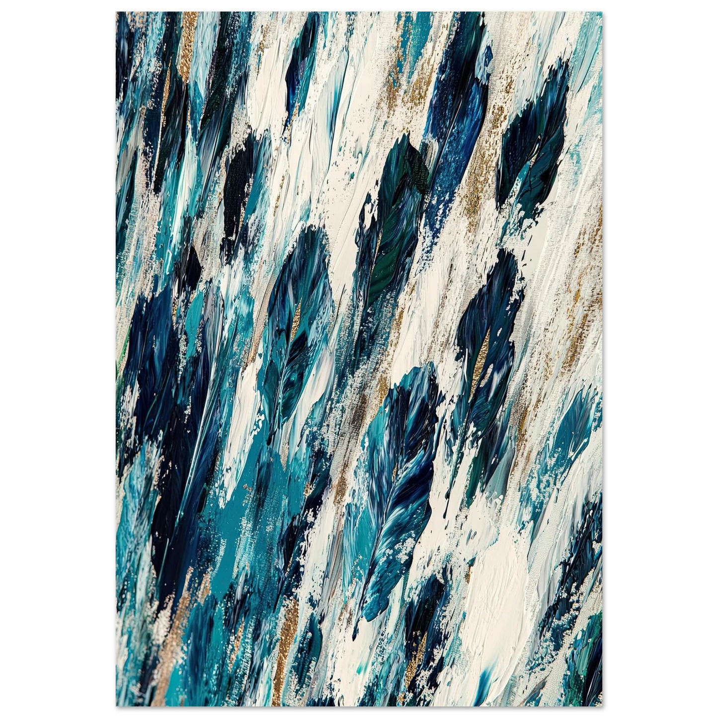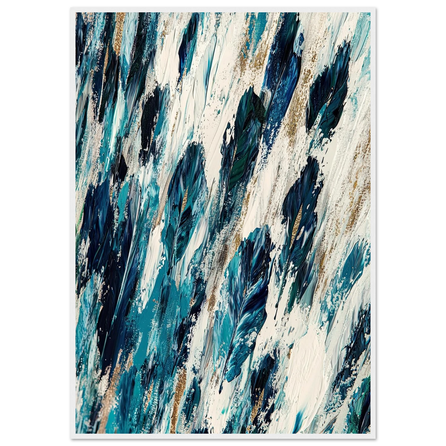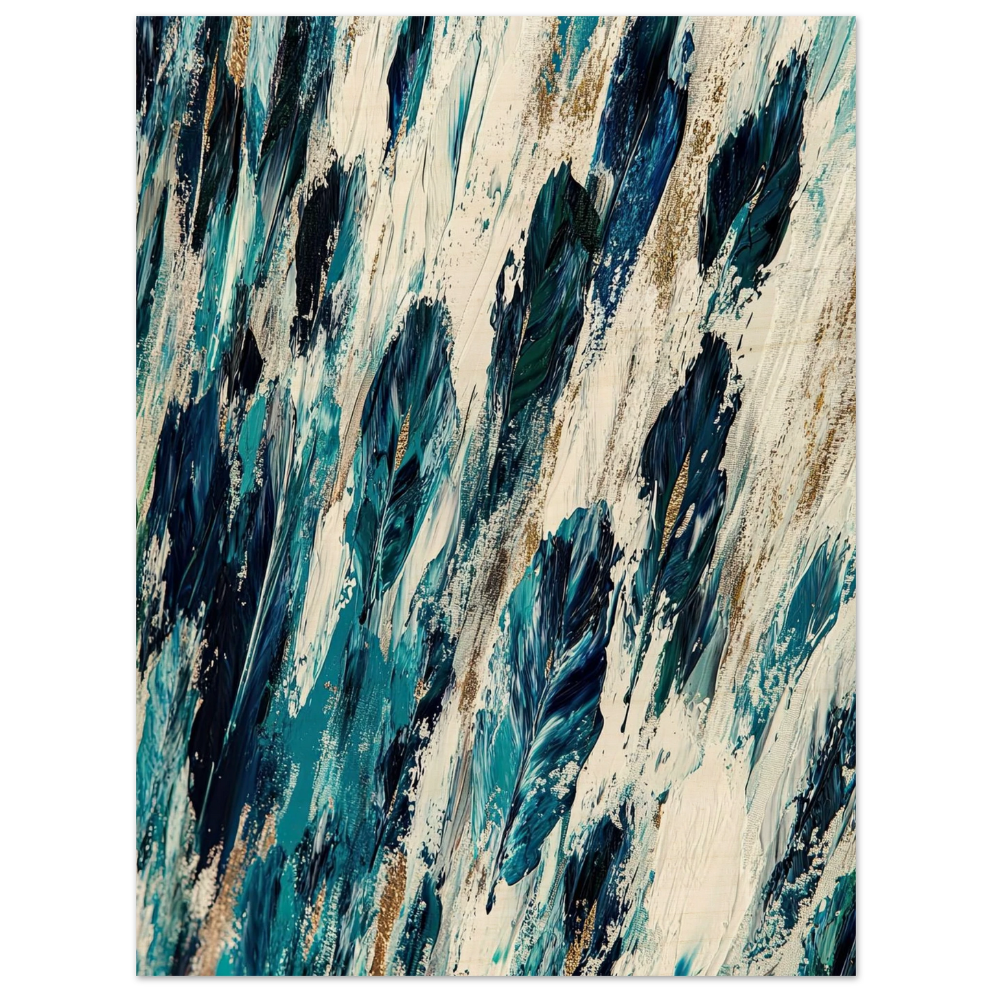 🖌️ Svevende fjær i blåtoner og gull – fylt med energi og eleganse