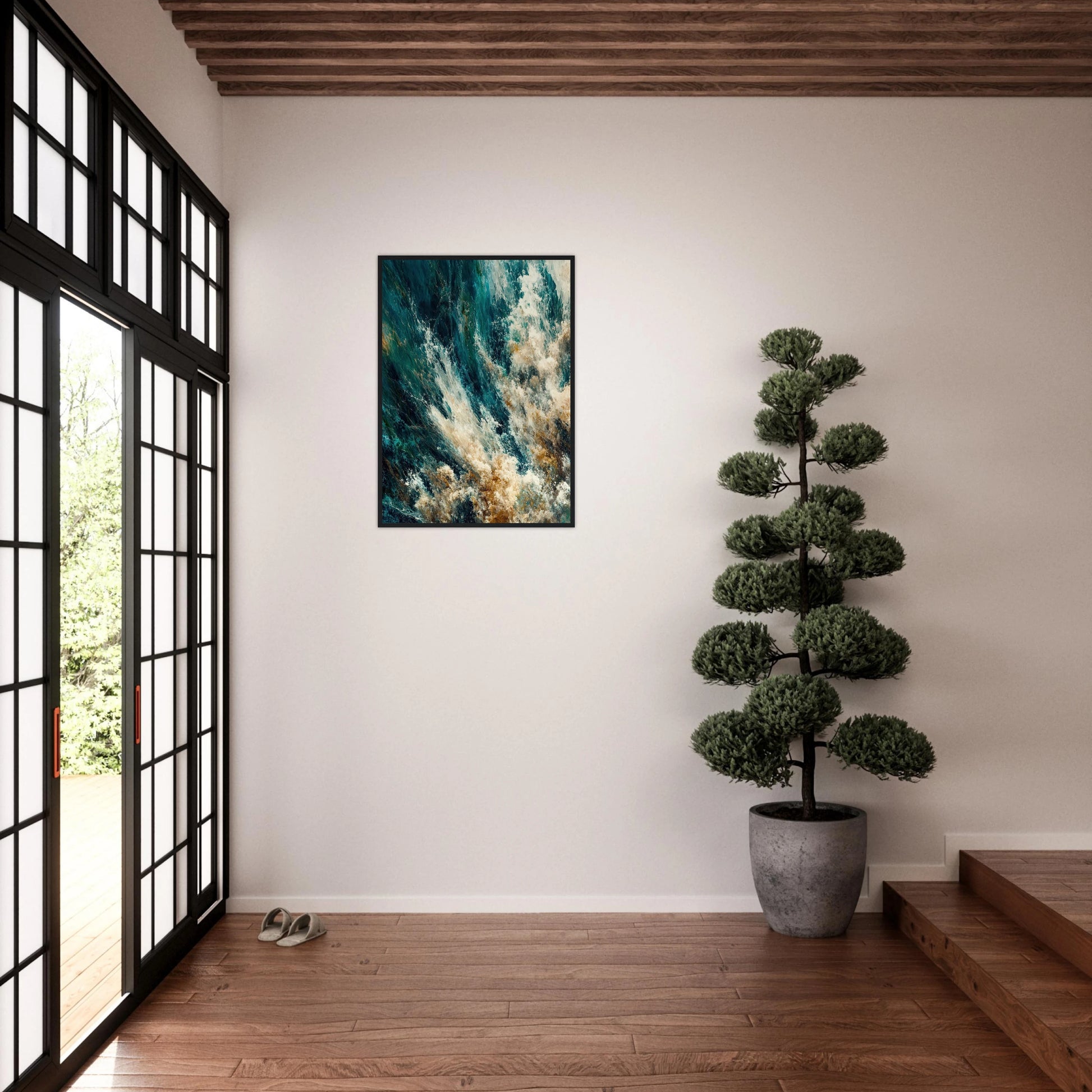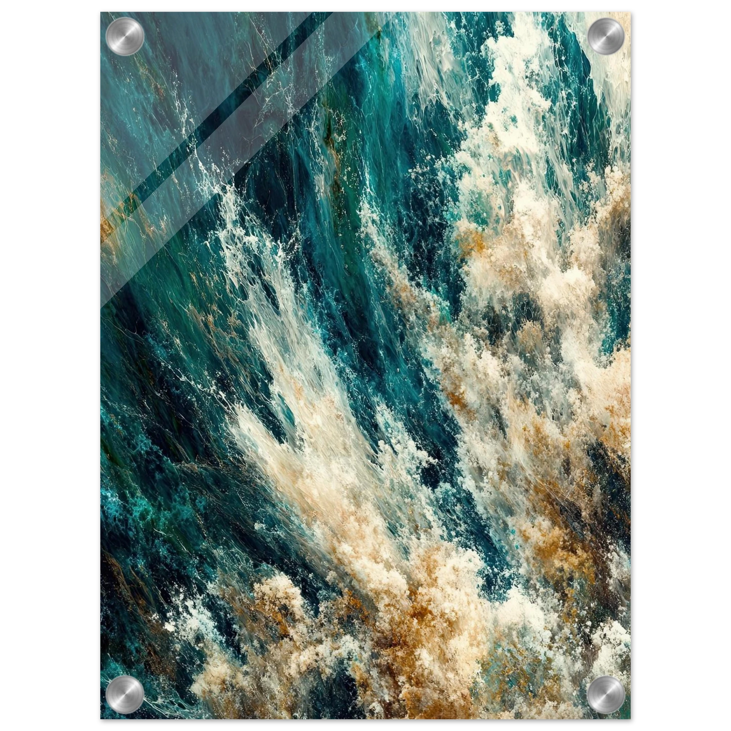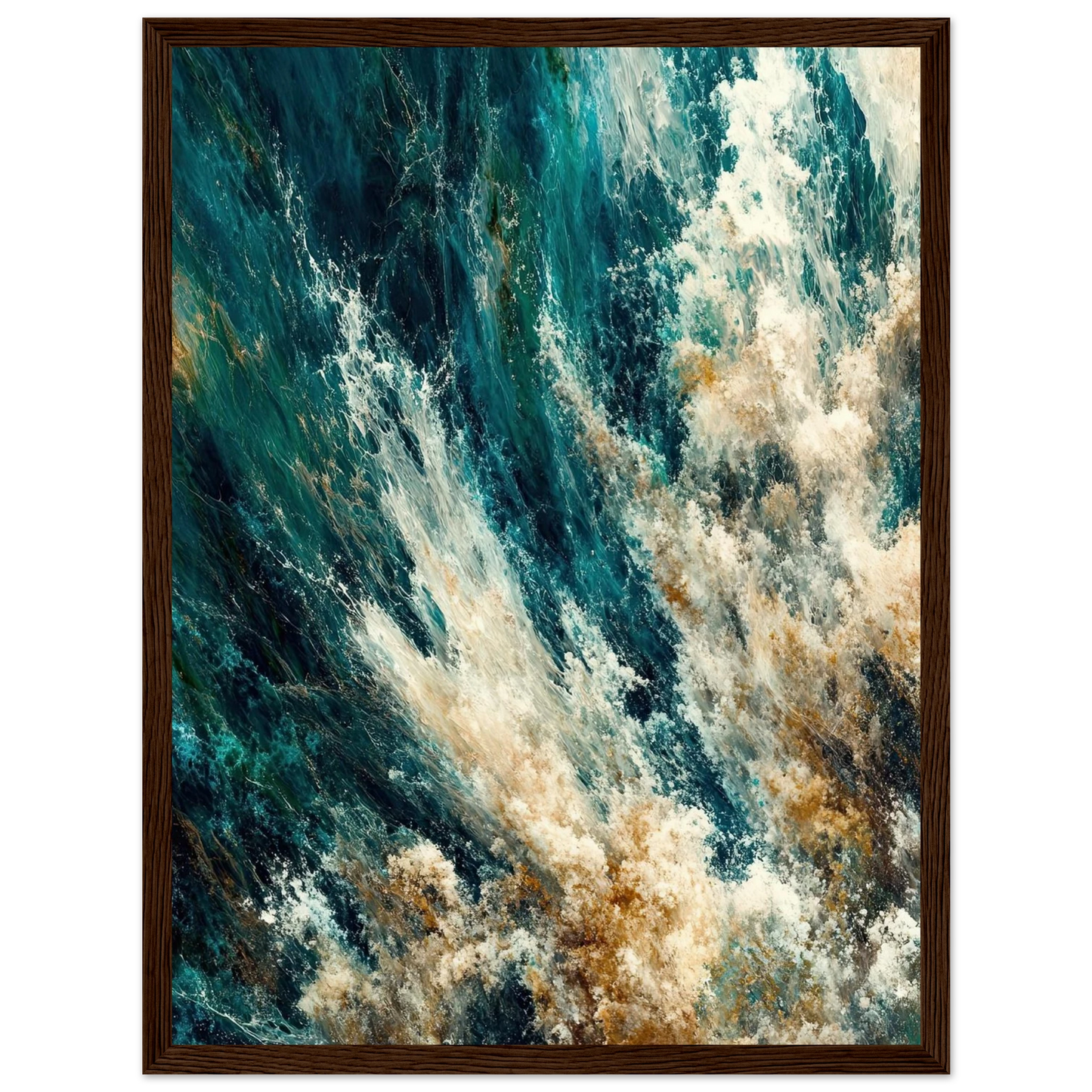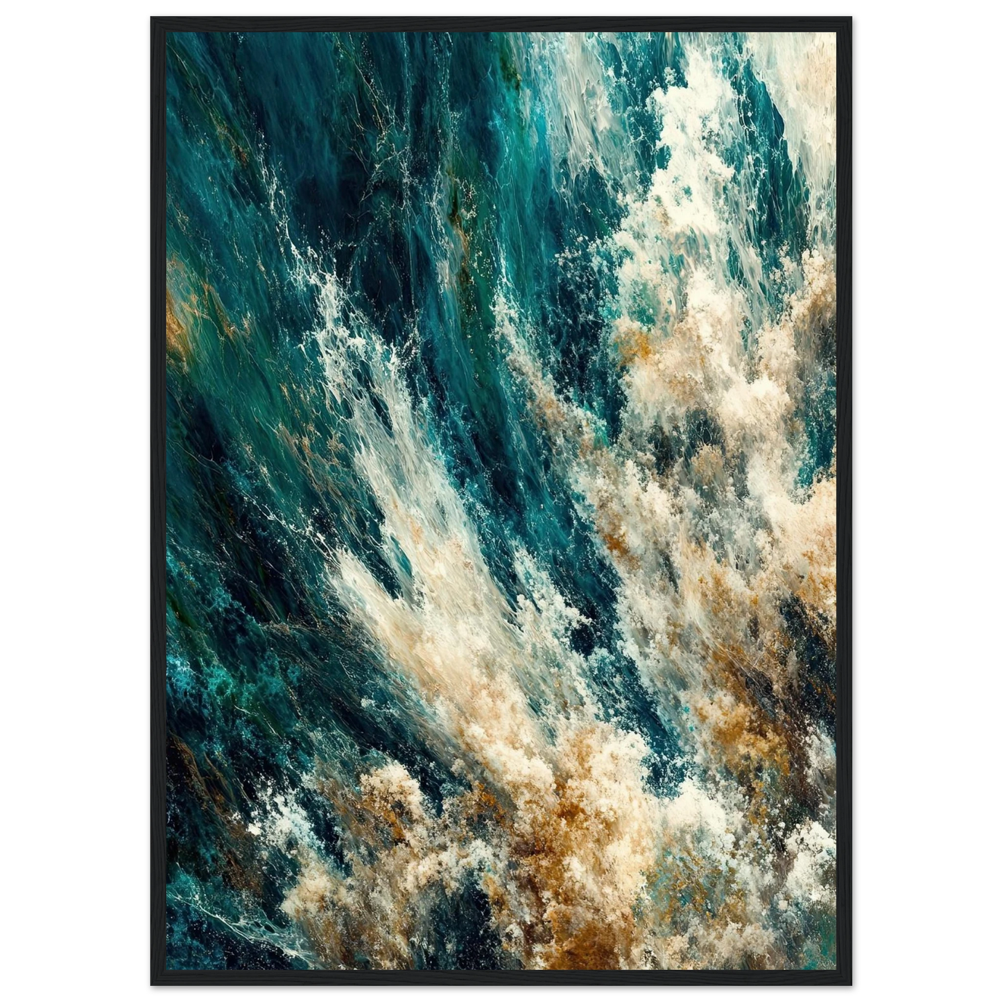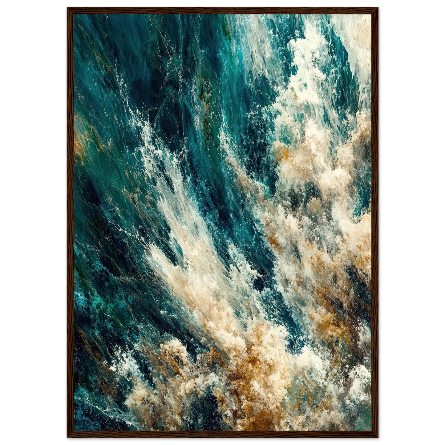 En intens eksplosjon av farger og bevegelse, der turkis, hvitt og brunt smelter sammen som en bølge i full kraft. Et visuelt adrenalinkick som gir rommet energi og dybde.