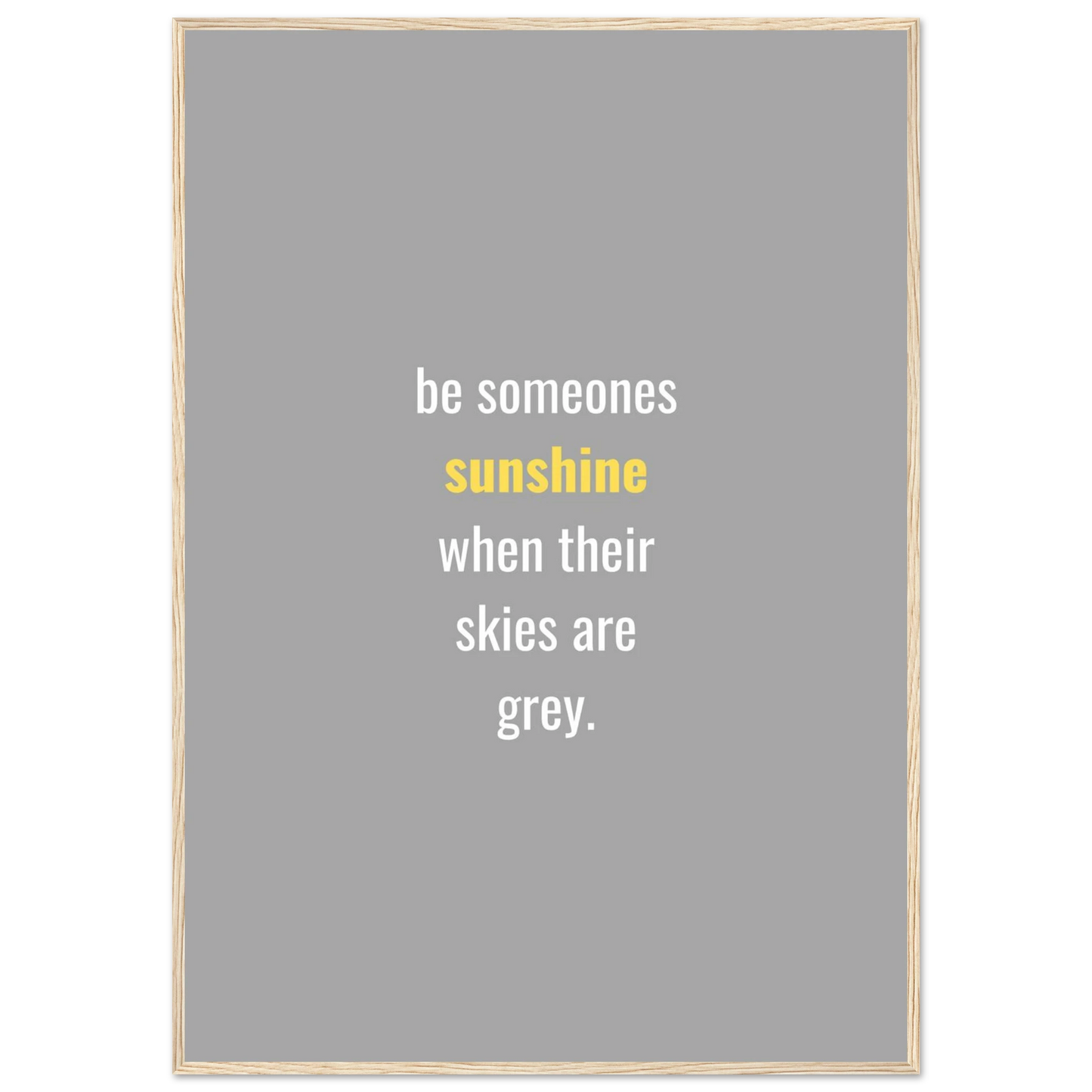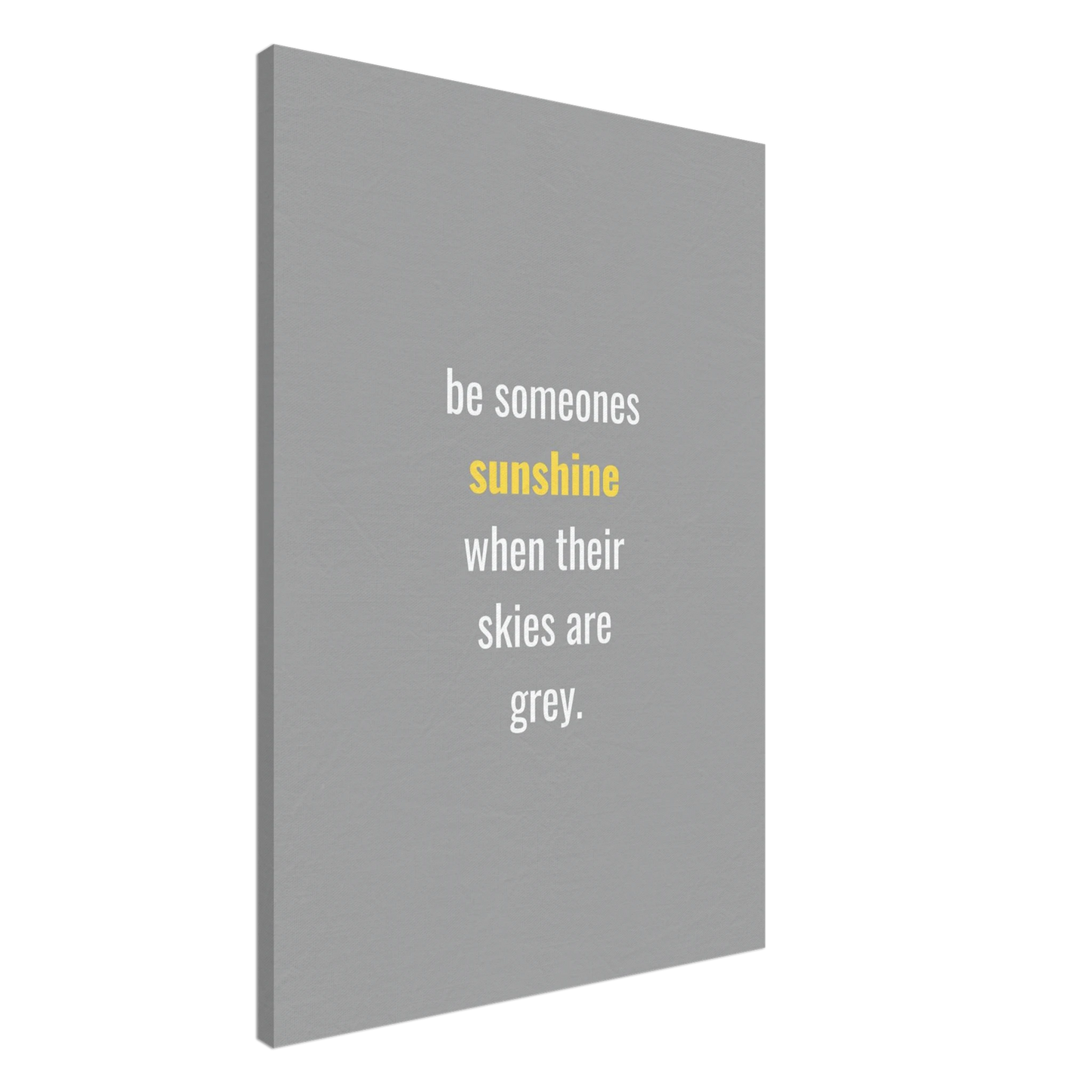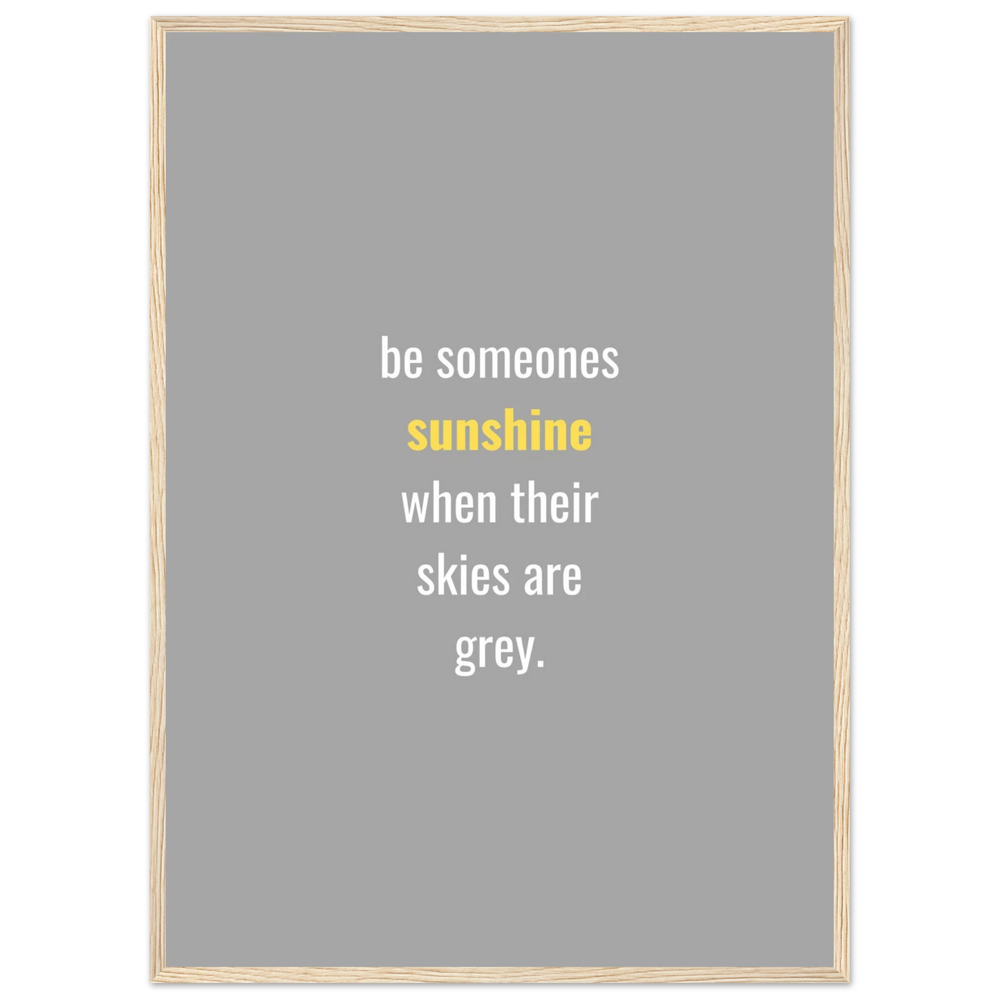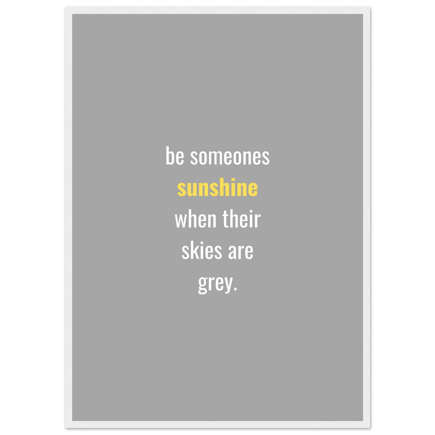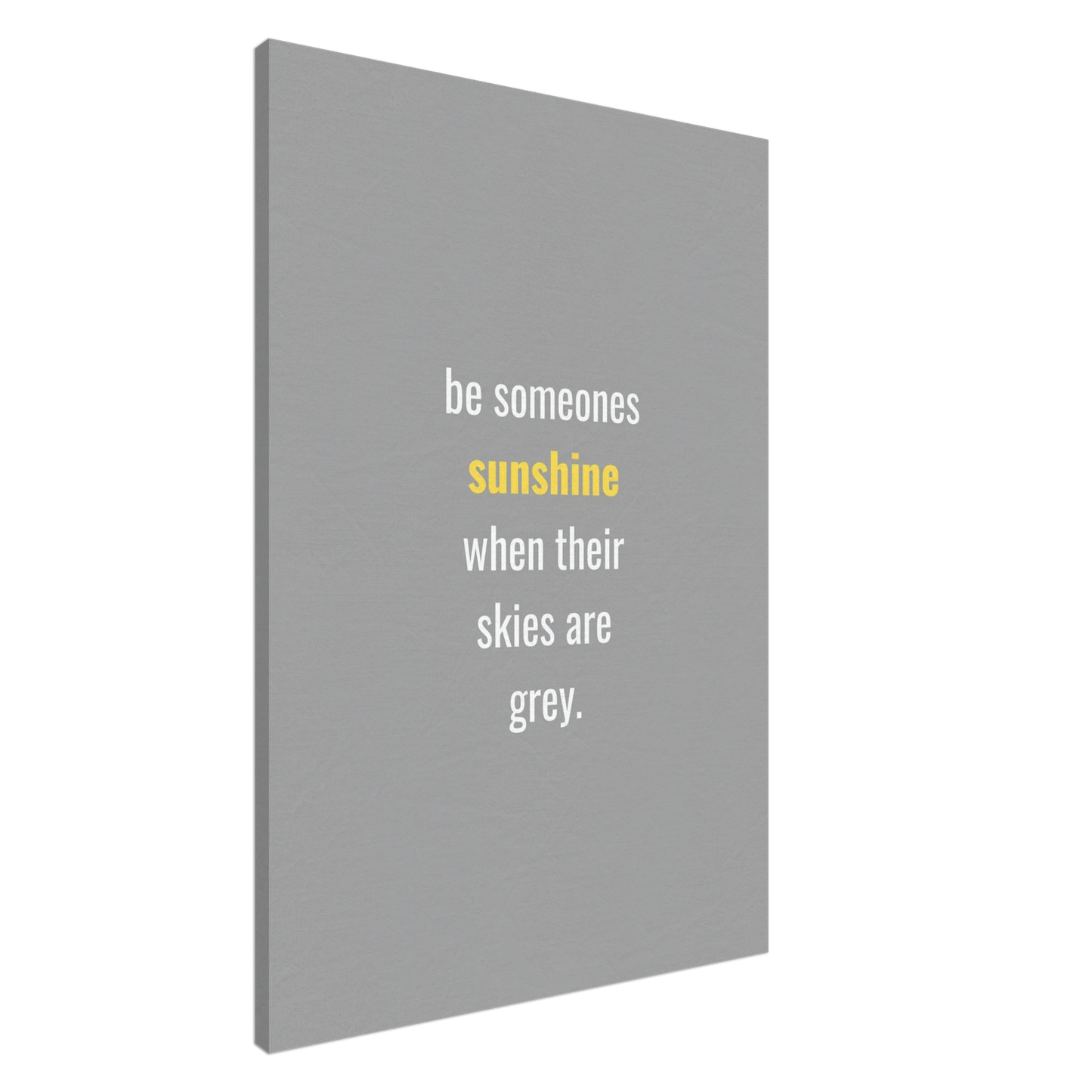Et varmt og vennlig motiv som minner deg på kraften av små handlinger. Med enkel typografi på grå bakgrunn og ordet sunshine fremhevet i gult, symboliserer bildet hvordan positivitet kan skinne opp selv de mørkeste dager. Perfekt for å spre glede og skape en lysere atmosfære i rommet.