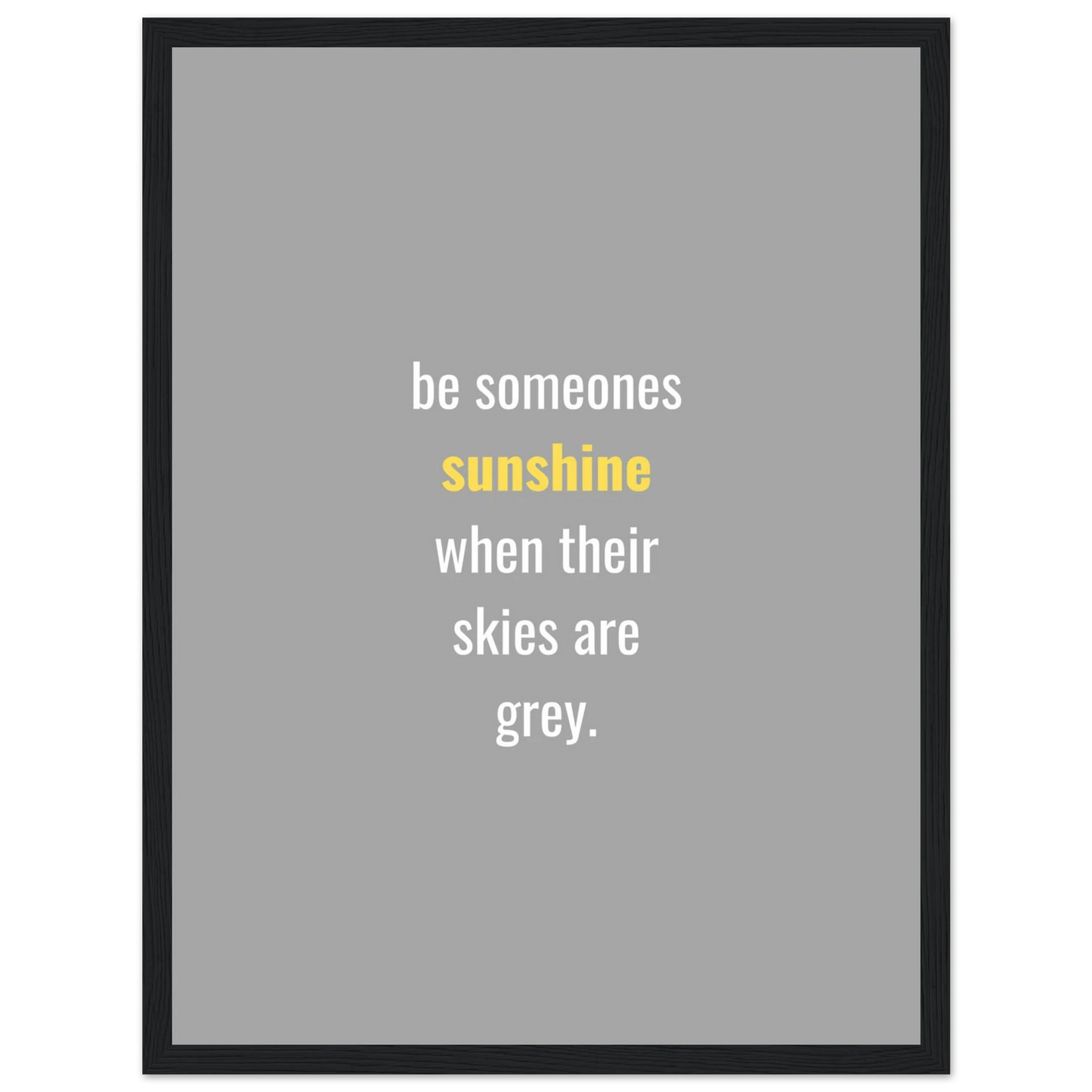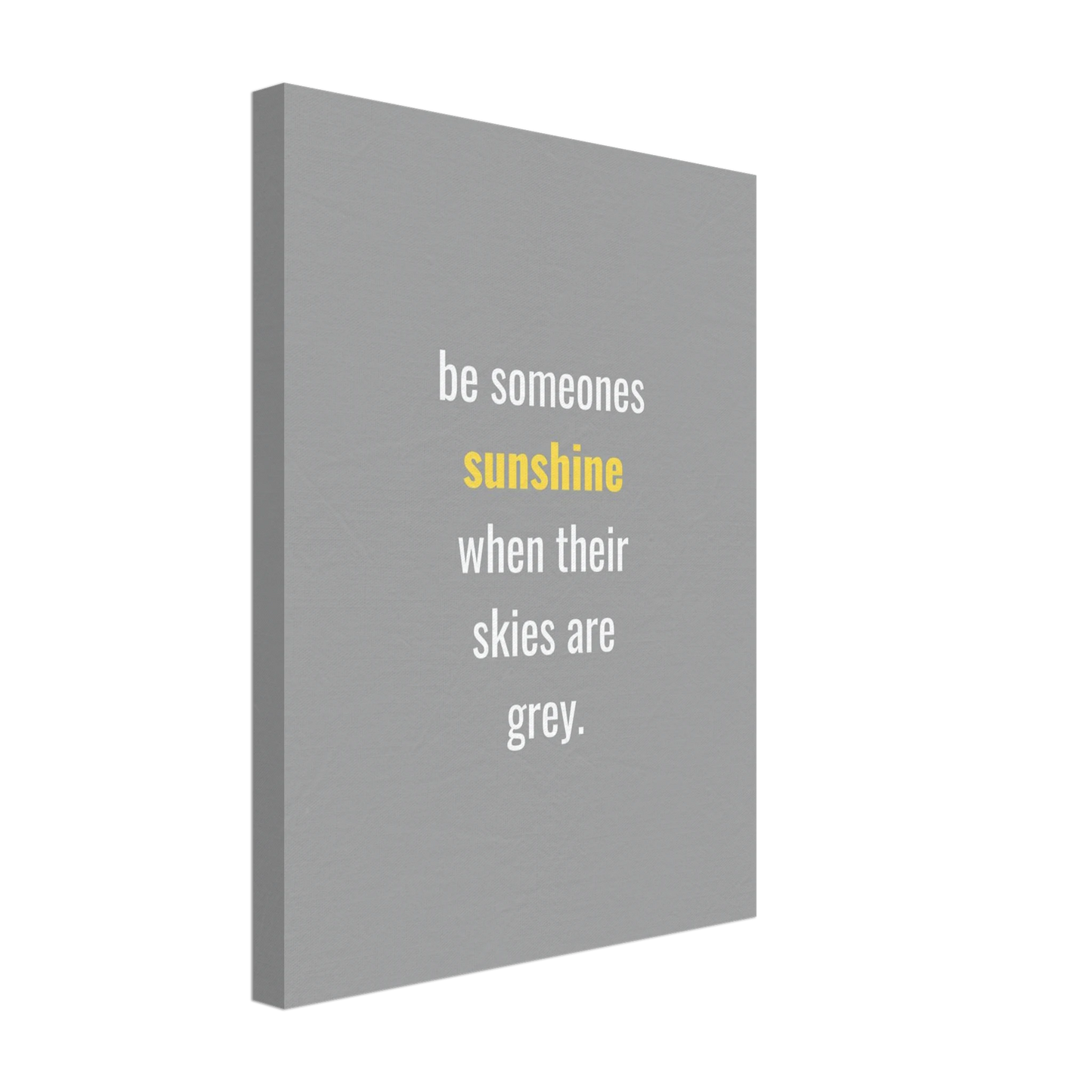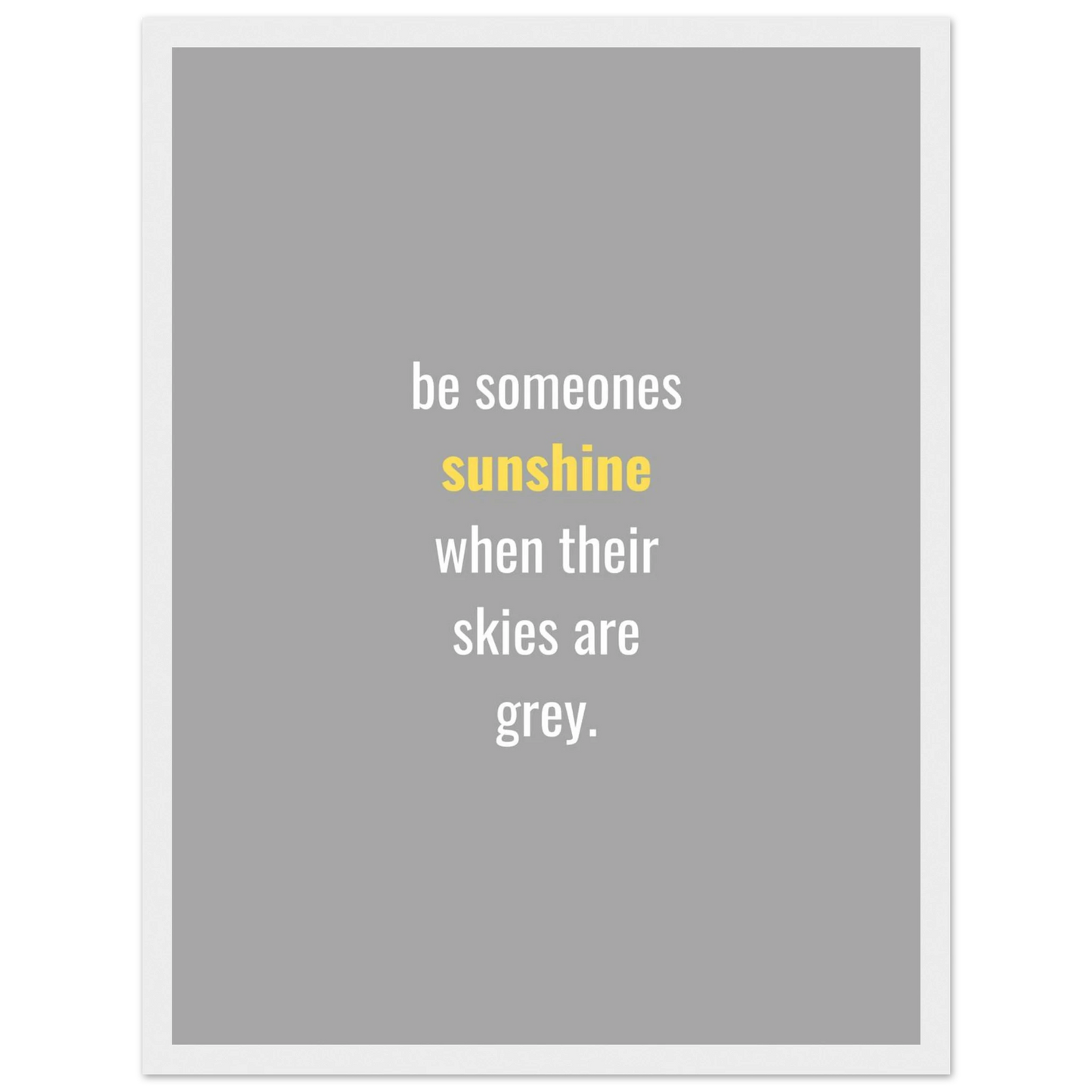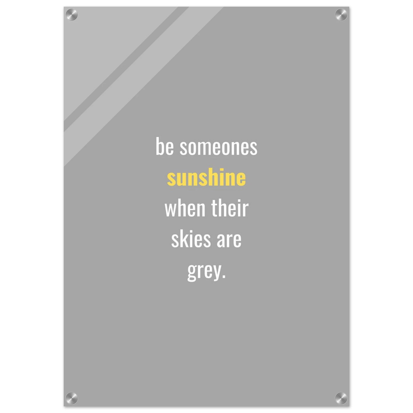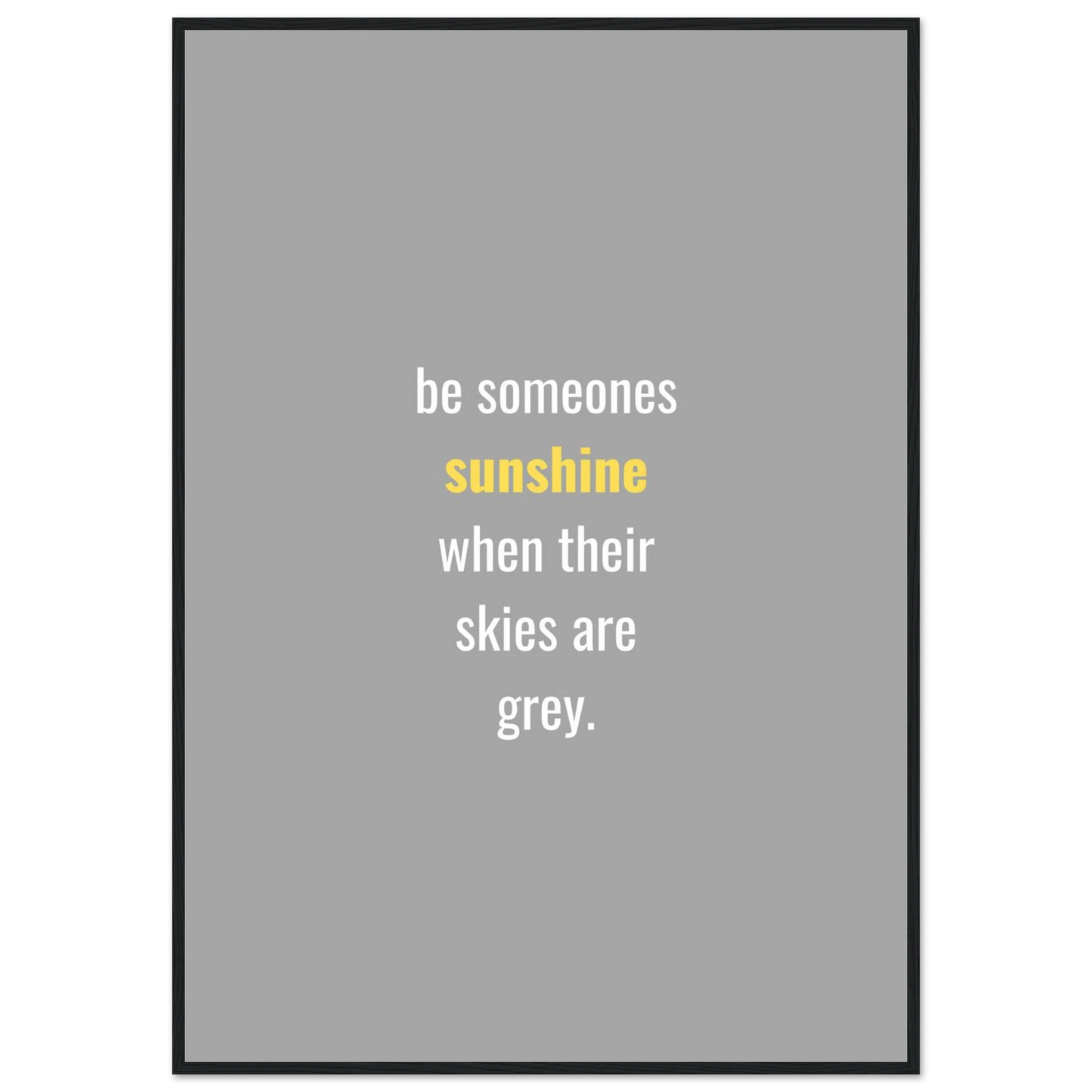 Et varmt og vennlig motiv som minner deg på kraften av små handlinger. Med enkel typografi på grå bakgrunn og ordet sunshine fremhevet i gult, symboliserer bildet hvordan positivitet kan skinne opp selv de mørkeste dager. Perfekt for å spre glede og skape en lysere atmosfære i rommet.