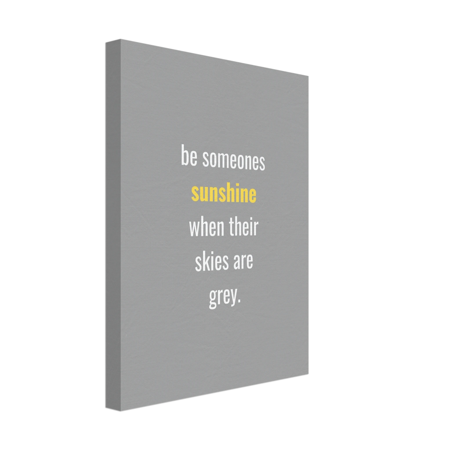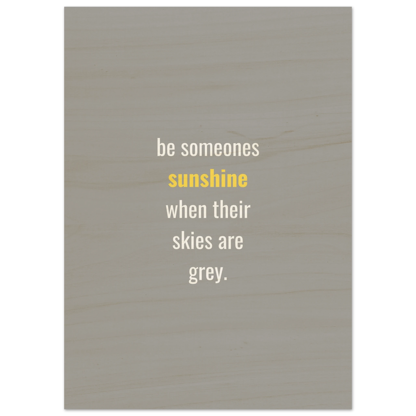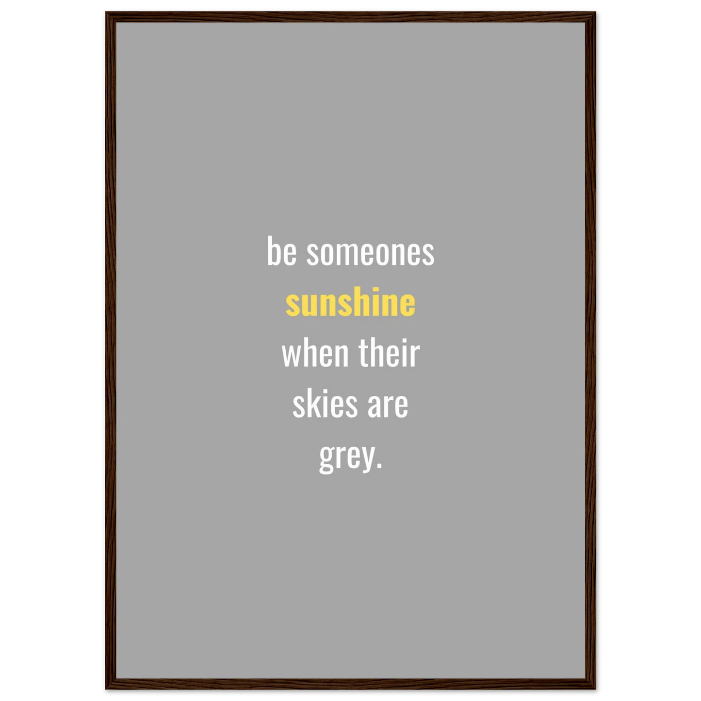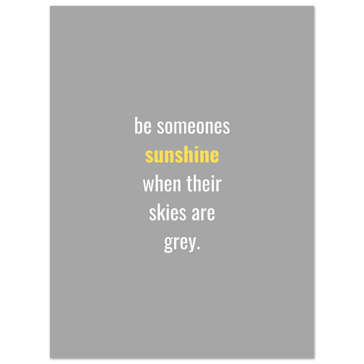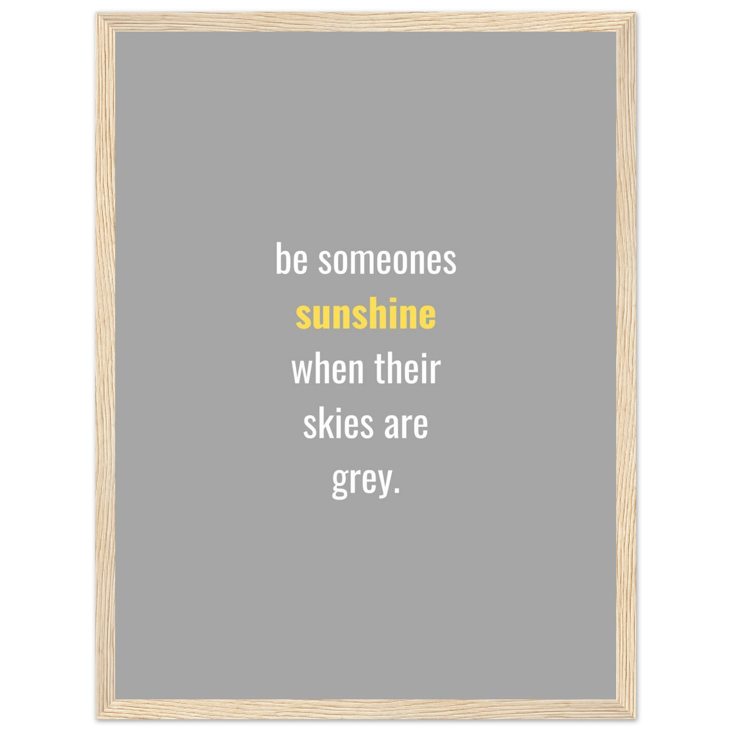 Et varmt og vennlig motiv som minner deg på kraften av små handlinger. Med enkel typografi på grå bakgrunn og ordet sunshine fremhevet i gult, symboliserer bildet hvordan positivitet kan skinne opp selv de mørkeste dager. Perfekt for å spre glede og skape en lysere atmosfære i rommet.