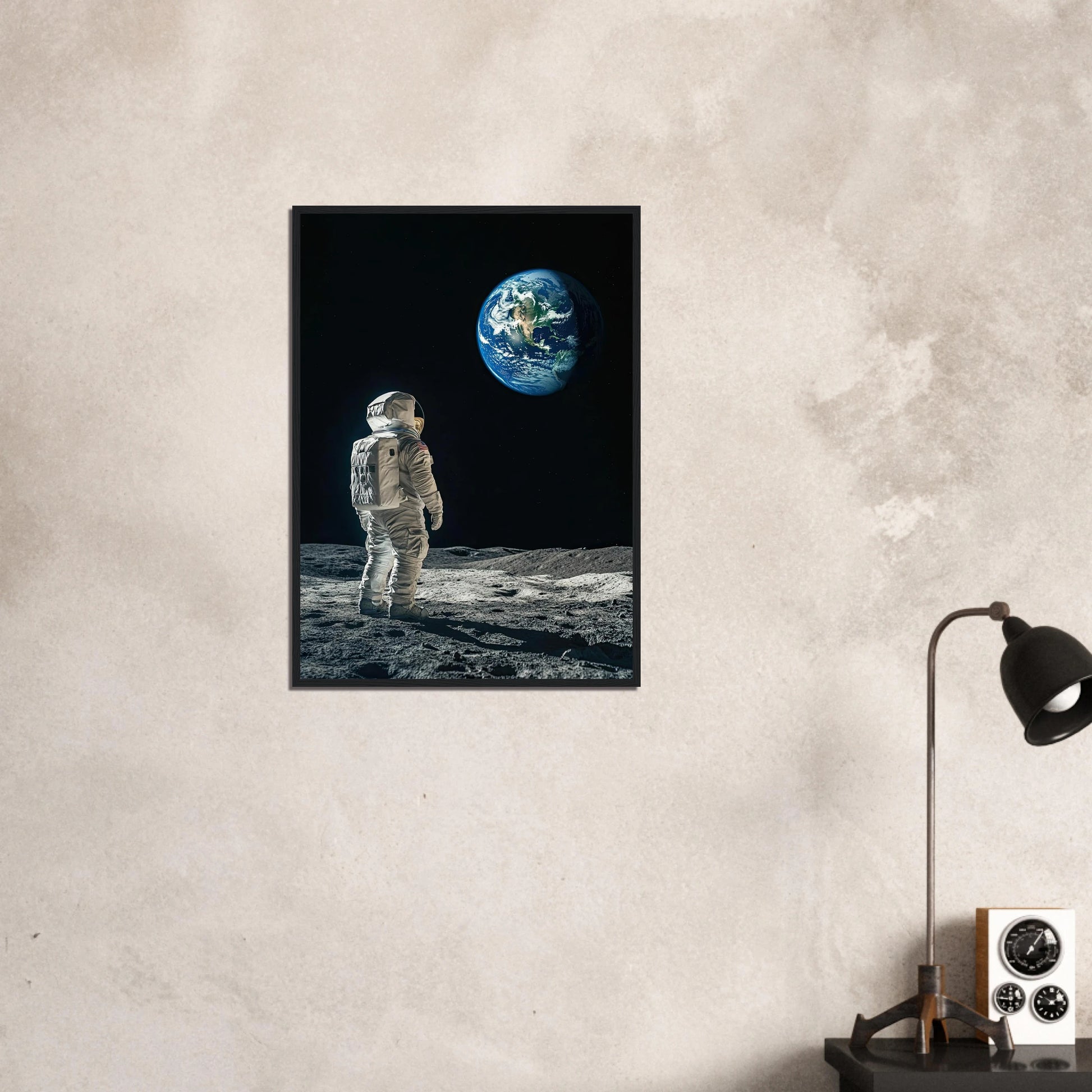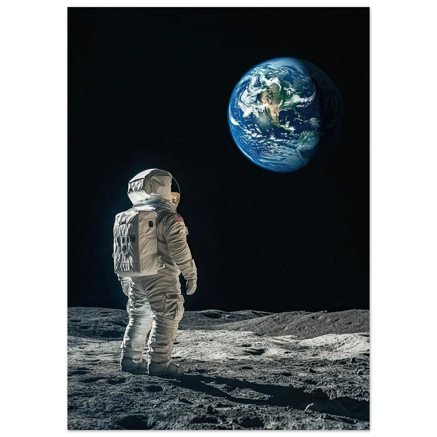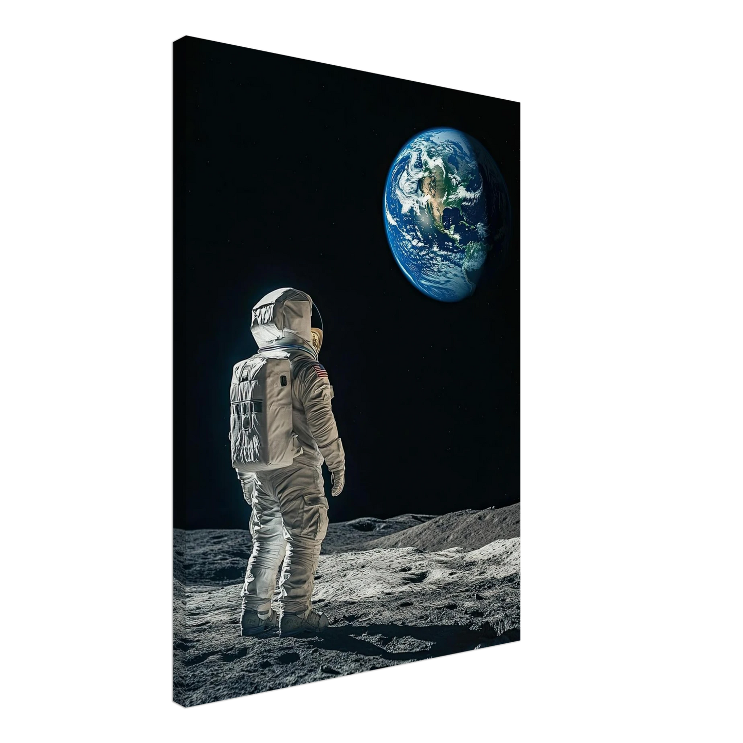 Et storslått kunstverk som fanger øyeblikket der en astronaut står på månens overflate og ser hjemover mot Jorden. Kontrasten mellom det uendelige mørket og den lysende, levende planeten minner oss om både eventyrlyst og sårbarheten til vår egen verden. Perfekt for deg som vil bringe universets storhet inn i hjemmet.