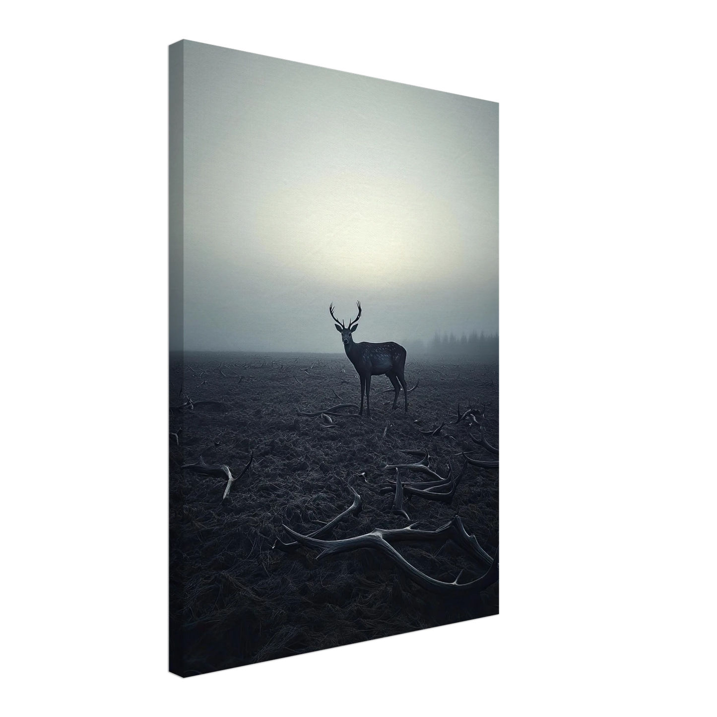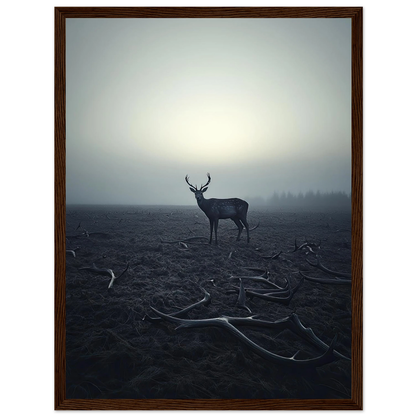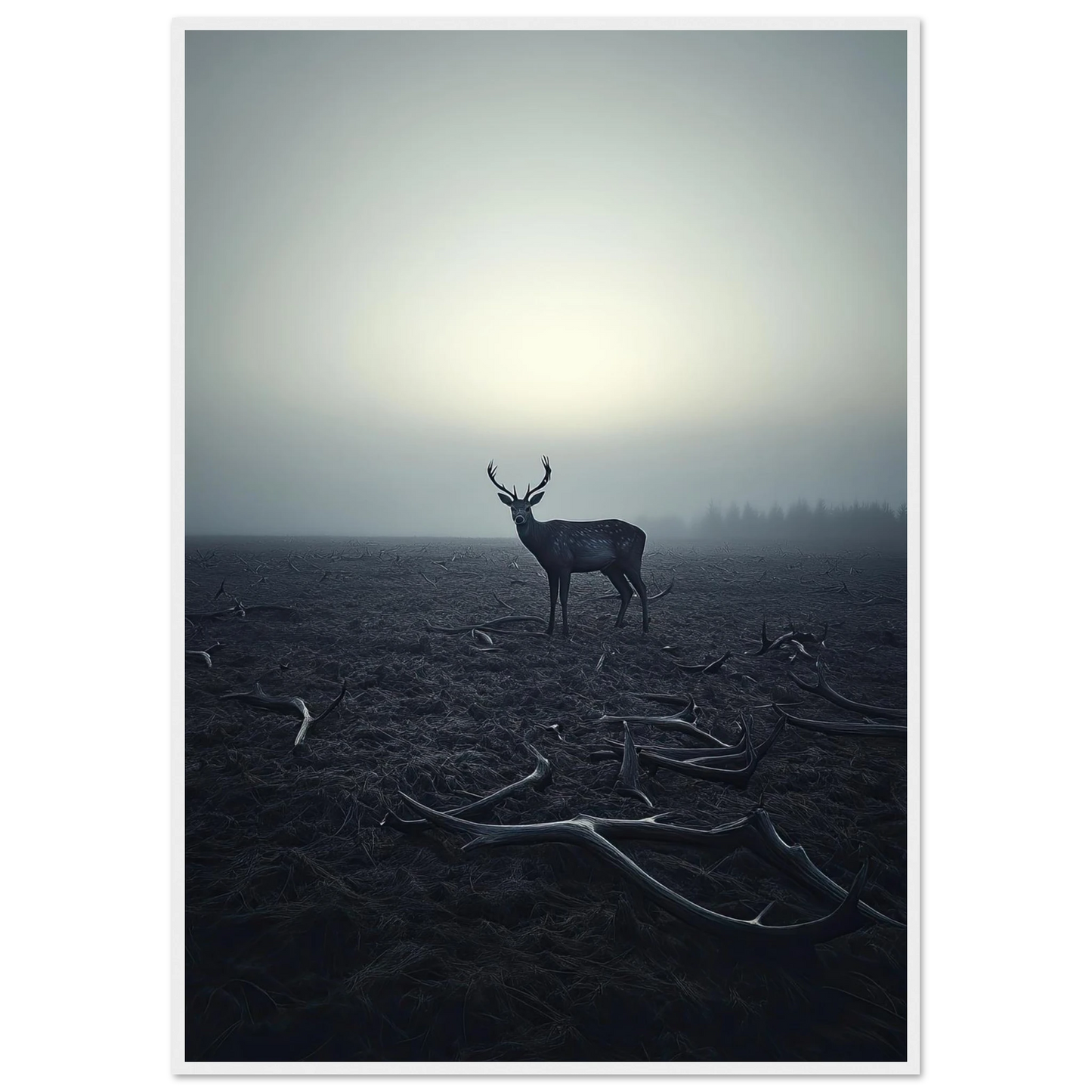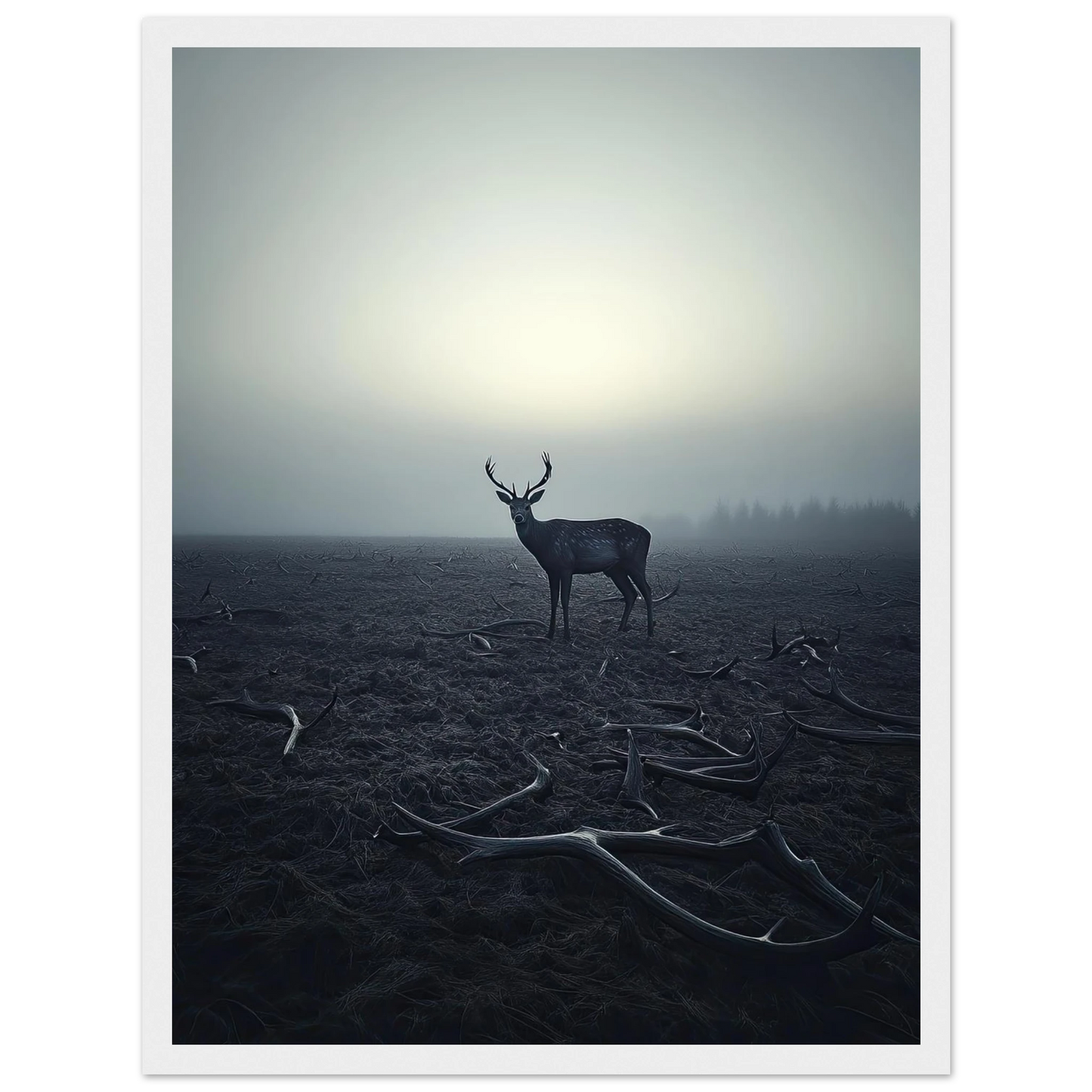Et kraftfullt og stemningsfullt kunstverk som fanger øyeblikket hvor én står igjen, blant levningene fra de som kom før. De falne gevirene vitner om fortiden, mens den siste hjorten bærer kronen videre – en symbolsk påminnelse om styrke, utholdenhet og verdigheten i å være den siste. Et bilde som både gir rom for ettertanke og blir et sterkt blikkfang i ethvert rom.