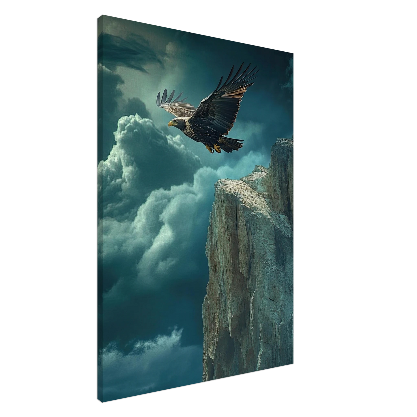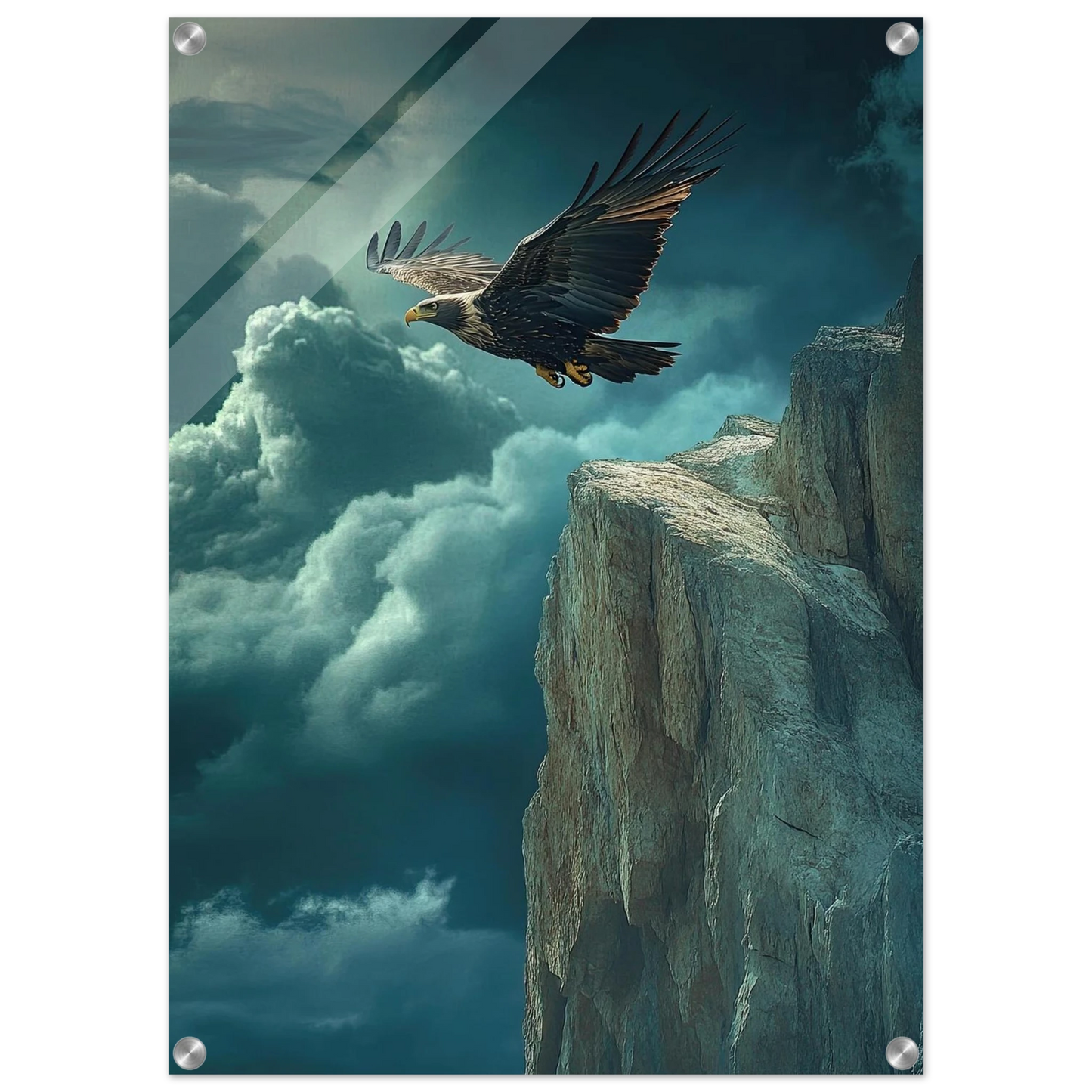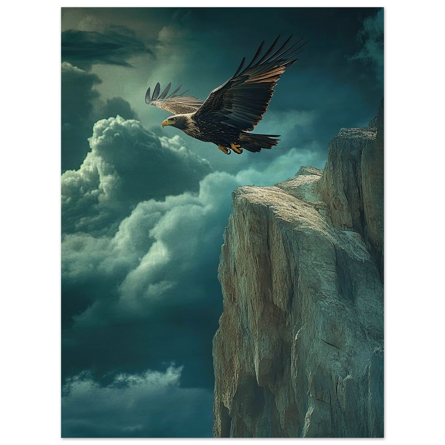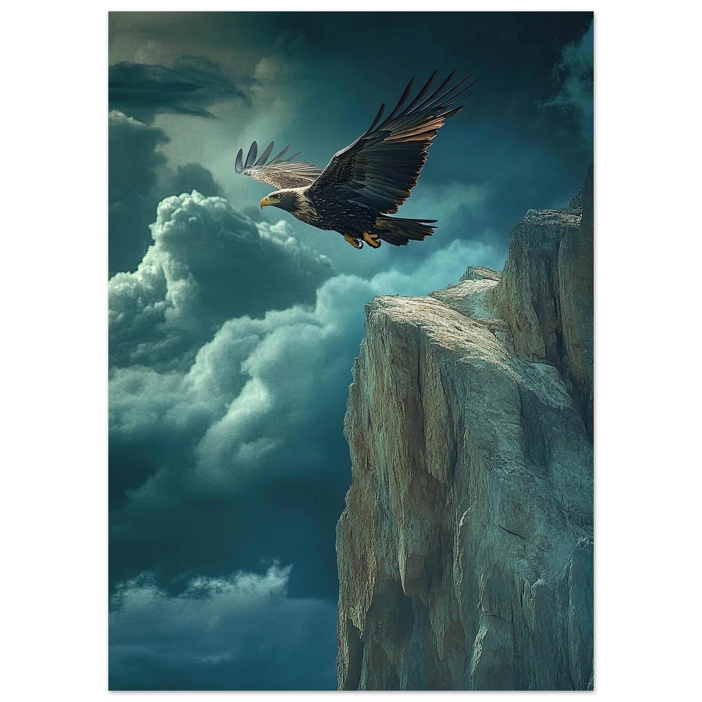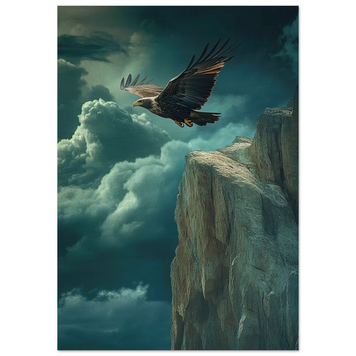 Et kraftfullt kunstverk som fanger øyeblikket ørnen kaster seg ut fra klippen og møter friheten. Symbol på mot, besluttsomhet og den styrken som finnes i å tørre å ta spranget. Et bilde som inspirerer til å våge, og til å følge drømmene — uansett hvor høyt de flyr.