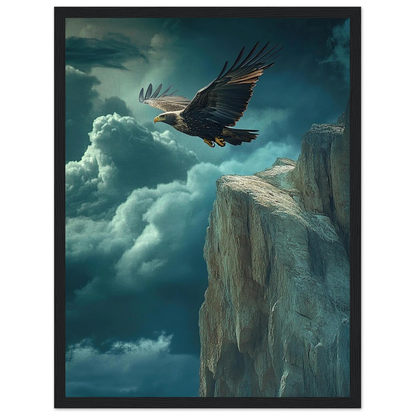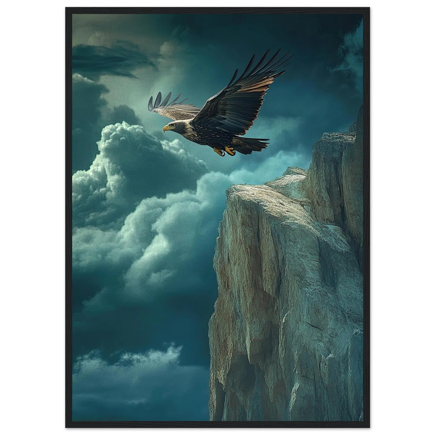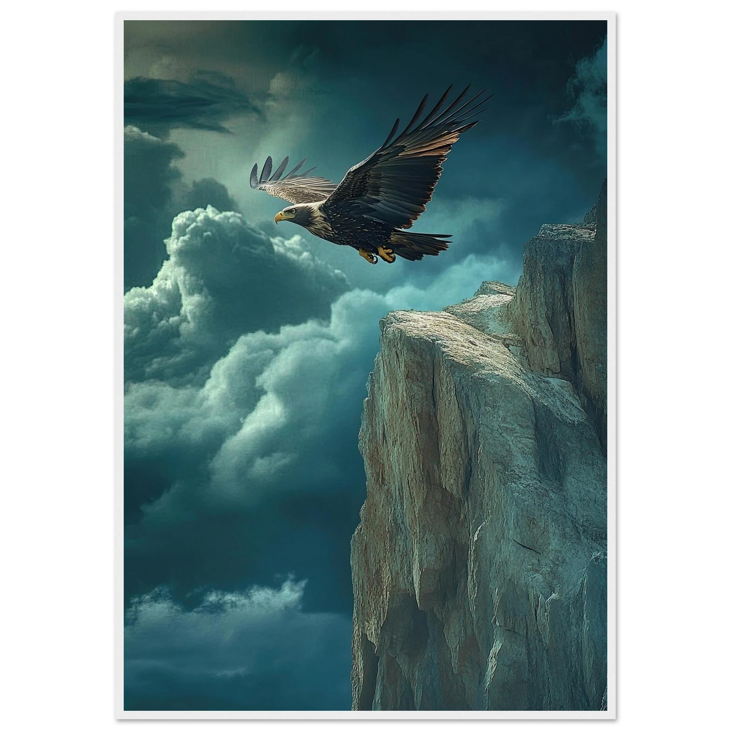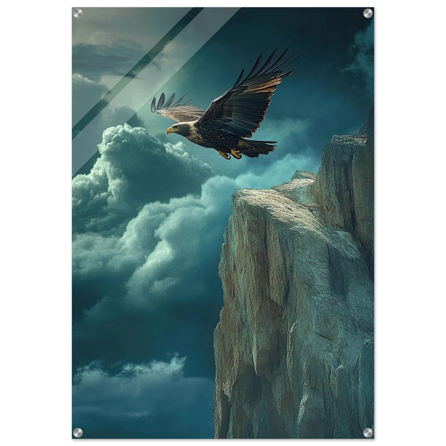 Et kraftfullt kunstverk som fanger øyeblikket ørnen kaster seg ut fra klippen og møter friheten. Symbol på mot, besluttsomhet og den styrken som finnes i å tørre å ta spranget. Et bilde som inspirerer til å våge, og til å følge drømmene — uansett hvor høyt de flyr.