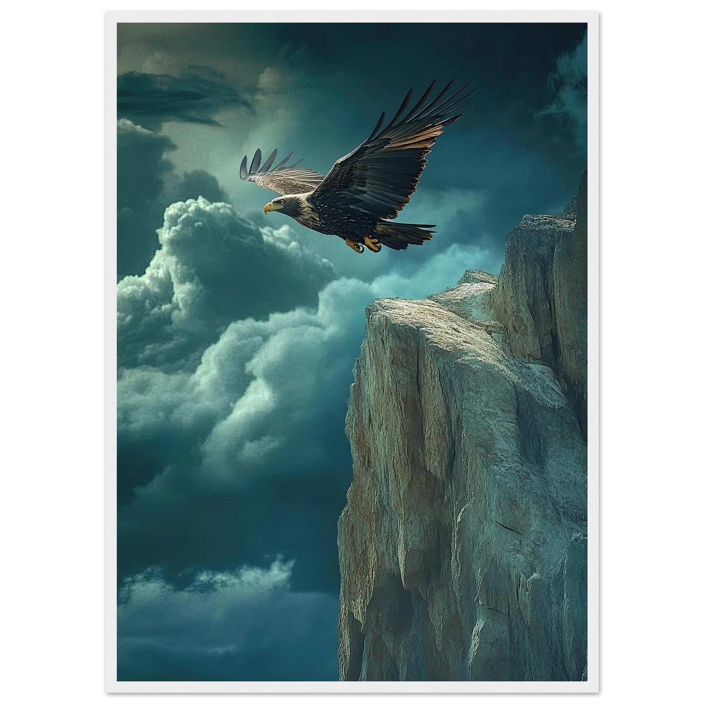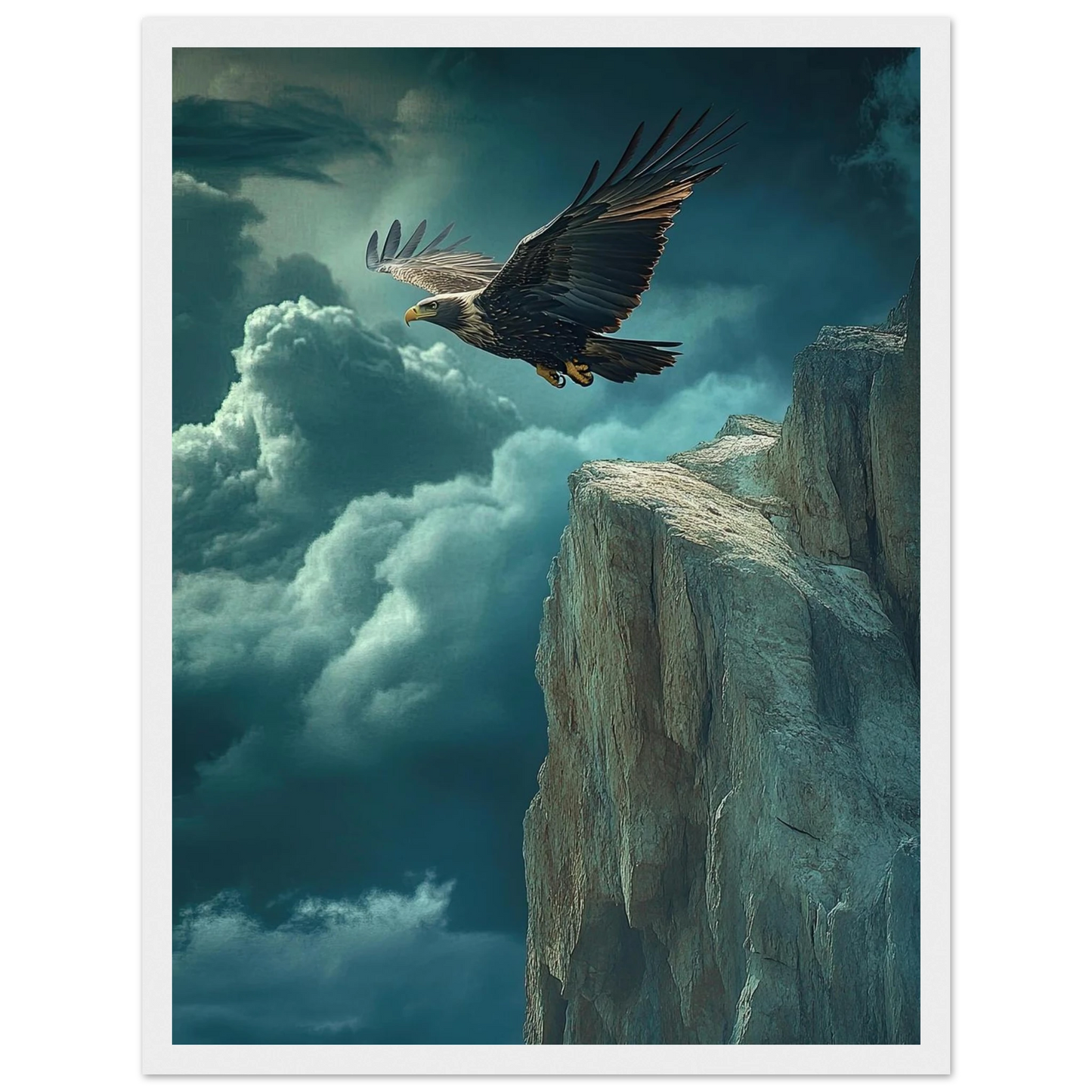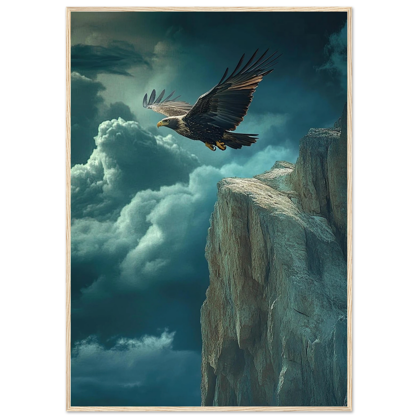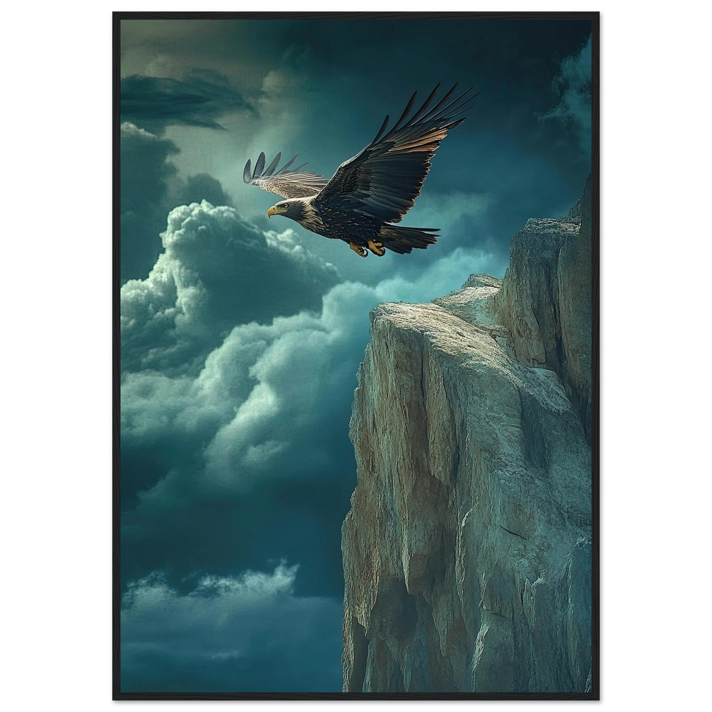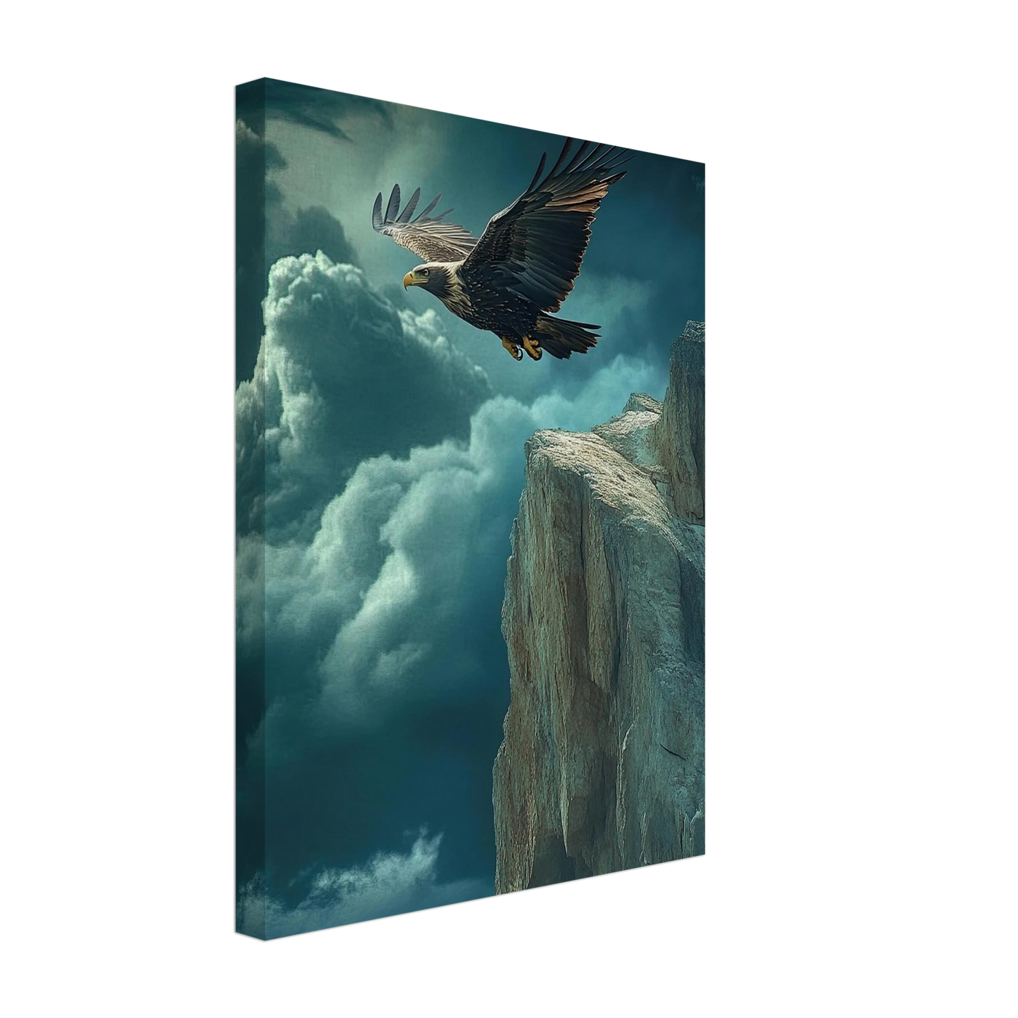 Et kraftfullt kunstverk som fanger øyeblikket ørnen kaster seg ut fra klippen og møter friheten. Symbol på mot, besluttsomhet og den styrken som finnes i å tørre å ta spranget. Et bilde som inspirerer til å våge, og til å følge drømmene — uansett hvor høyt de flyr.