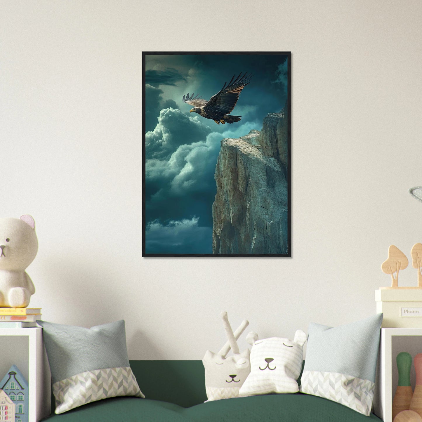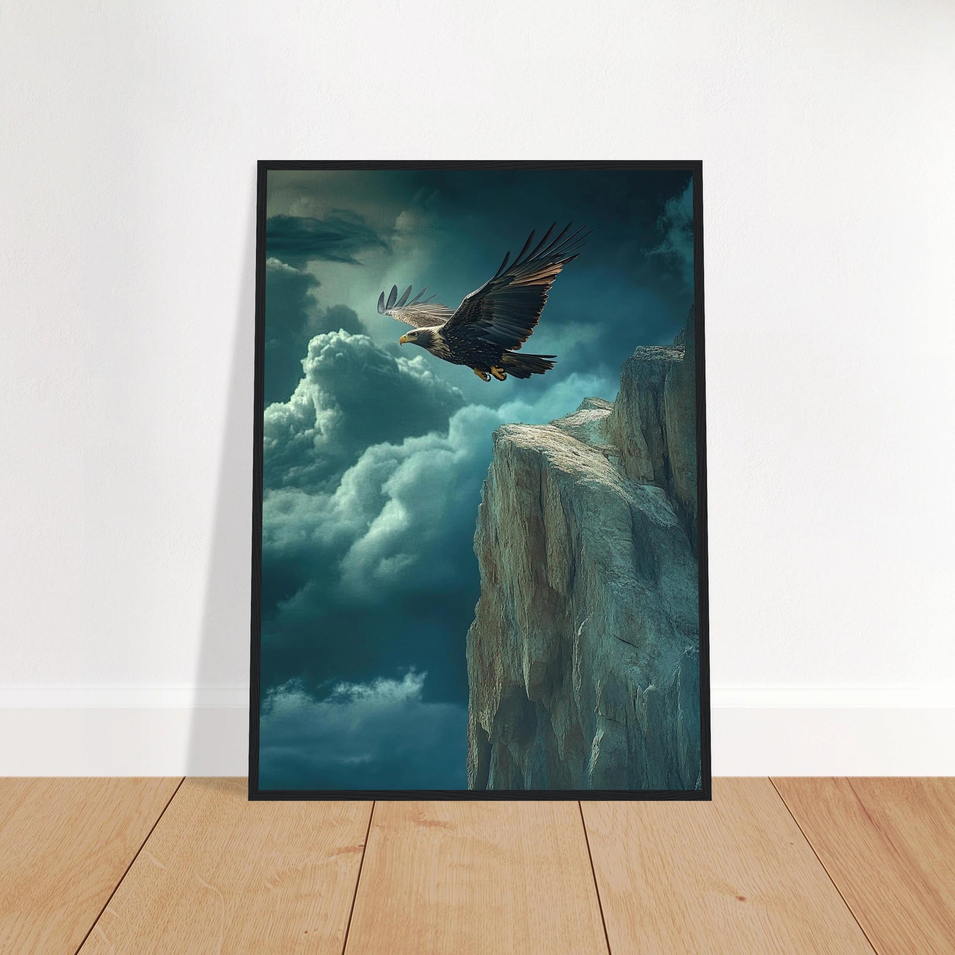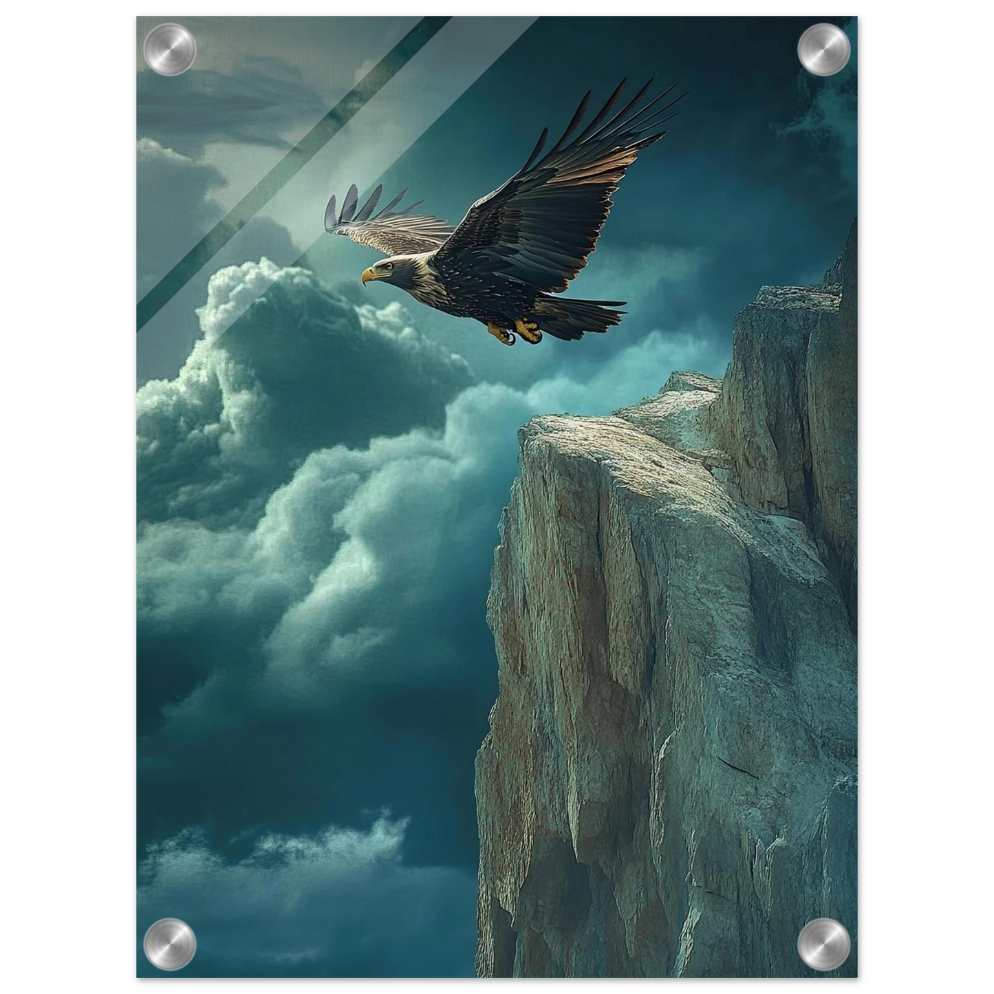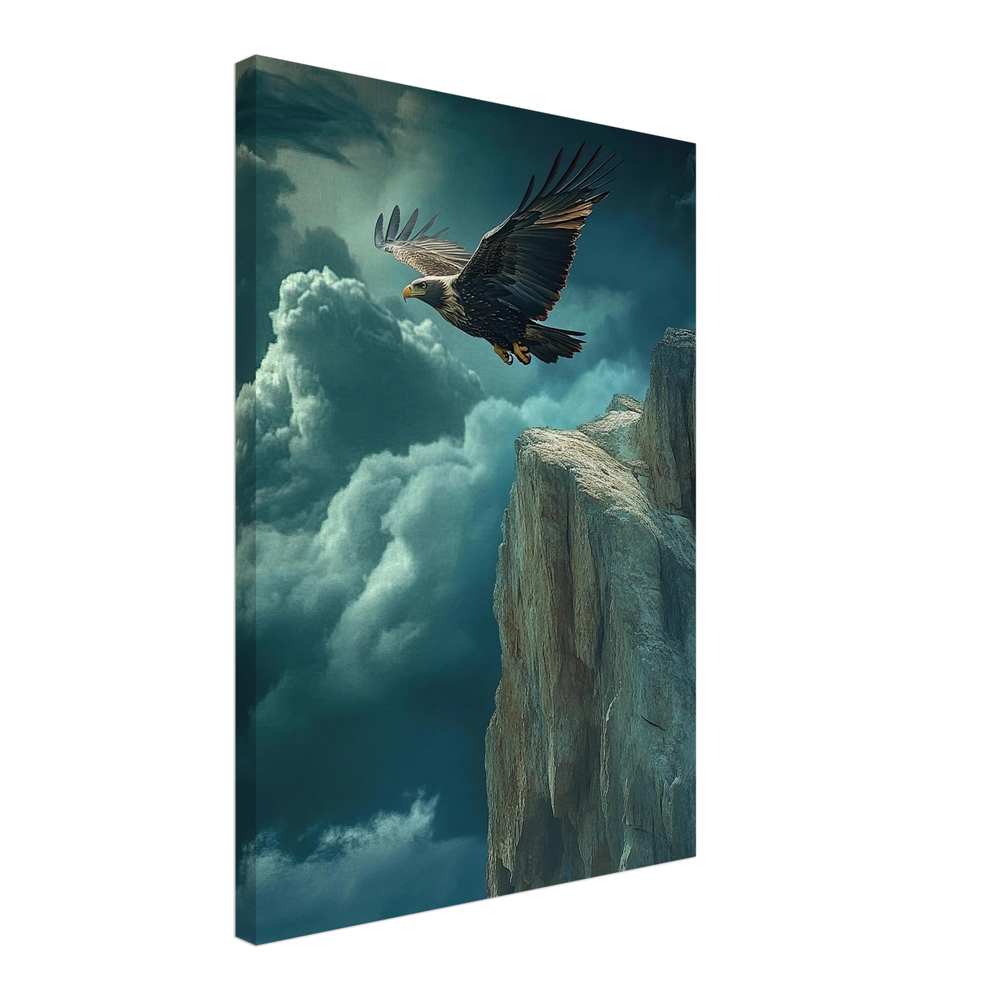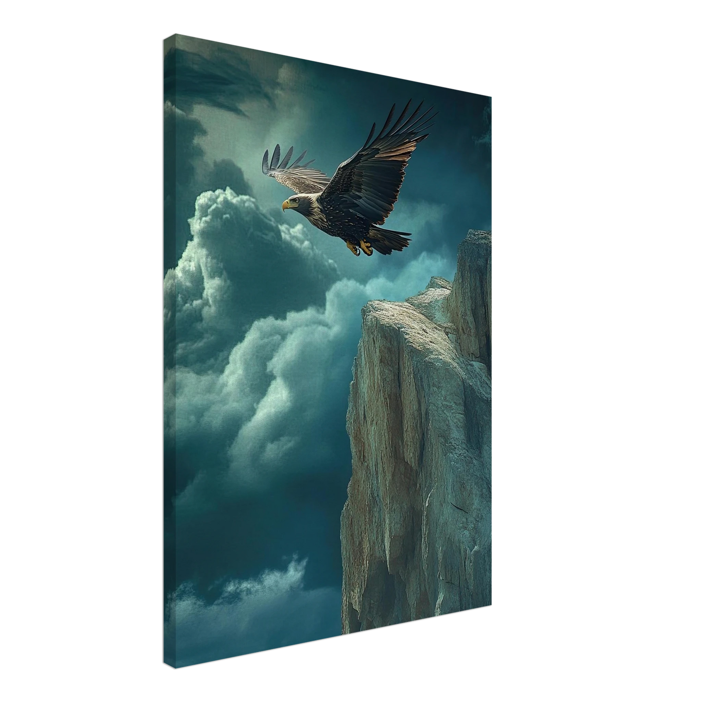 Et kraftfullt kunstverk som fanger øyeblikket ørnen kaster seg ut fra klippen og møter friheten. Symbol på mot, besluttsomhet og den styrken som finnes i å tørre å ta spranget. Et bilde som inspirerer til å våge, og til å følge drømmene — uansett hvor høyt de flyr.