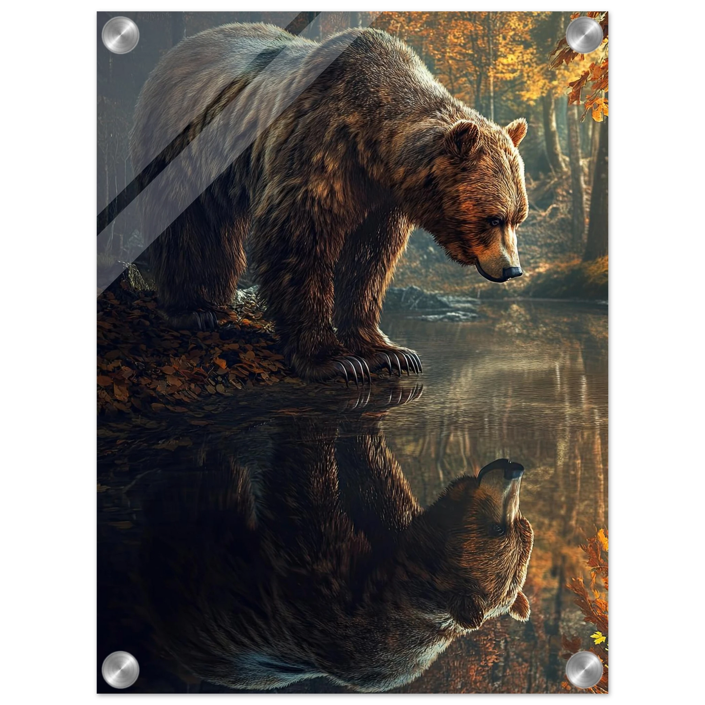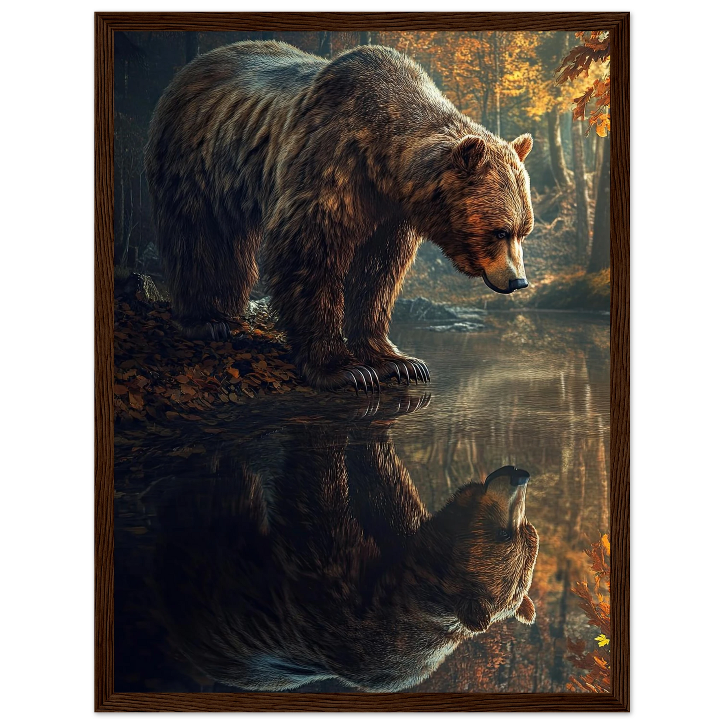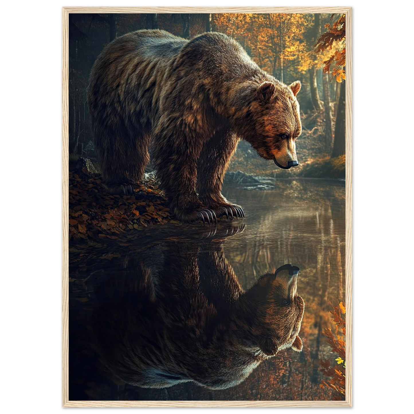 Et vakkert og tankevekkende kunstverk som fanger bjørnens stille møte med sitt eget speilbilde. En hyllest til selvinnsikt og ettertanke — øyeblikket der vi ser oss selv, uten forstyrrelser. Bildet inviterer til refleksjon og gir et varmt, organisk løft til ethvert rom.
