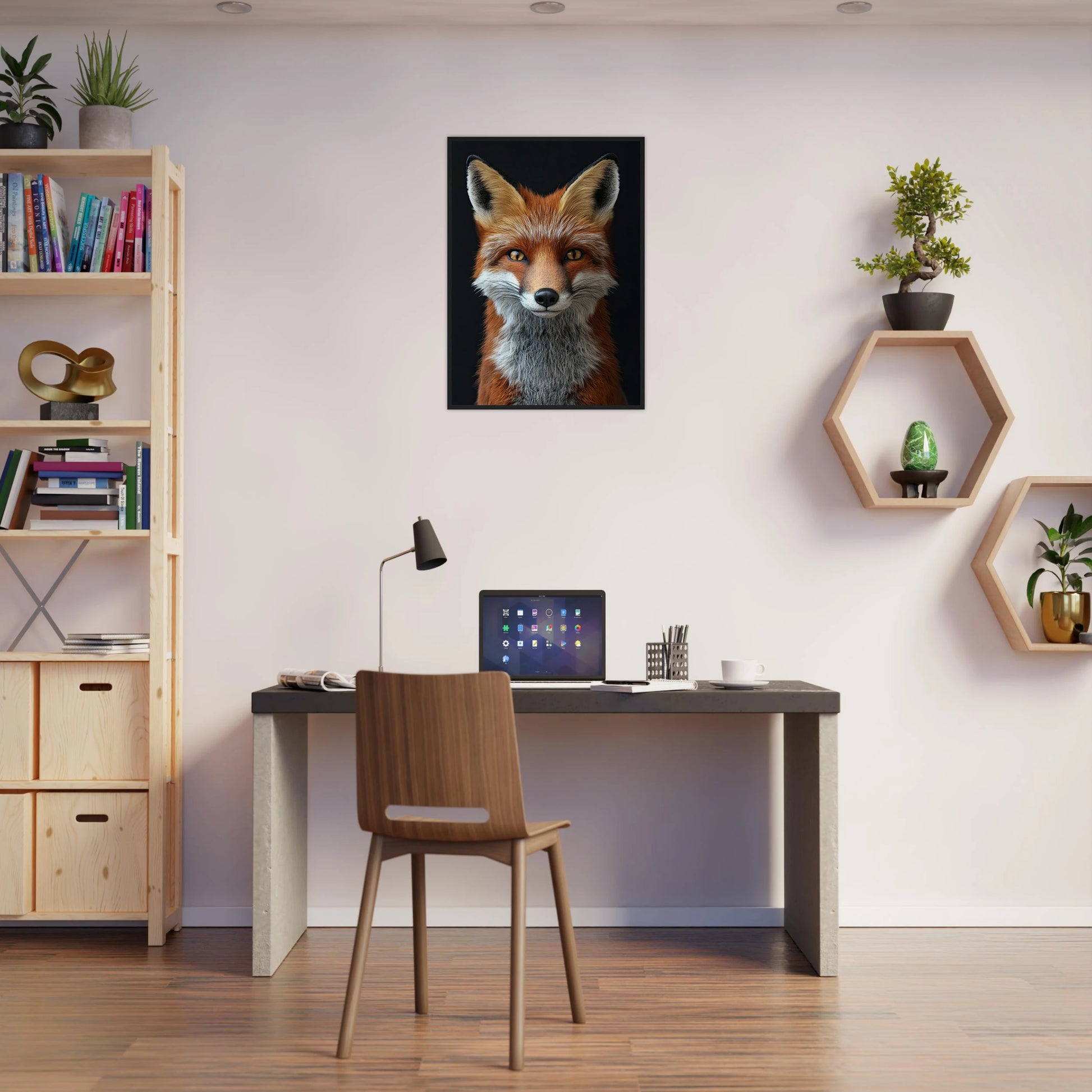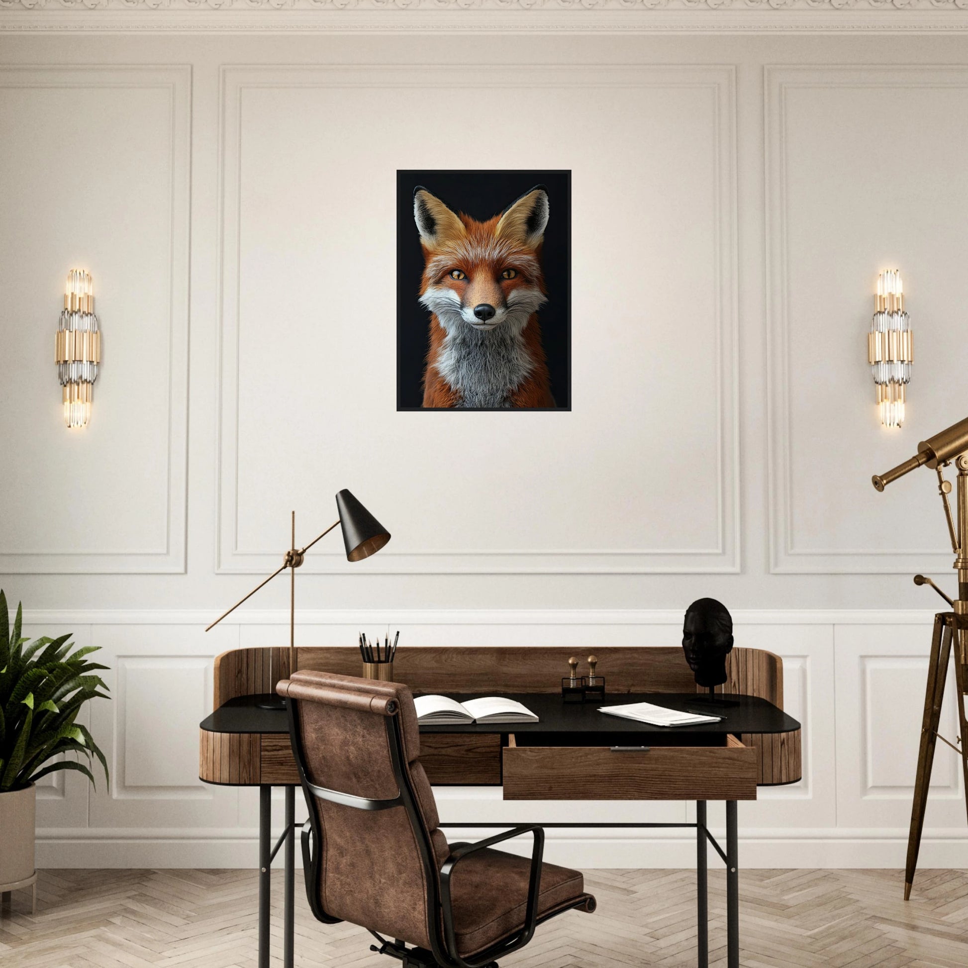 Et nærgående og karaktersterkt kunstverk som fanger reven i et øyeblikk av stille selvtillit. Det intense blikket og den rolige posituren gir bildet en dyp personlighet og tilstedeværelse. Perfekt for deg som vil ha kunst som vekker nysgjerrighet og gir karakter til rommet.