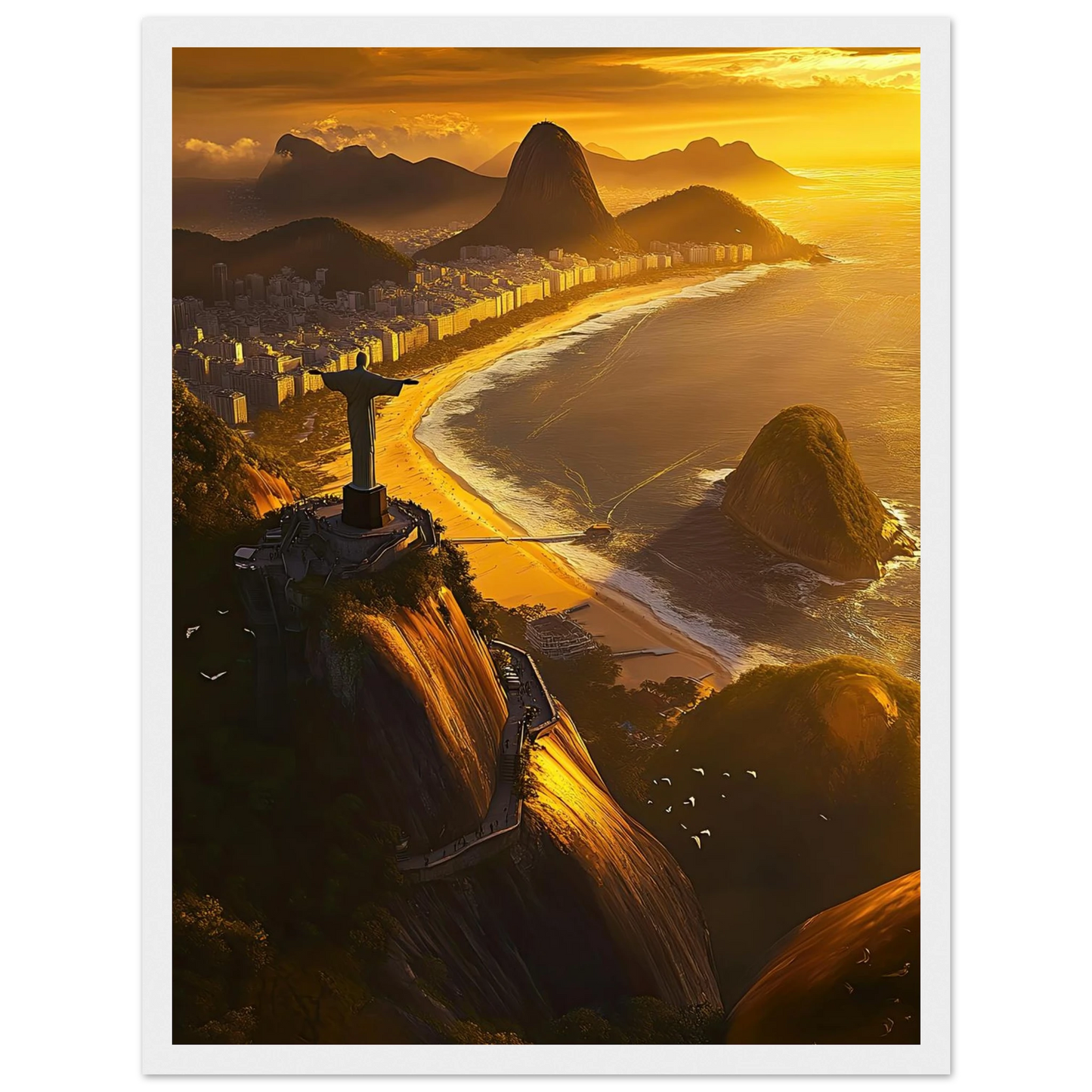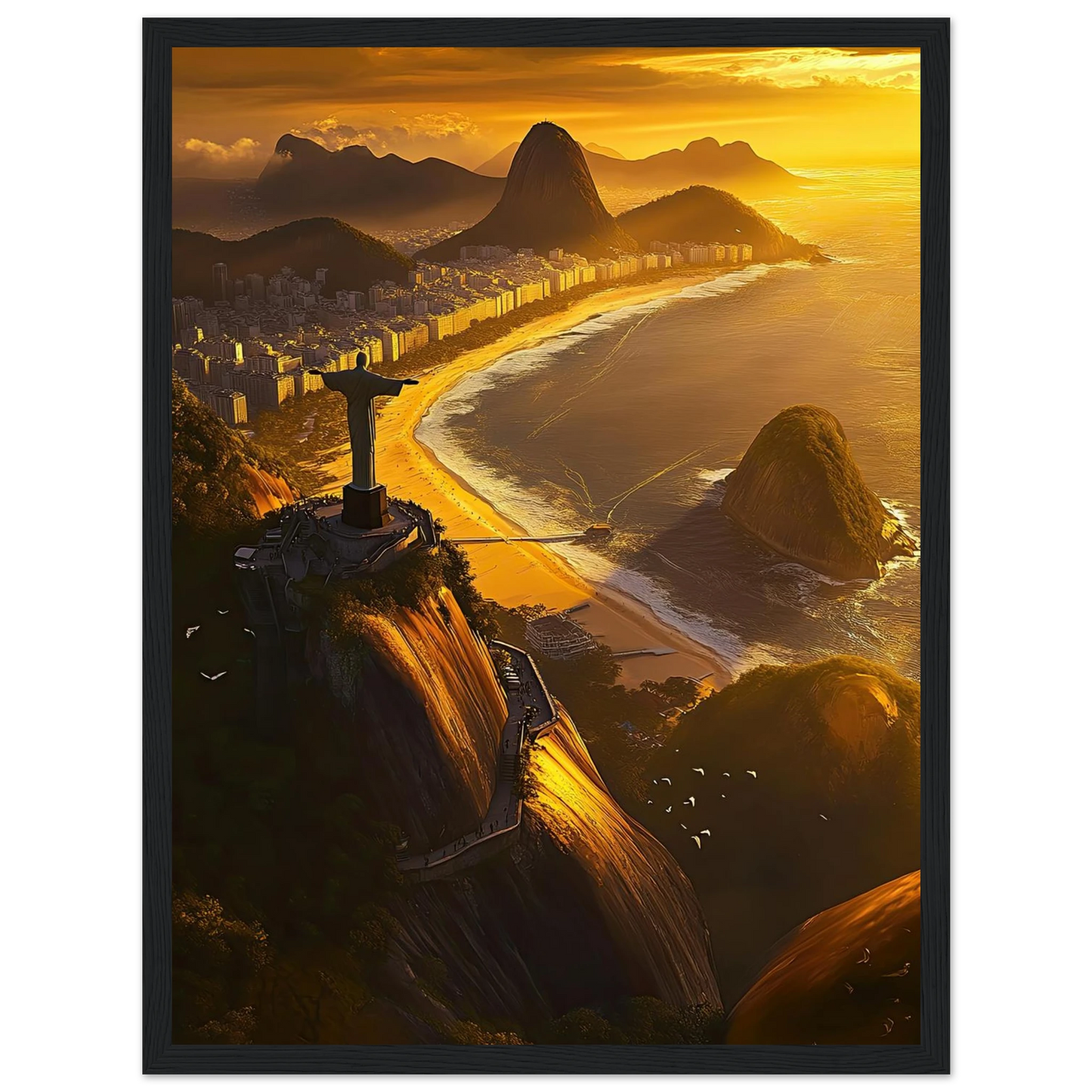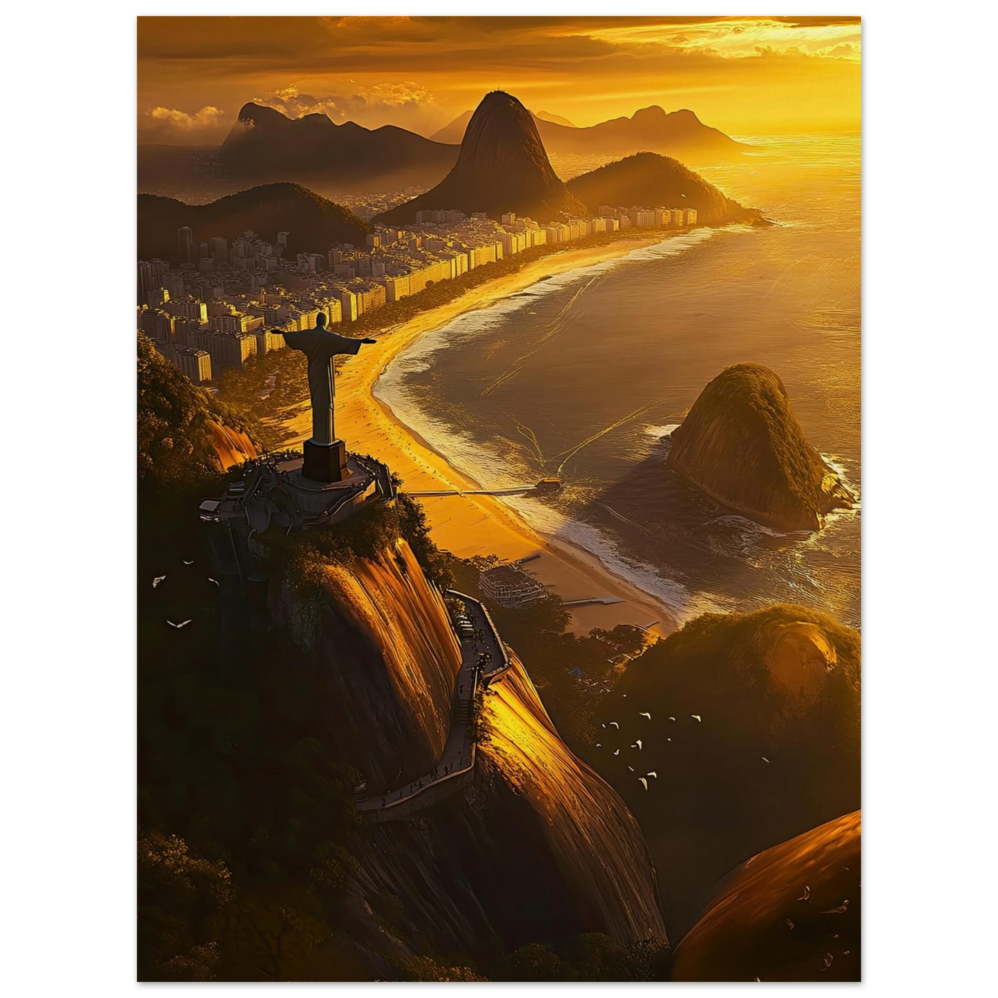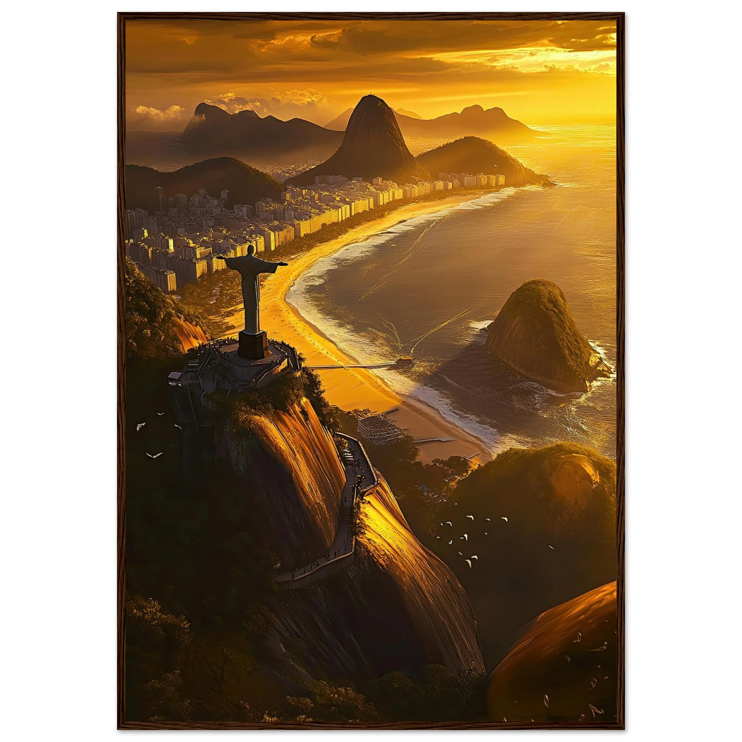 Et blendende vakkert kunstverk som fanger Rio de Janeiro badet i gyllen sol. Den verdenskjente kystlinjen slynger seg langs byen, mens fjellene og Kristusstatuen vokter over landskapet. Perfekt for deg som vil tilføre hjemmet energi, varme og reiselyst.