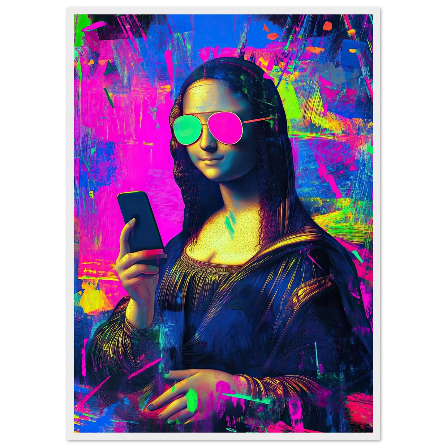 Mona Lisa blir dristig oppdatert i denne moderne street art-versjonen – med neonfargede solbriller og mobilen i hånden. Det klassiske uttrykket møter popkulturens digitale tidsalder i en eksplosjon av farger og attitude. Perfekt kunstverk for deg som vil kombinere ikonisk historie med leken urban energi i hjemmet.