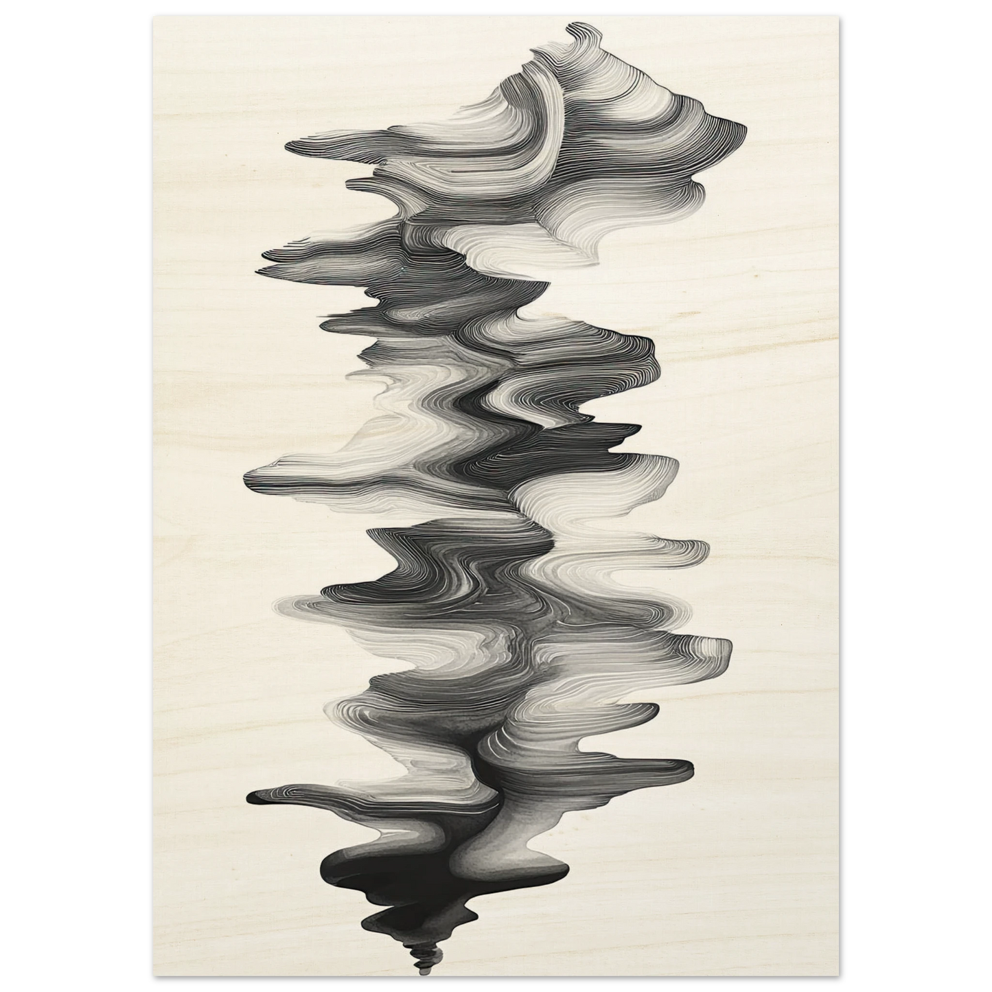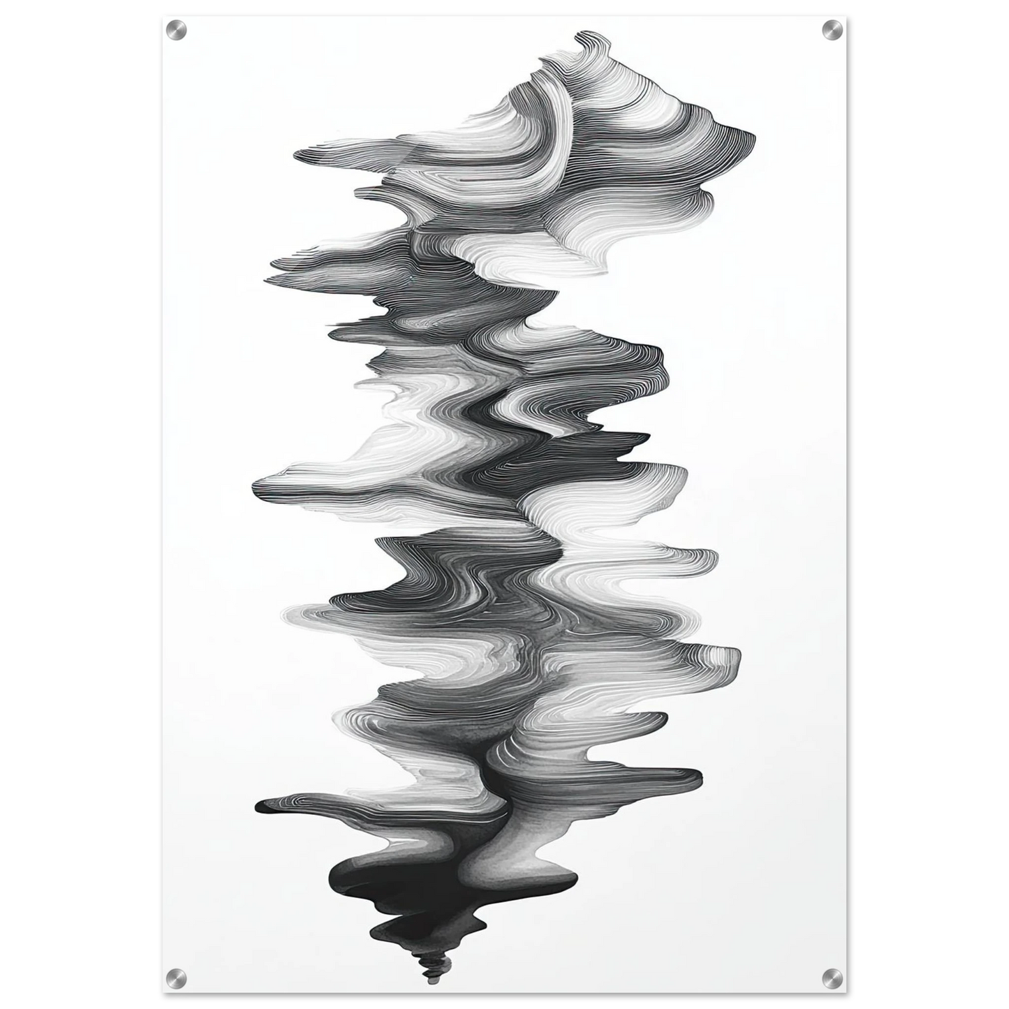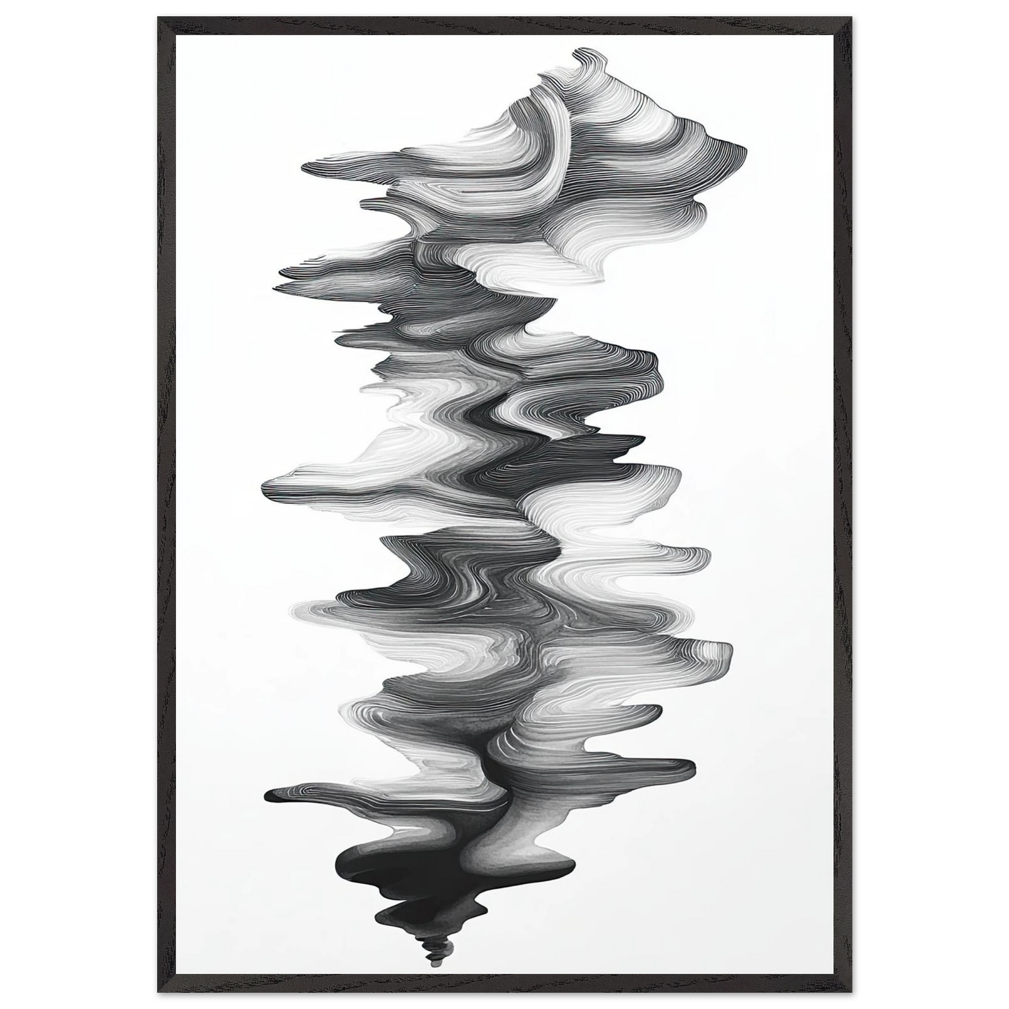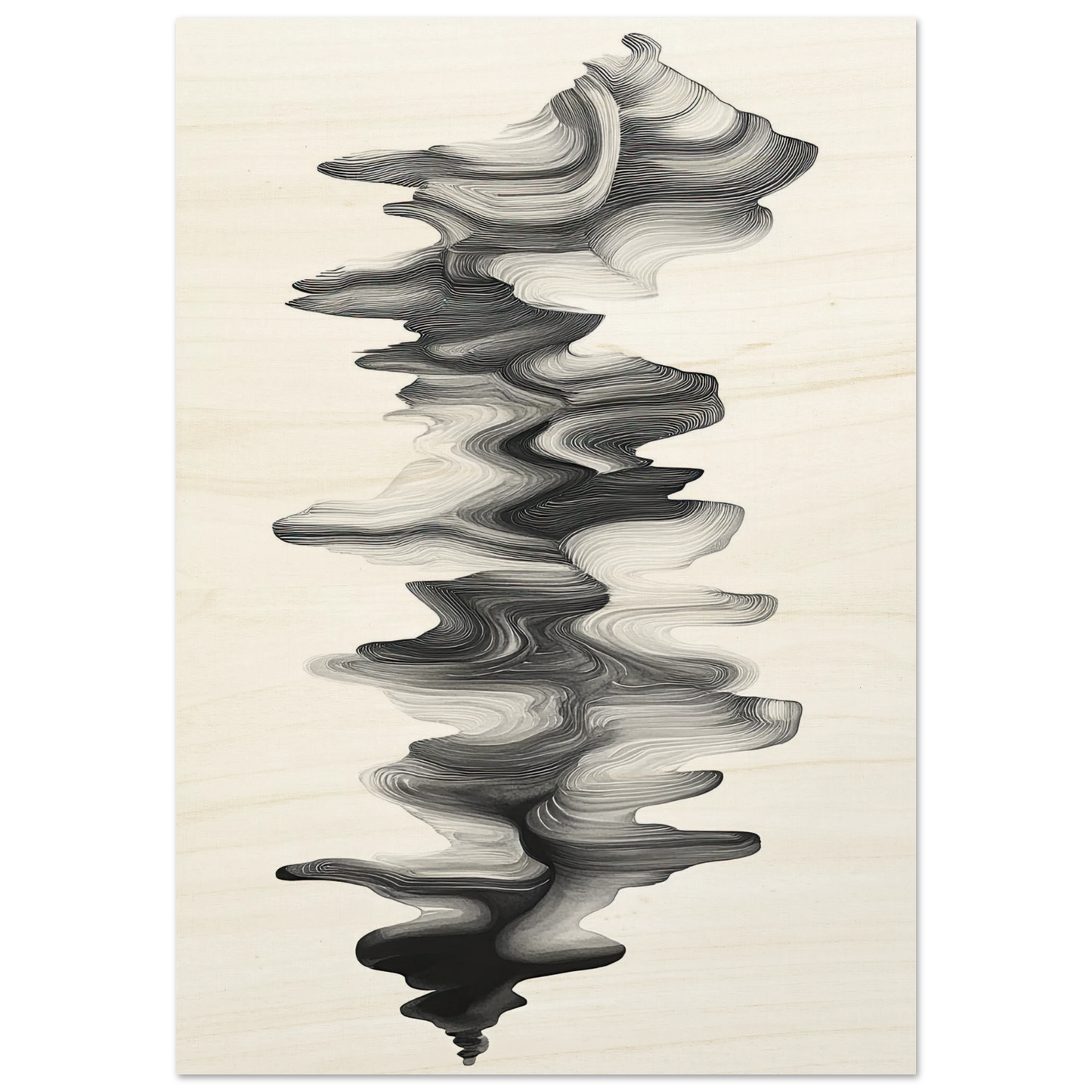 Et unikt minimalistisk kunstverk med organiske, bølgende linjer i svart og hvitt. Formen minner om både vann, fjell og lyd, og skaper et uttrykk som både er dynamisk og meditativt. Perfekt for å tilføre rommet et moderne og abstrakt preg.