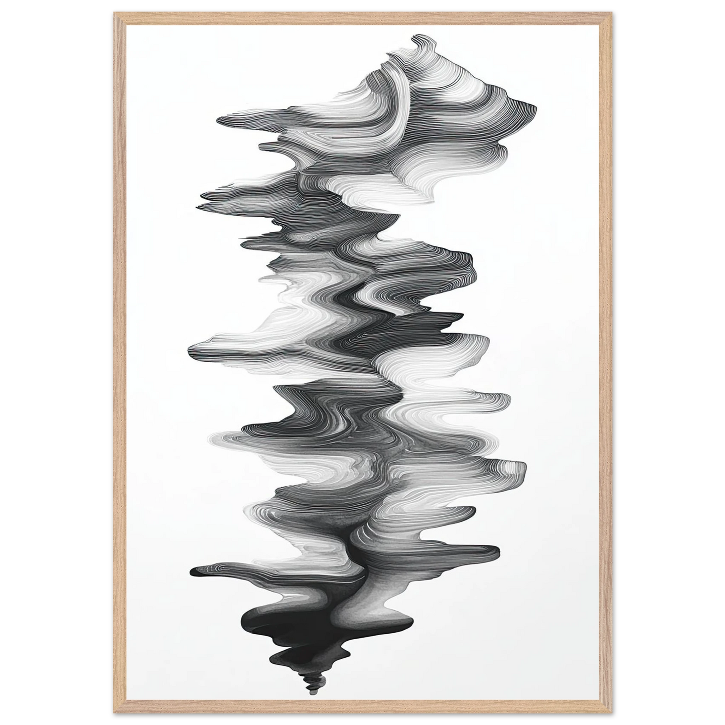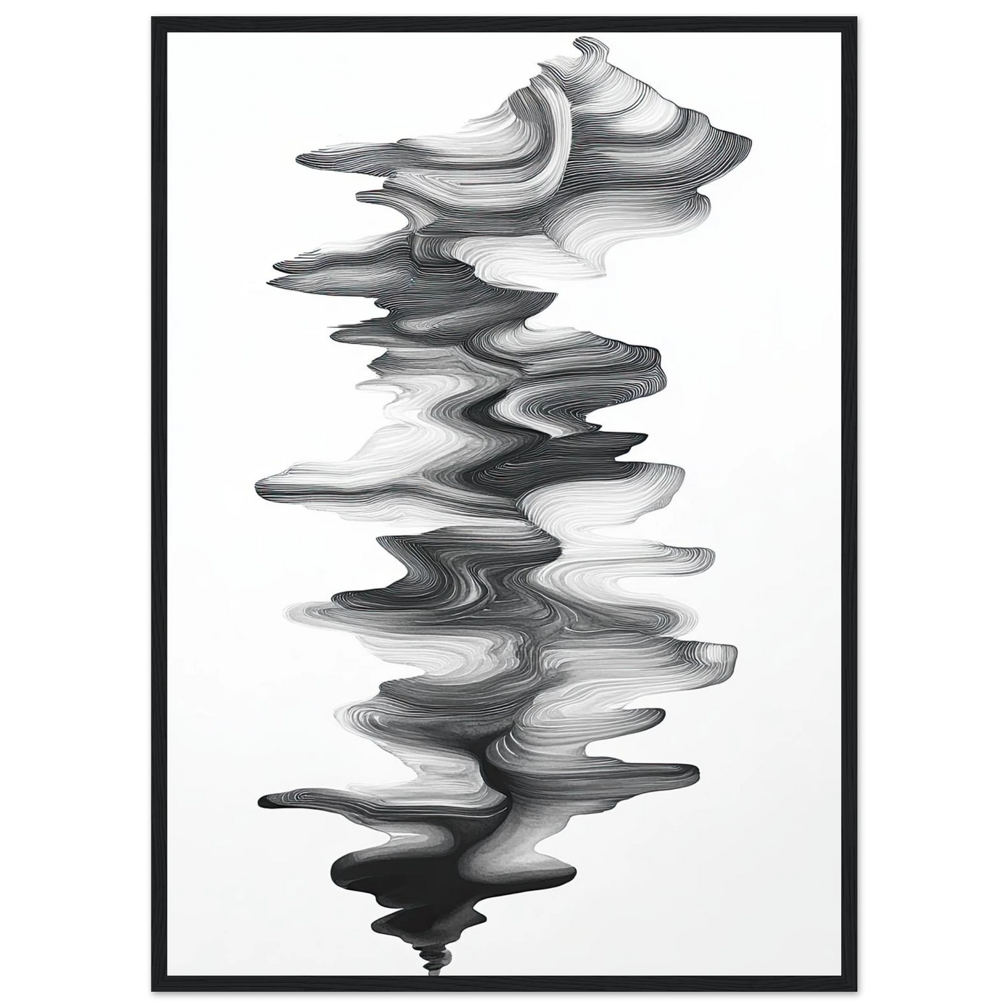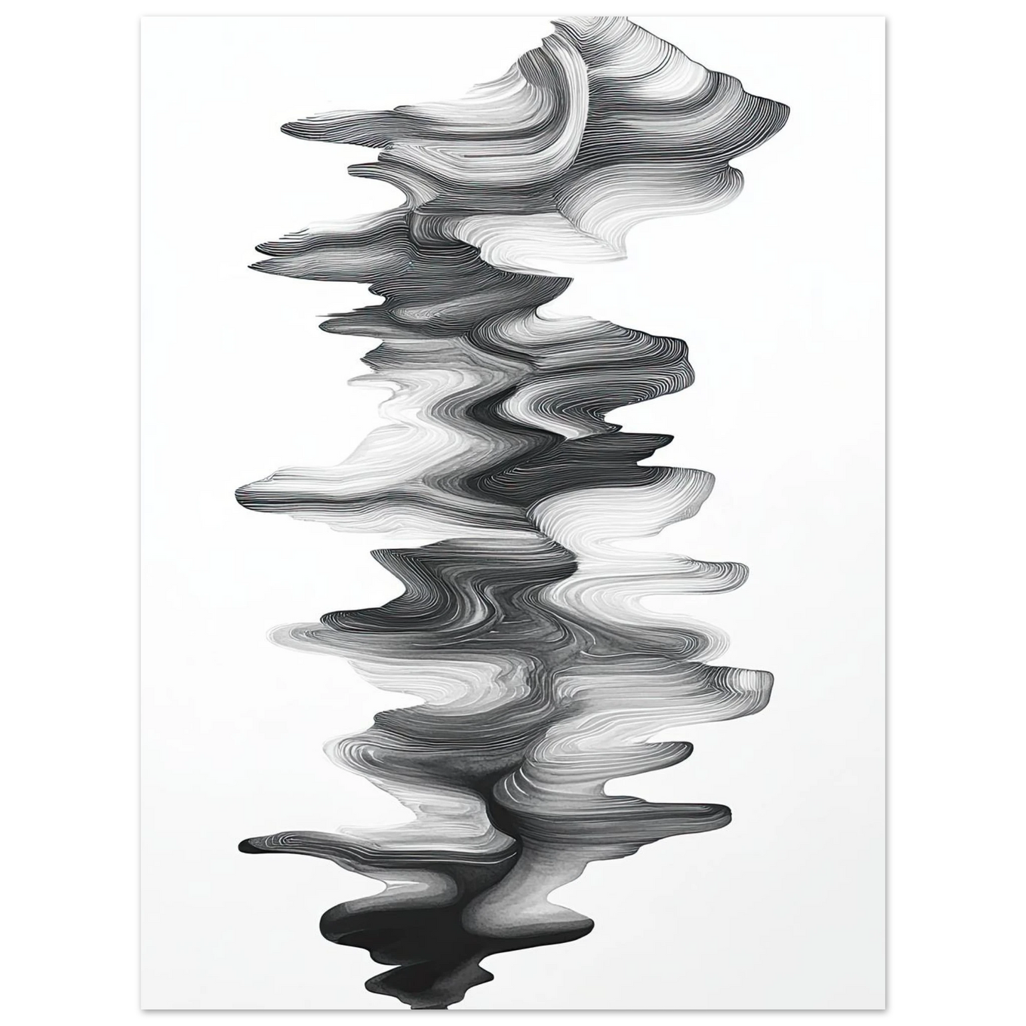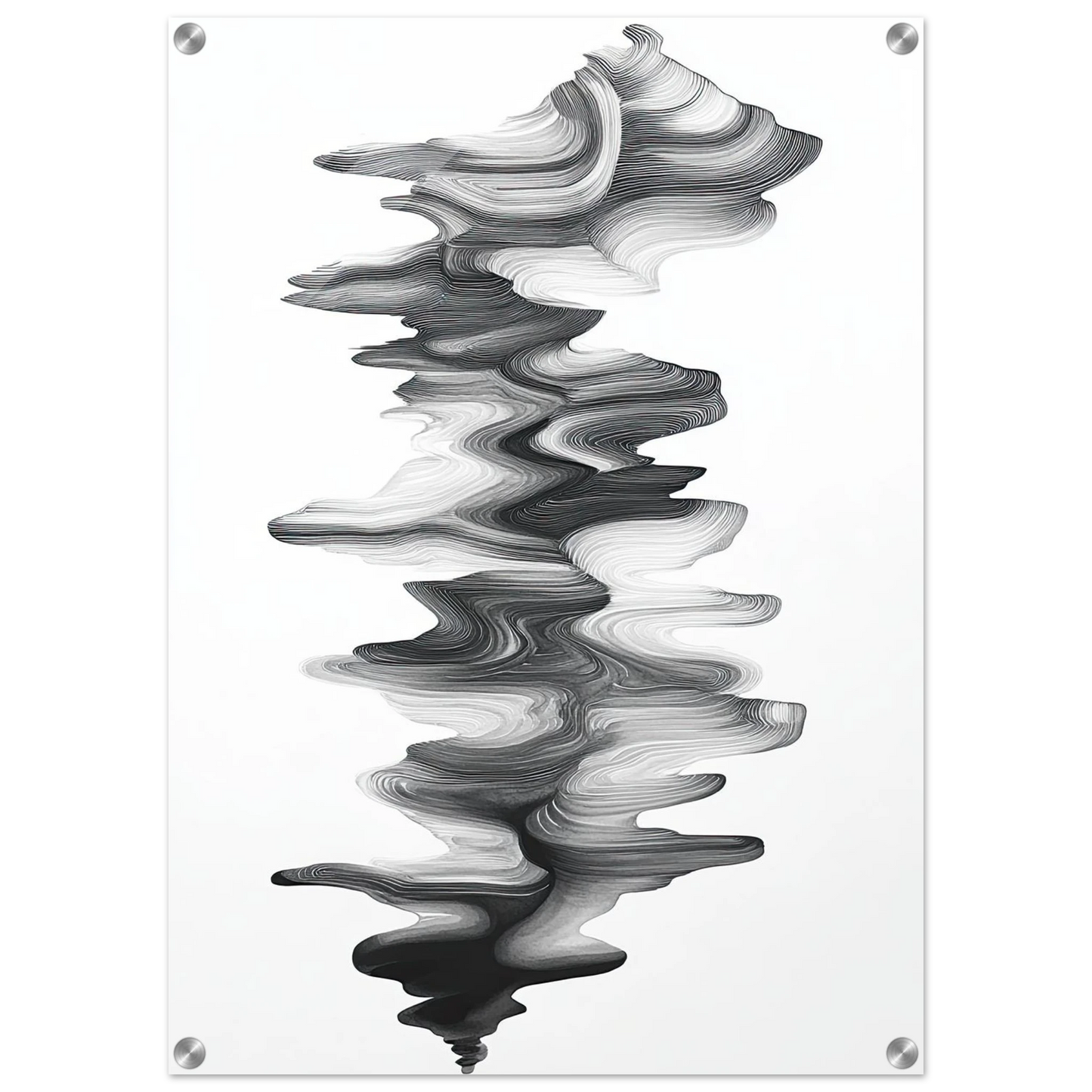 Et unikt minimalistisk kunstverk med organiske, bølgende linjer i svart og hvitt. Formen minner om både vann, fjell og lyd, og skaper et uttrykk som både er dynamisk og meditativt. Perfekt for å tilføre rommet et moderne og abstrakt preg.