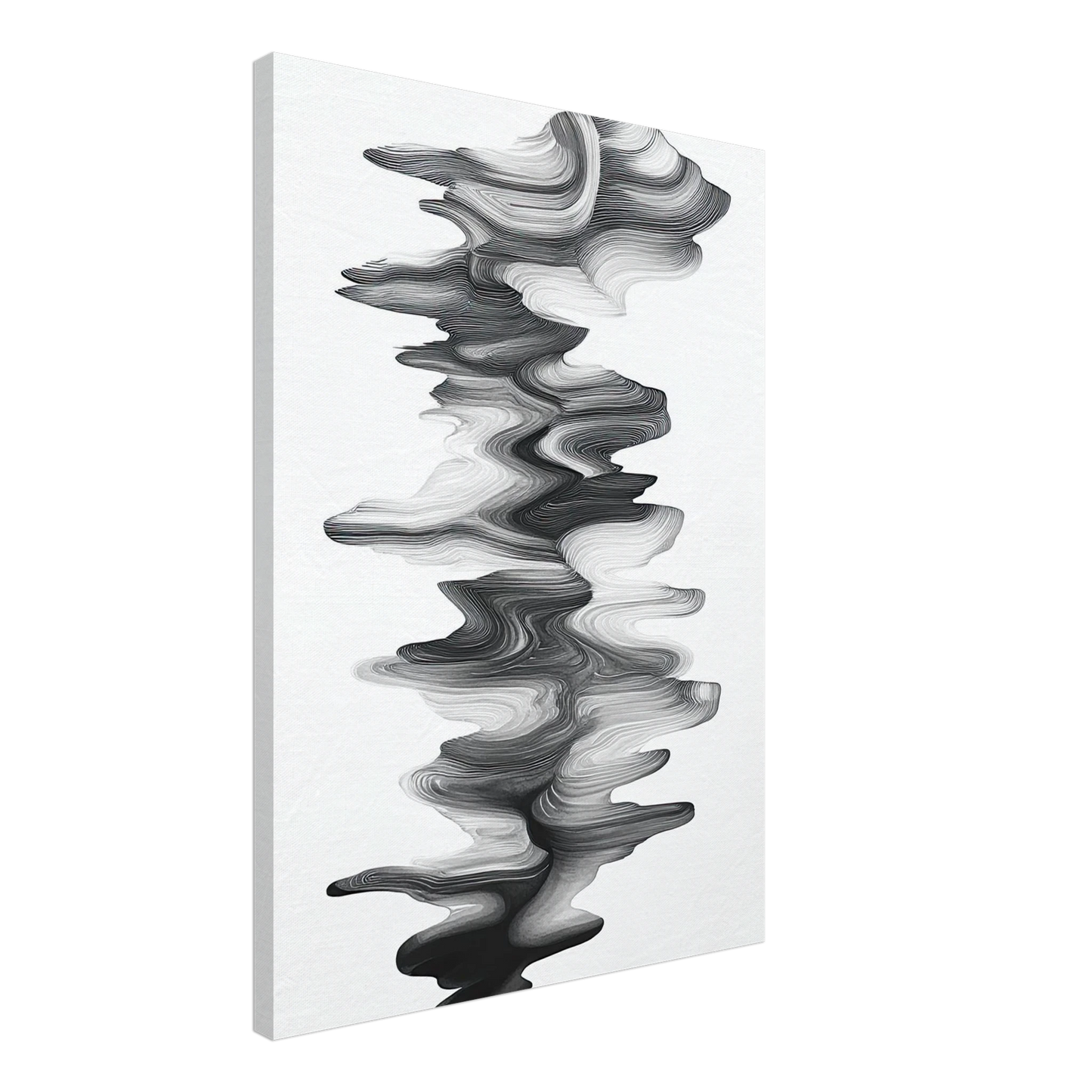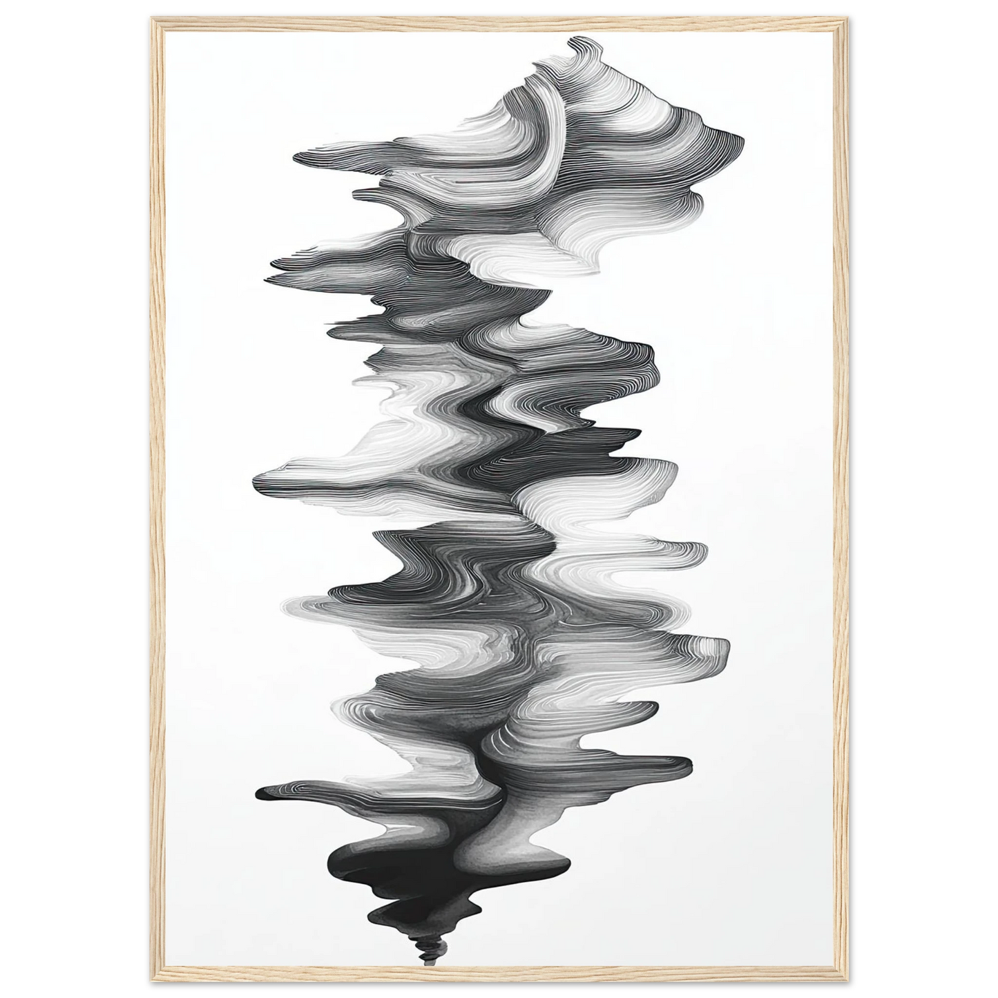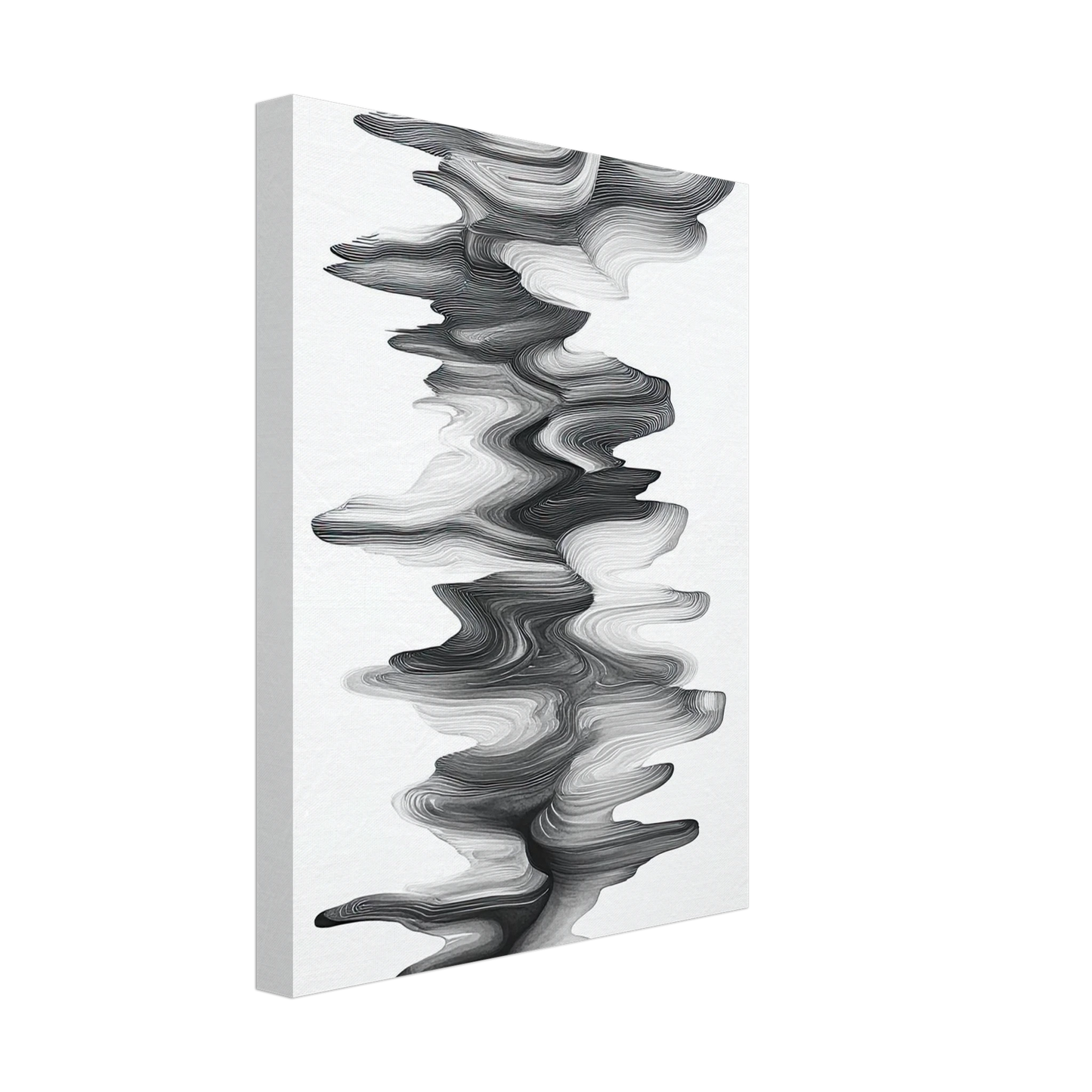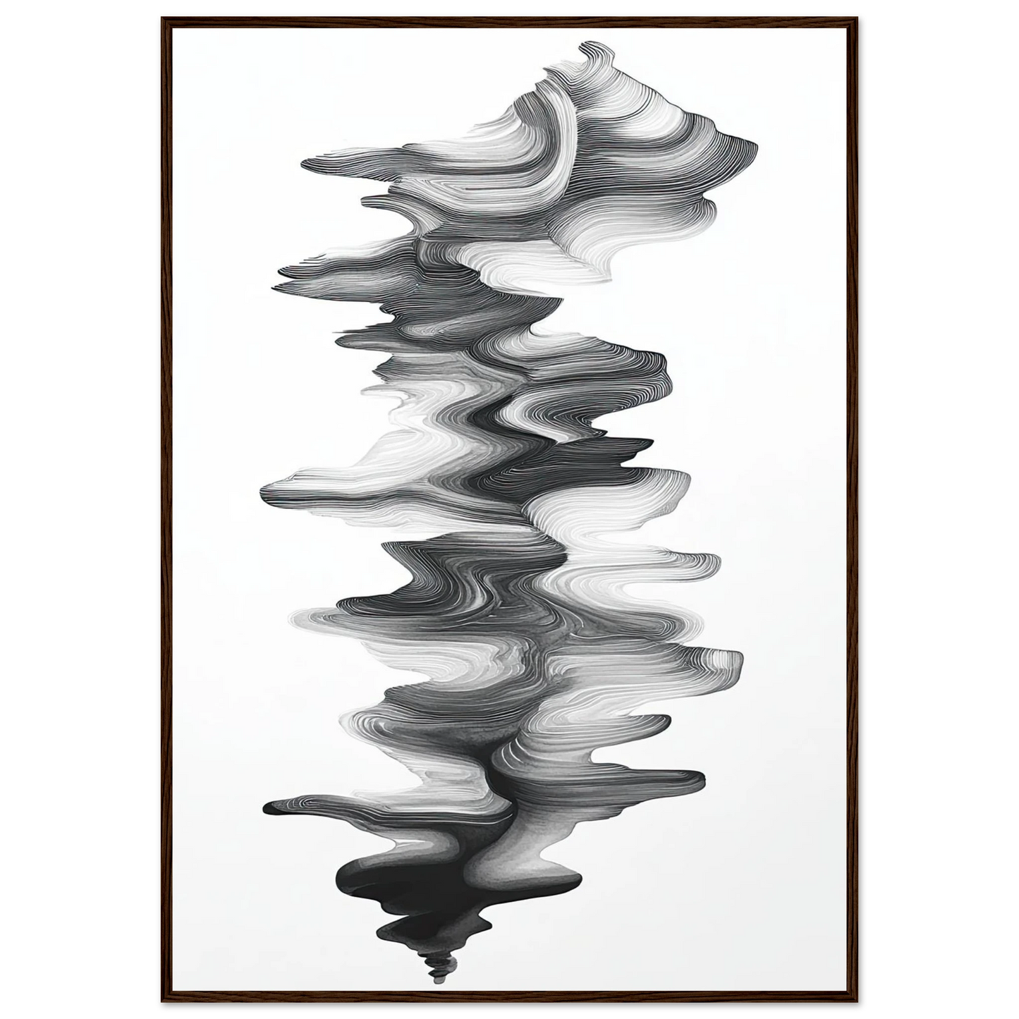 Et unikt minimalistisk kunstverk med organiske, bølgende linjer i svart og hvitt. Formen minner om både vann, fjell og lyd, og skaper et uttrykk som både er dynamisk og meditativt. Perfekt for å tilføre rommet et moderne og abstrakt preg.