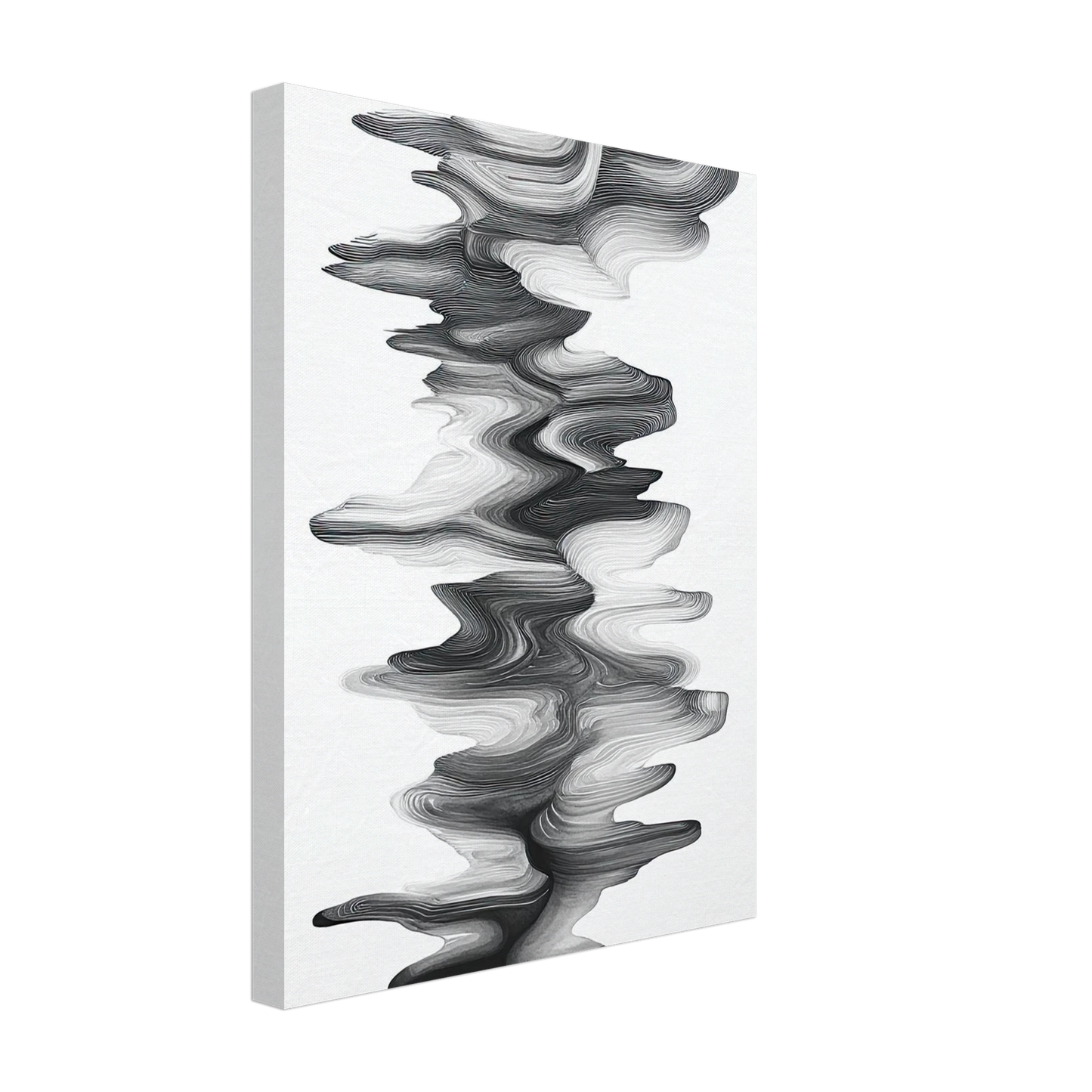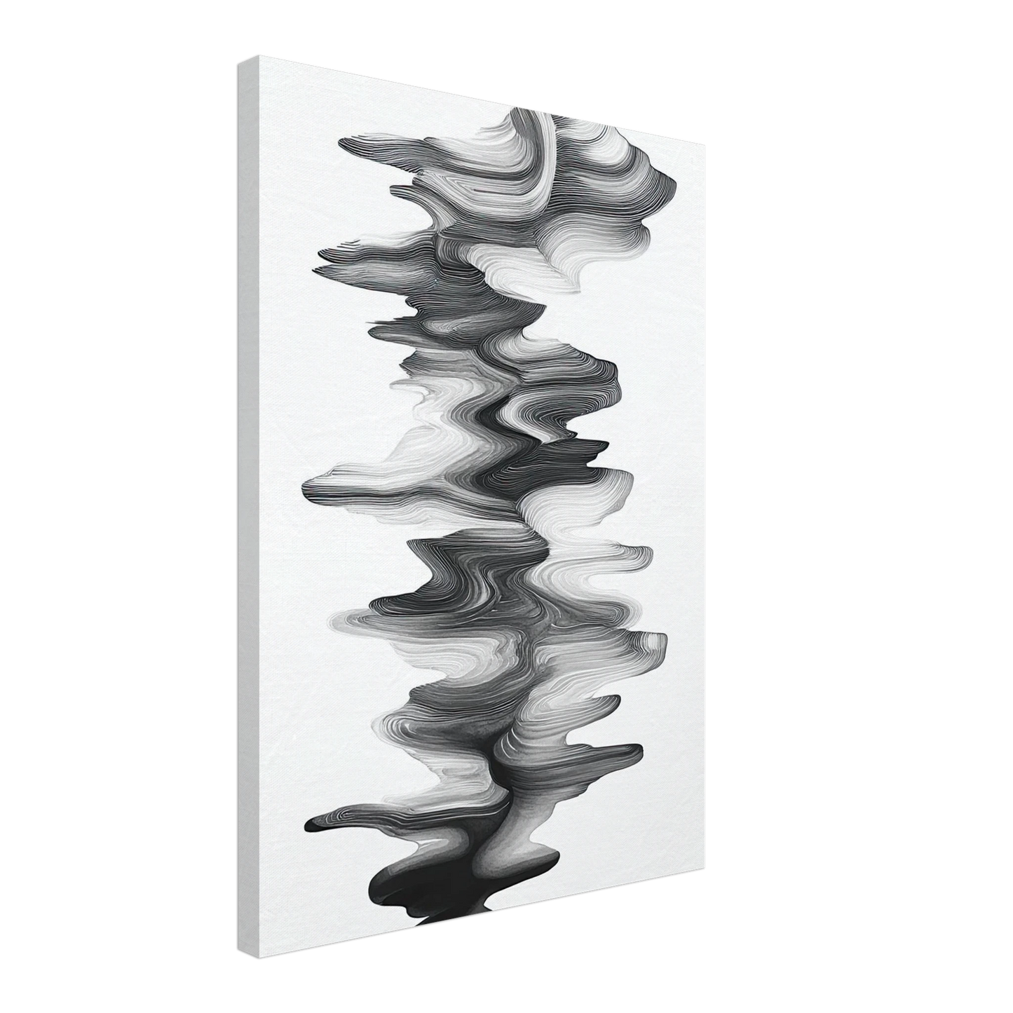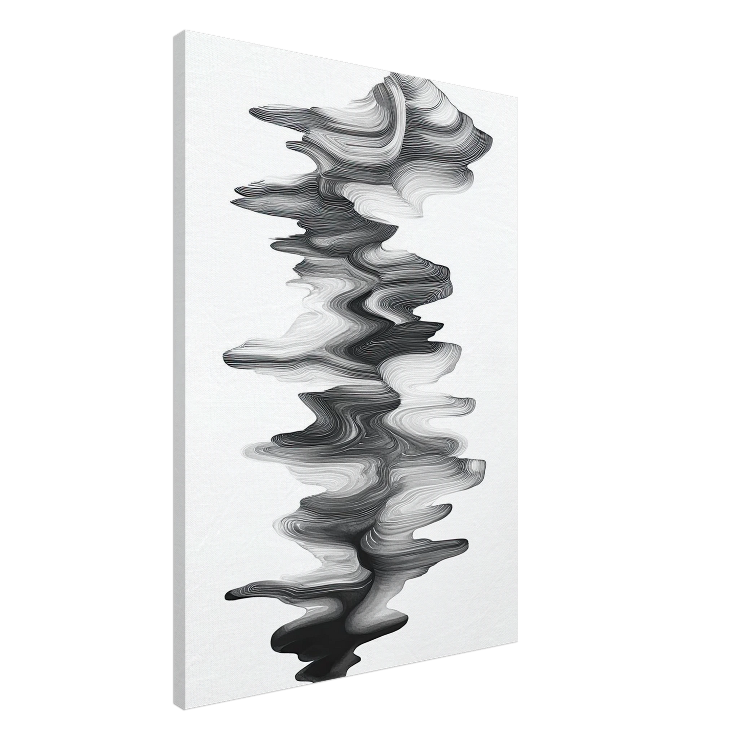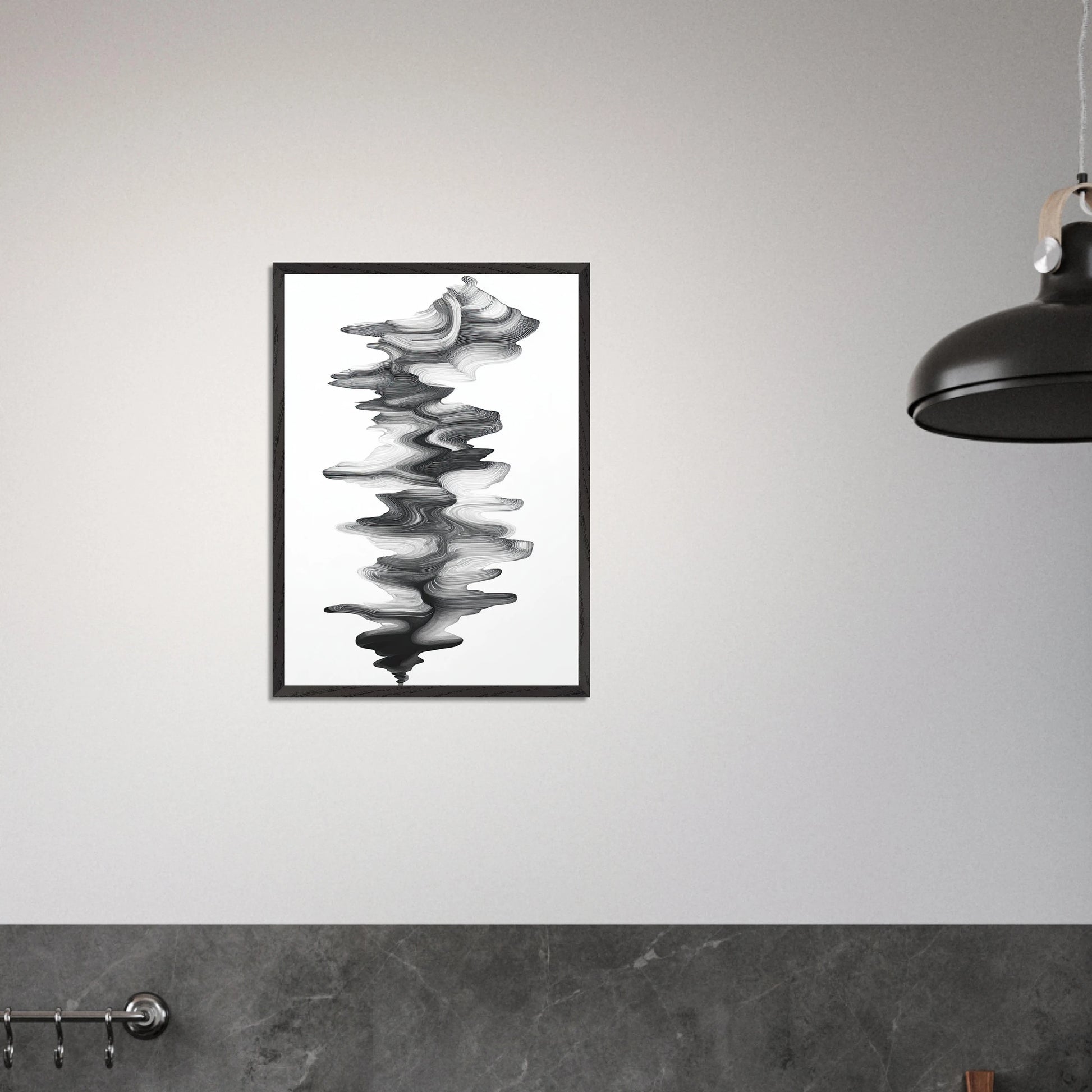 Et unikt minimalistisk kunstverk med organiske, bølgende linjer i svart og hvitt. Formen minner om både vann, fjell og lyd, og skaper et uttrykk som både er dynamisk og meditativt. Perfekt for å tilføre rommet et moderne og abstrakt preg.