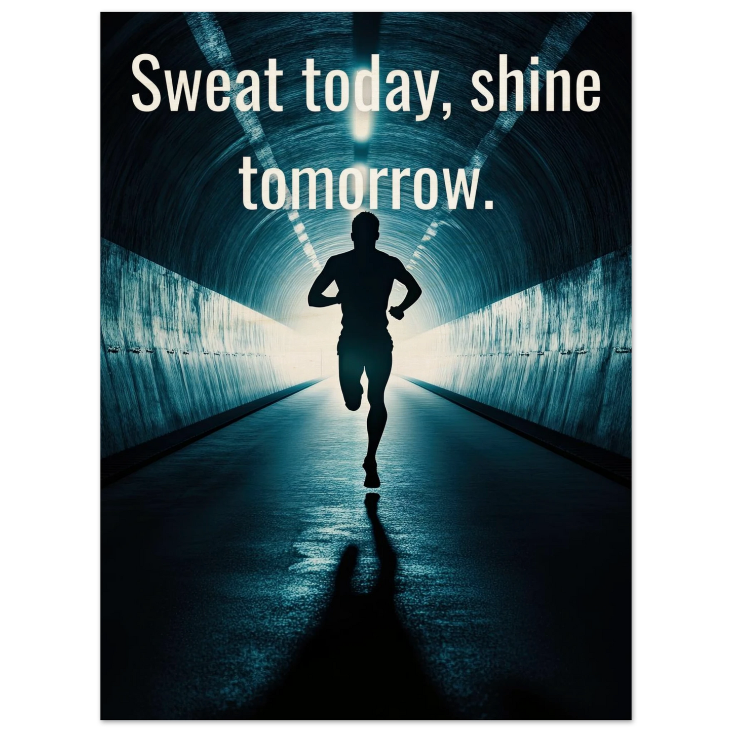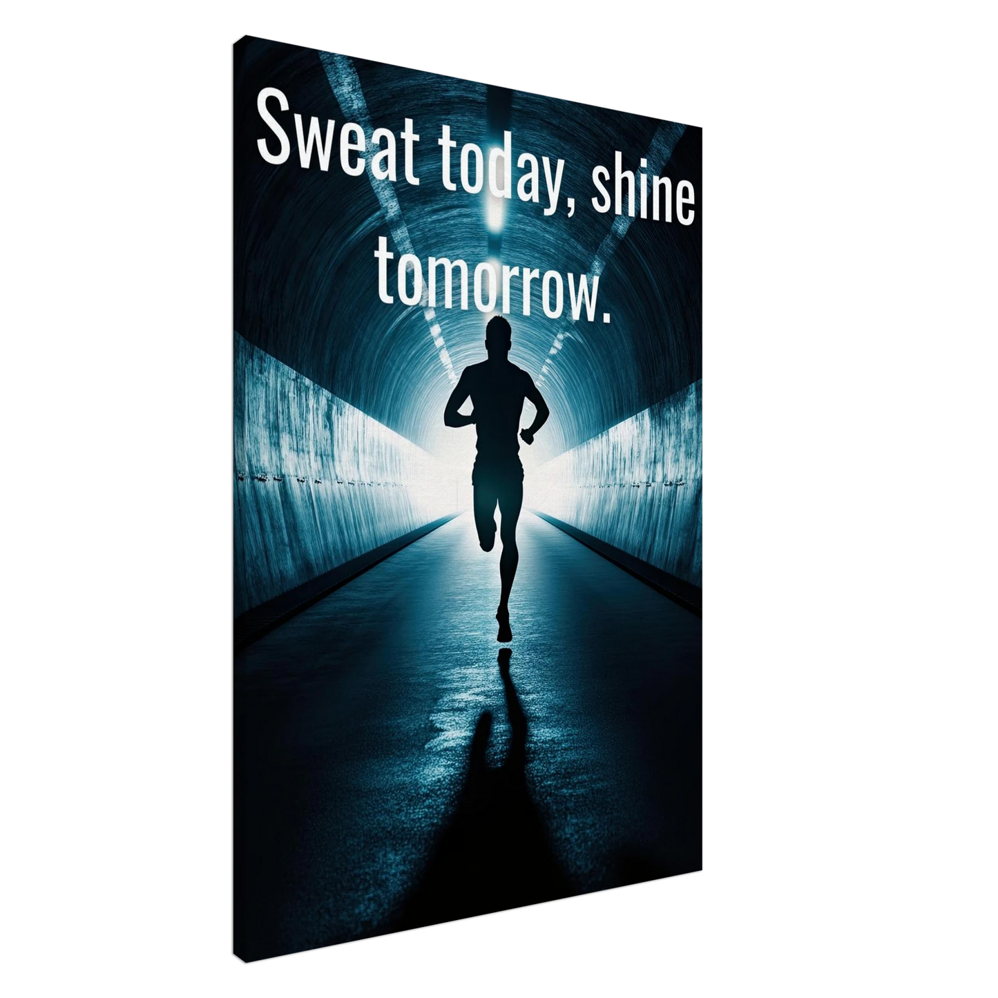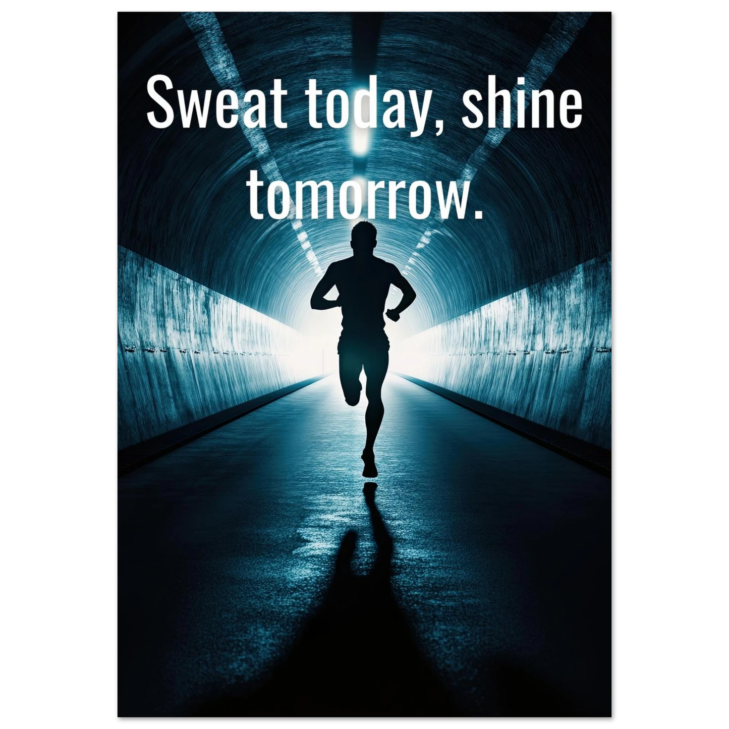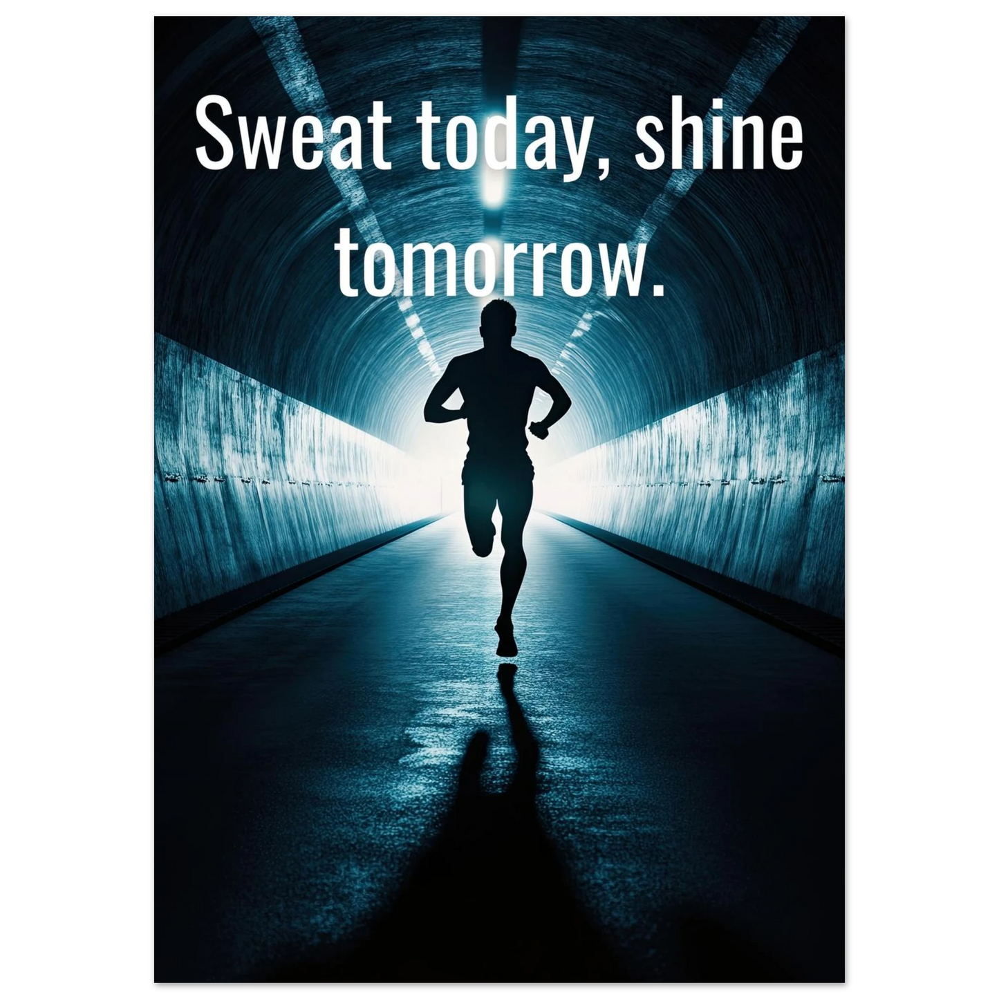 Et energisk og motiverende motiv som minner deg på at dagens innsats skaper morgendagens resultater. Silhuetten av løperen i en tunnel med lysende utgang symboliserer utholdenhet, håp og belønningen som venter etter hardt arbeid. Perfekt for å fylle rommet med inspirasjon og styrke til å aldri gi opp.