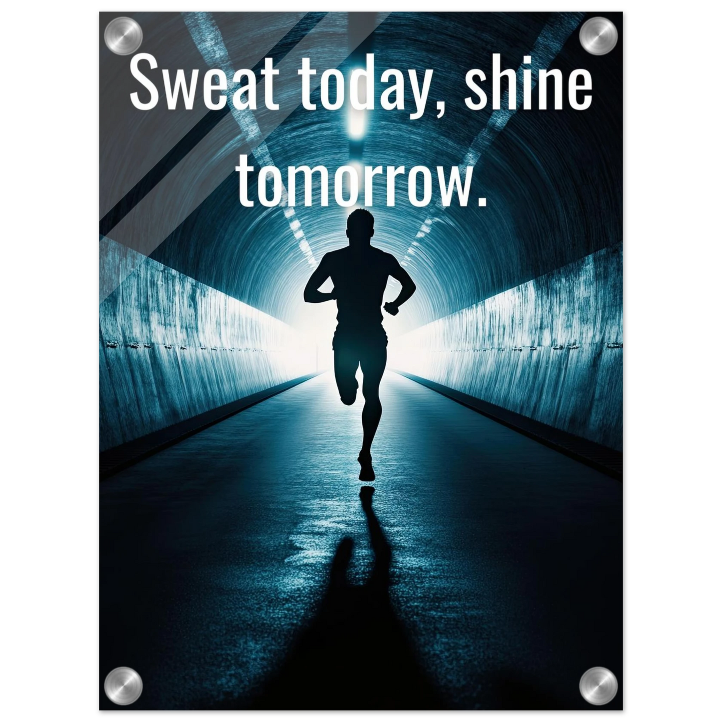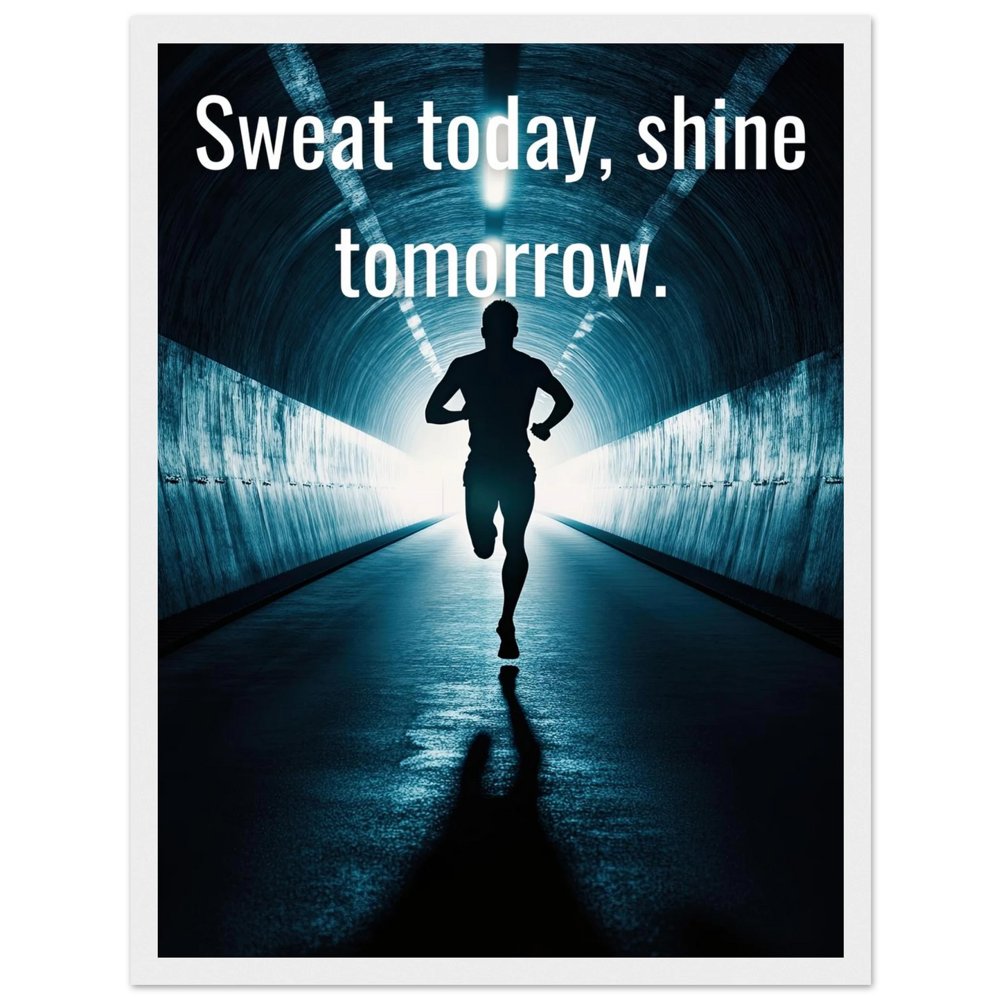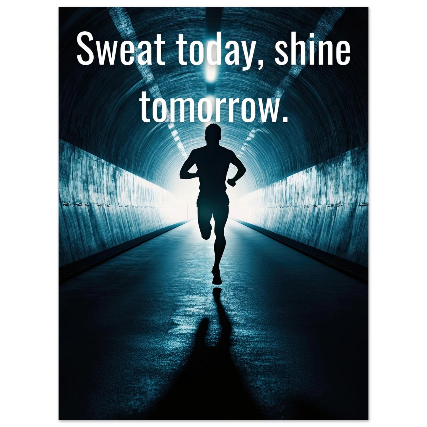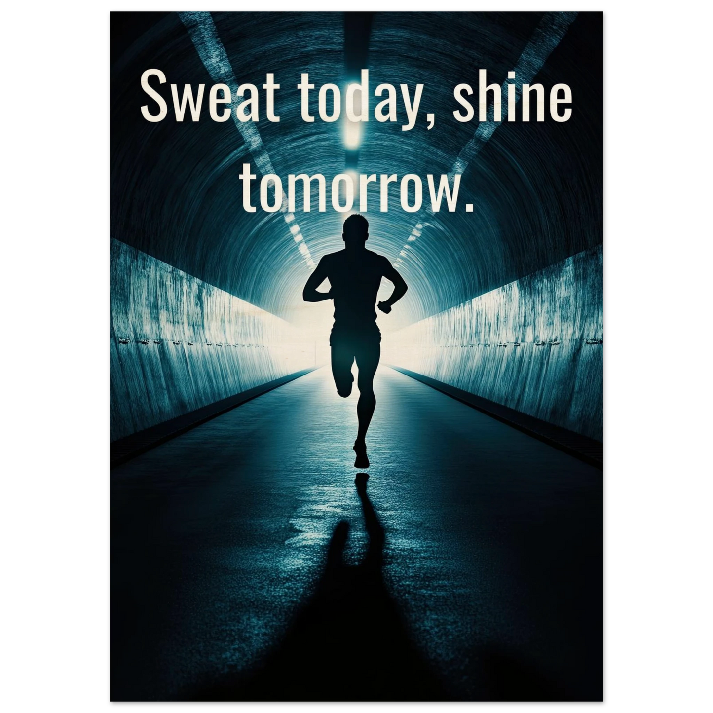 Et energisk og motiverende motiv som minner deg på at dagens innsats skaper morgendagens resultater. Silhuetten av løperen i en tunnel med lysende utgang symboliserer utholdenhet, håp og belønningen som venter etter hardt arbeid. Perfekt for å fylle rommet med inspirasjon og styrke til å aldri gi opp.