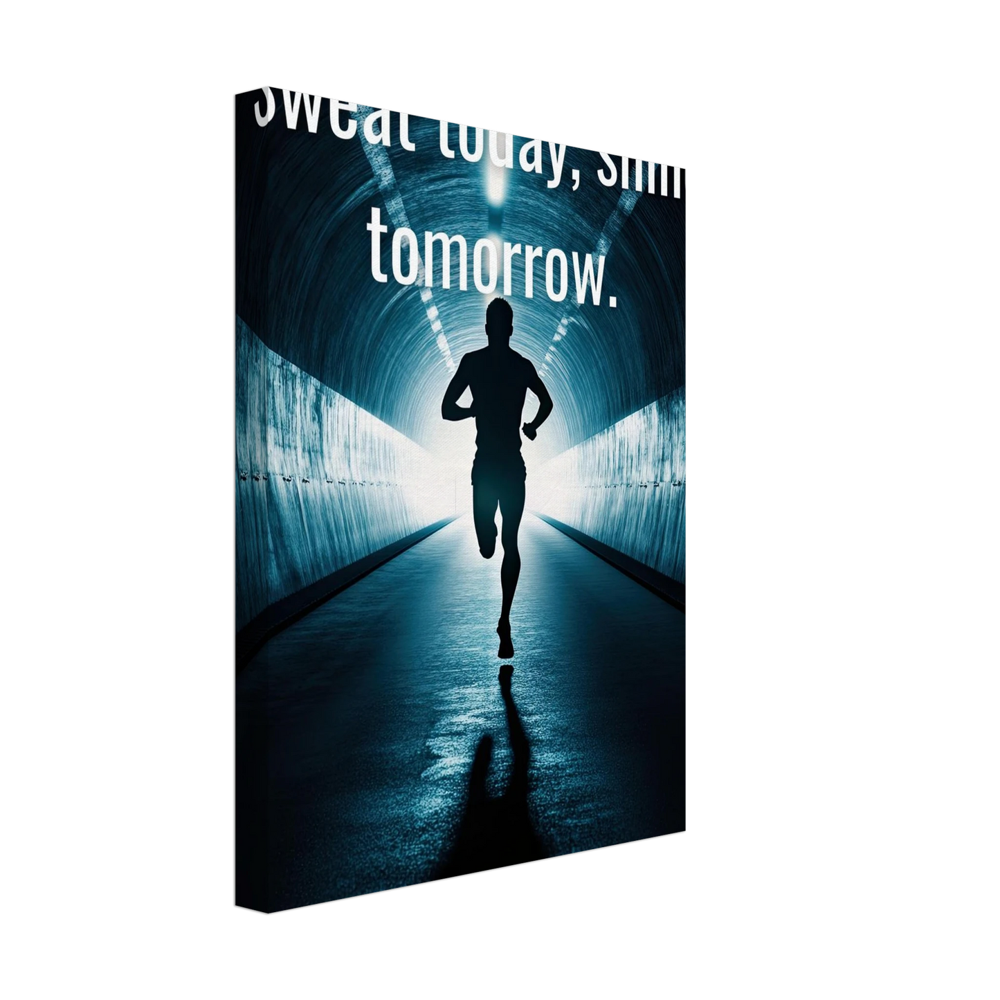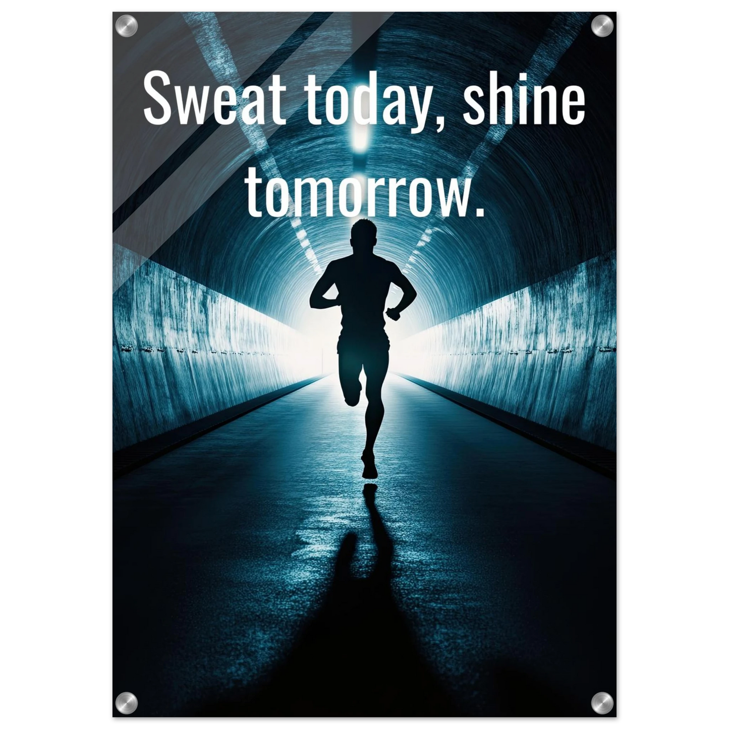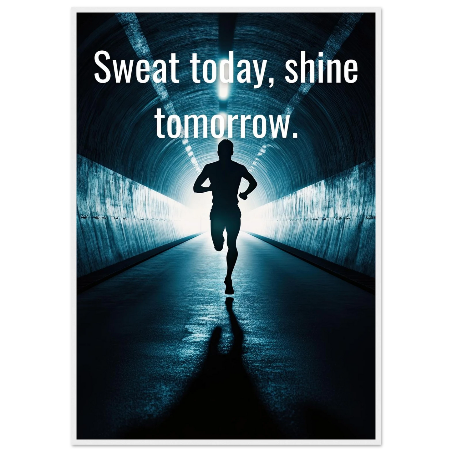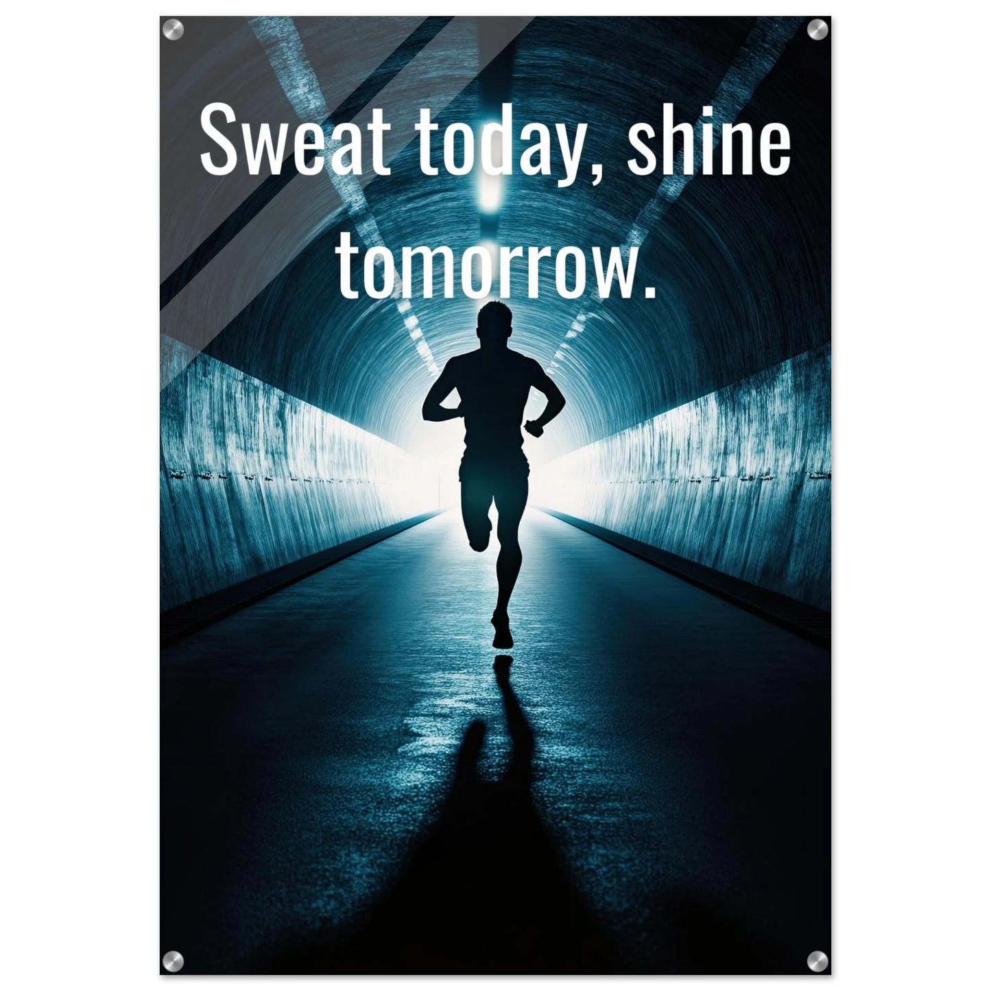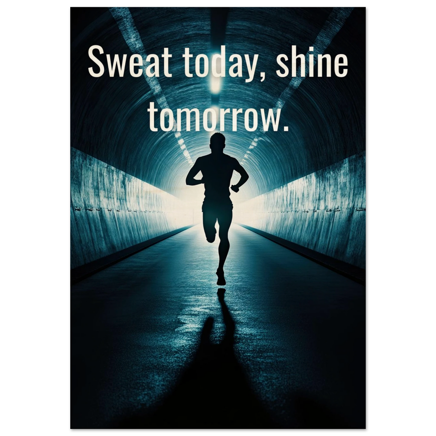Et energisk og motiverende motiv som minner deg på at dagens innsats skaper morgendagens resultater. Silhuetten av løperen i en tunnel med lysende utgang symboliserer utholdenhet, håp og belønningen som venter etter hardt arbeid. Perfekt for å fylle rommet med inspirasjon og styrke til å aldri gi opp.