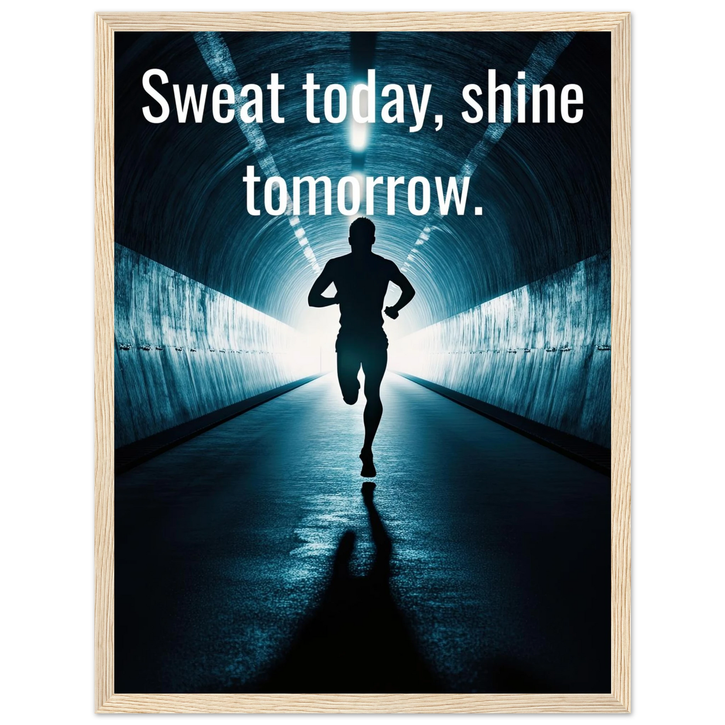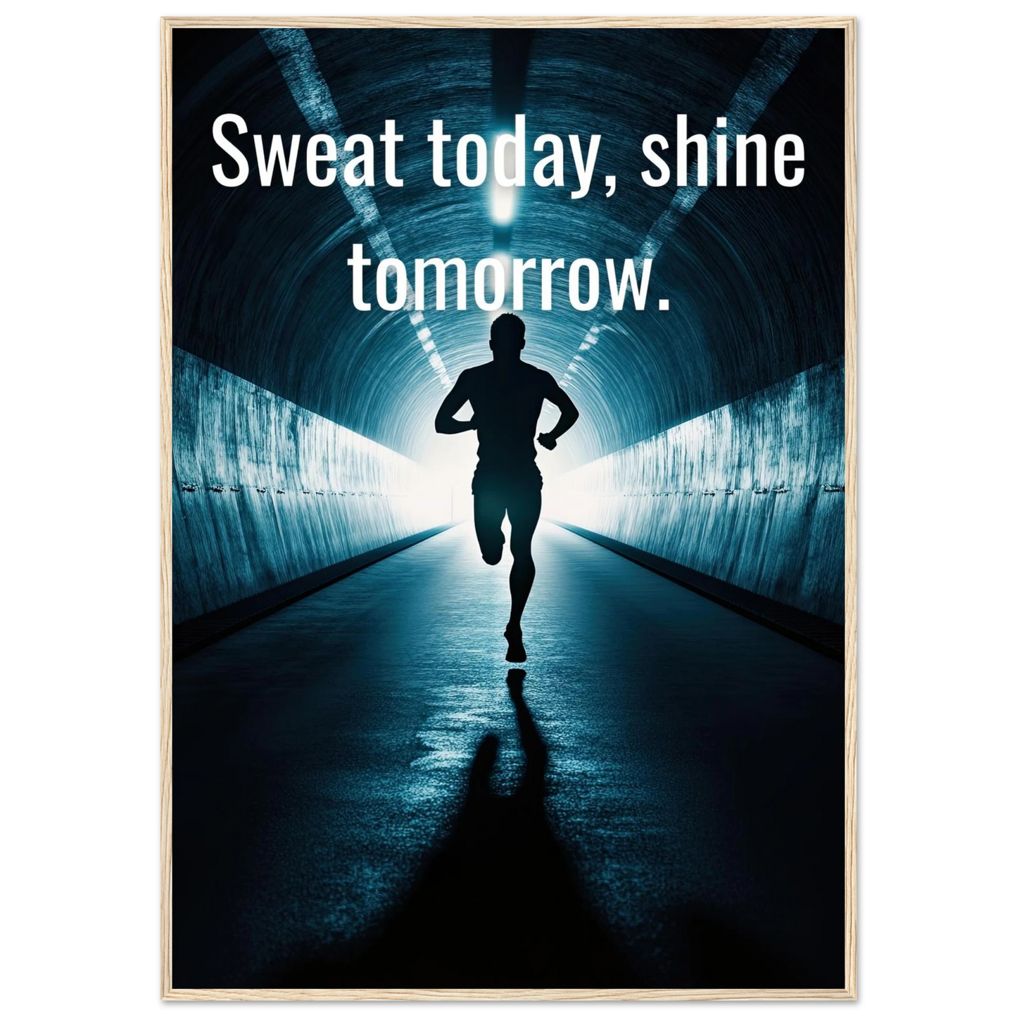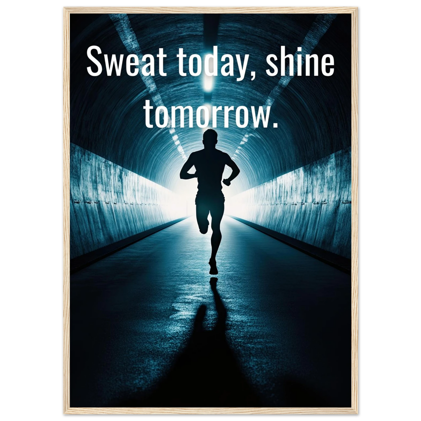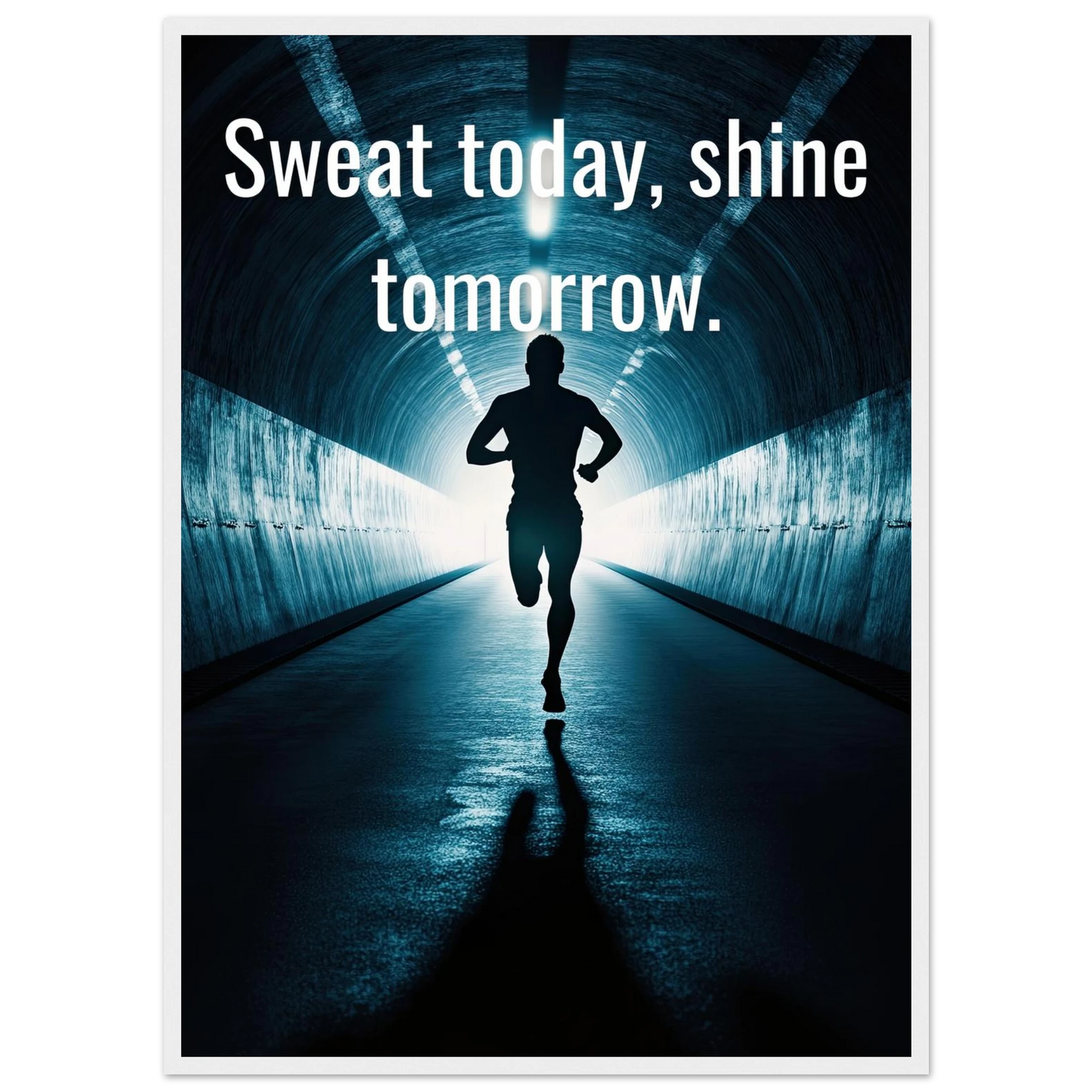 Et energisk og motiverende motiv som minner deg på at dagens innsats skaper morgendagens resultater. Silhuetten av løperen i en tunnel med lysende utgang symboliserer utholdenhet, håp og belønningen som venter etter hardt arbeid. Perfekt for å fylle rommet med inspirasjon og styrke til å aldri gi opp.