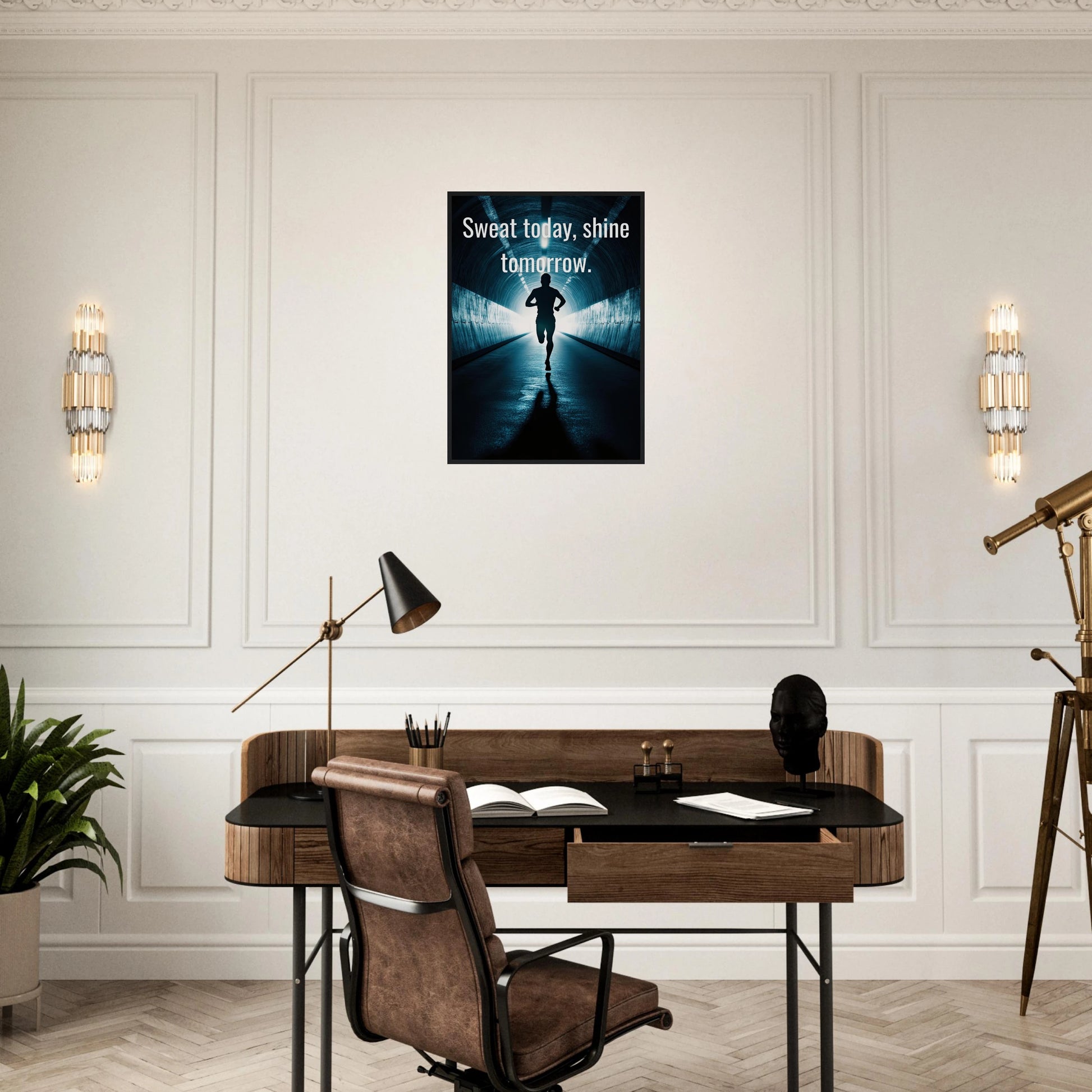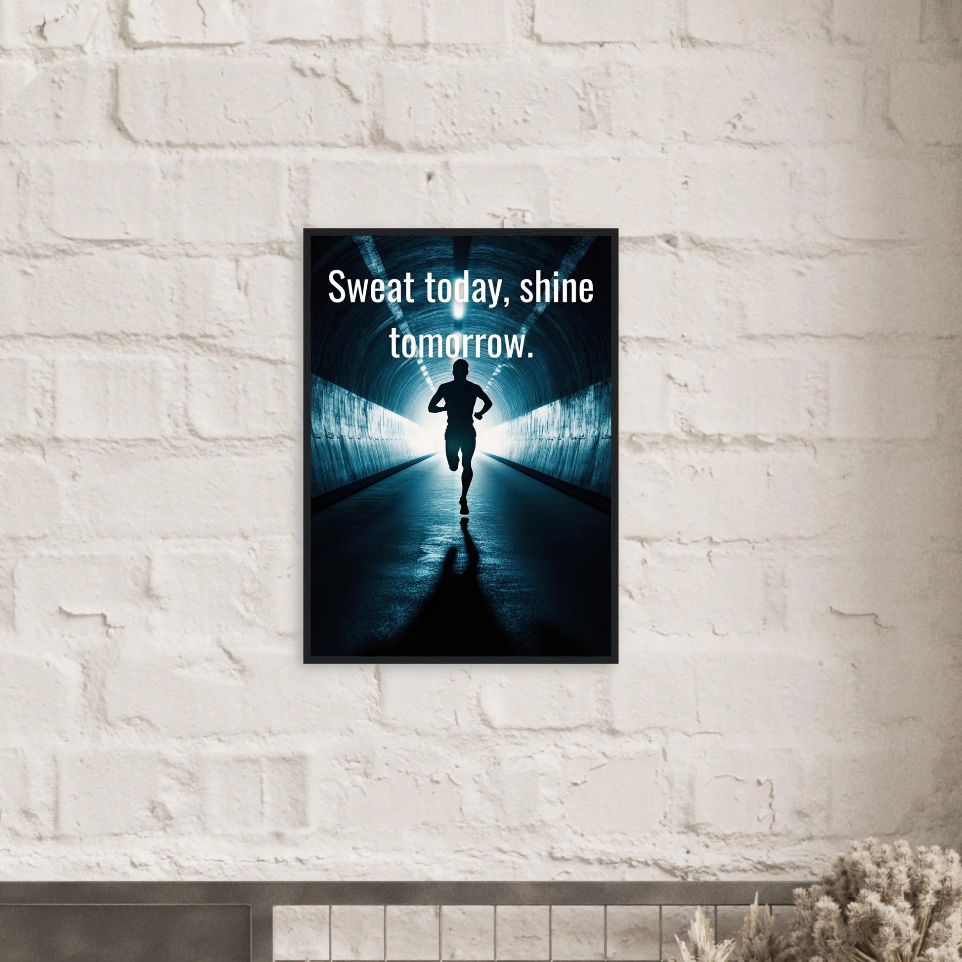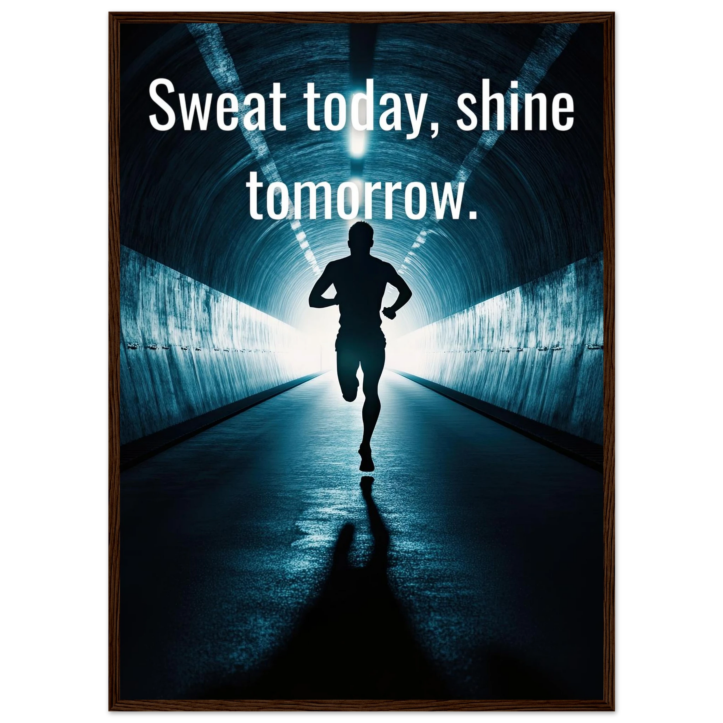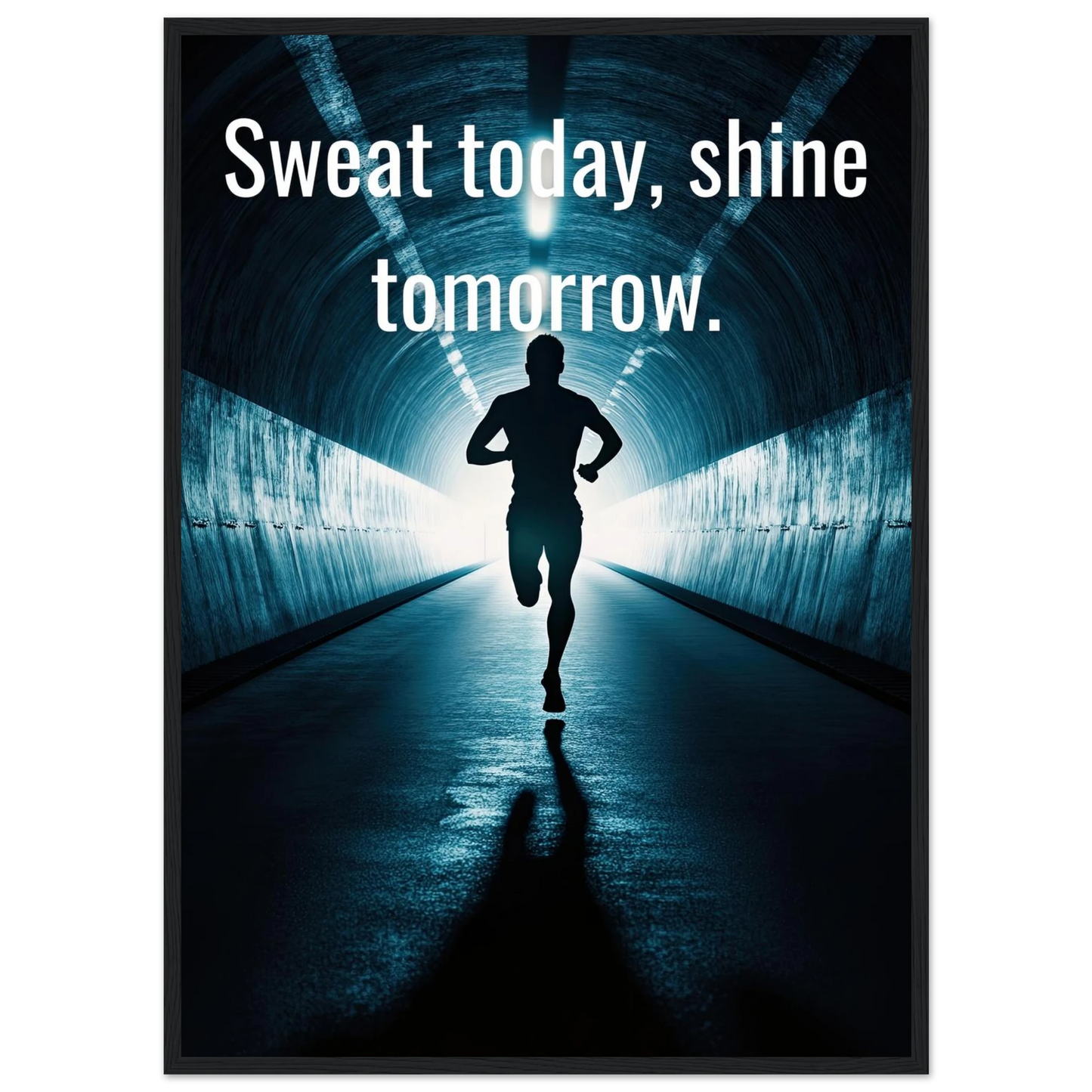 Et energisk og motiverende motiv som minner deg på at dagens innsats skaper morgendagens resultater. Silhuetten av løperen i en tunnel med lysende utgang symboliserer utholdenhet, håp og belønningen som venter etter hardt arbeid. Perfekt for å fylle rommet med inspirasjon og styrke til å aldri gi opp.