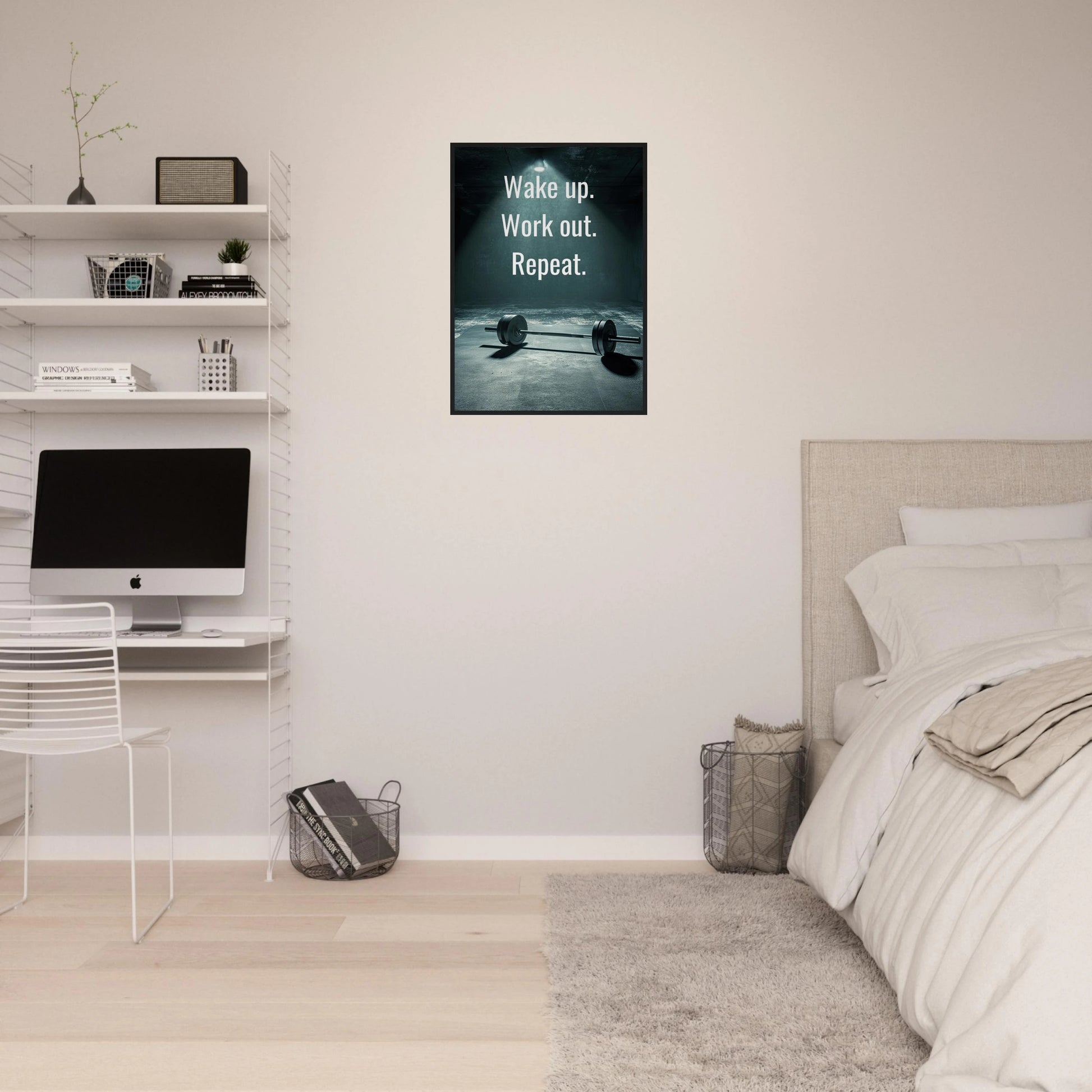 Et rått og inspirerende motiv som fanger essensen av disiplin og rutine. Den dramatiske belysningen over vektstangen setter fokus på styrke, utholdenhet og daglig dedikasjon. Perfekt for deg som ønsker en konstant påminnelse om å holde deg til rutinen, presse grenser og bygge både kropp og mental styrke.