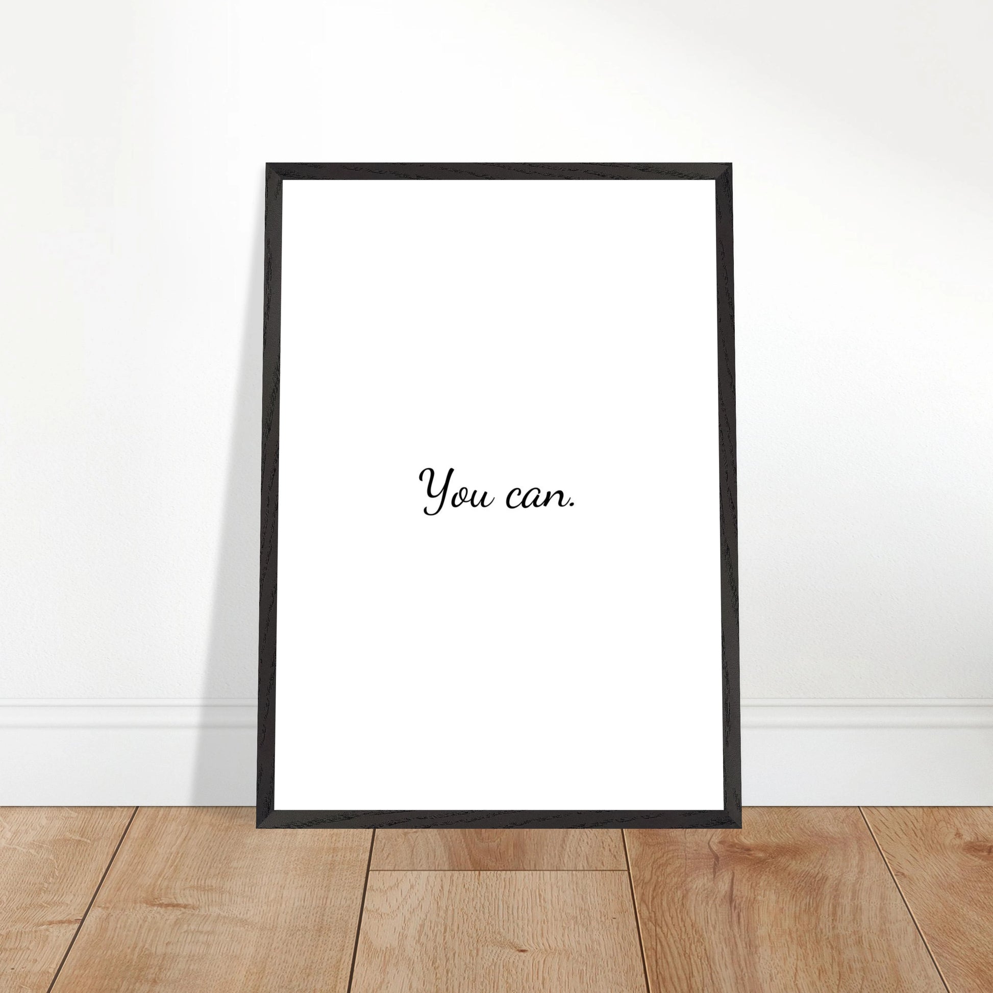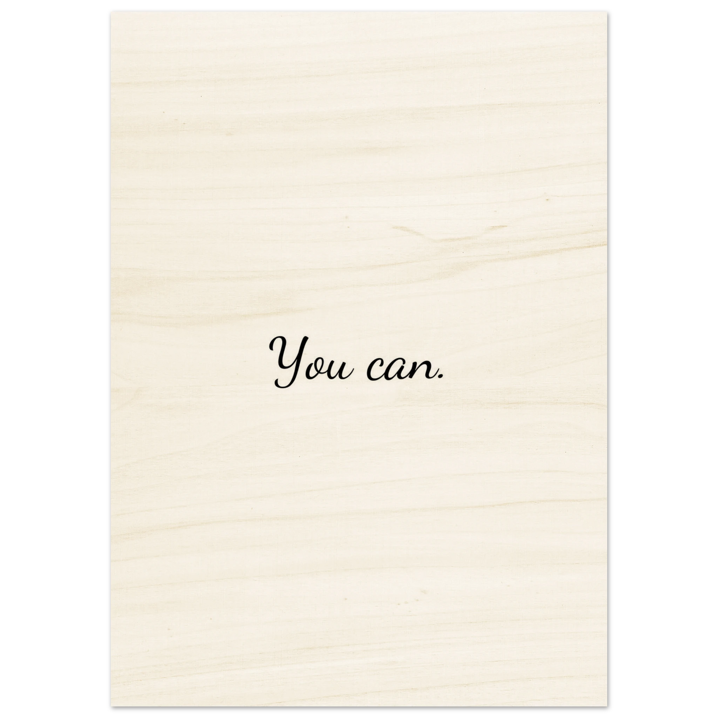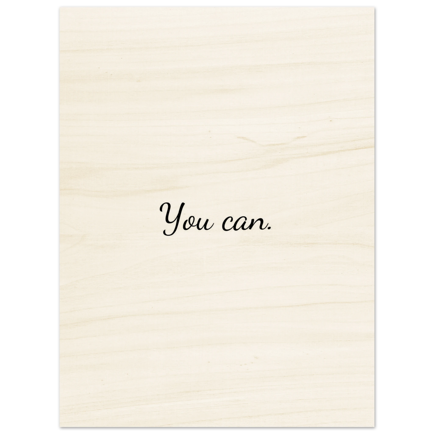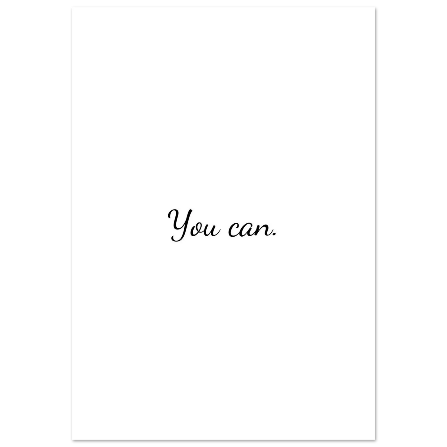 Et minimalistisk og elegant motiv med et budskap som setter seg i hjertet: Du kan. Den delikate håndskriften gir en følelse av ro, håp og styrke, og fungerer som en subtil, men kraftfull påminnelse i hverdagen. Perfekt for å skape en inspirerende atmosfære i både hjem og arbeidsmiljø.